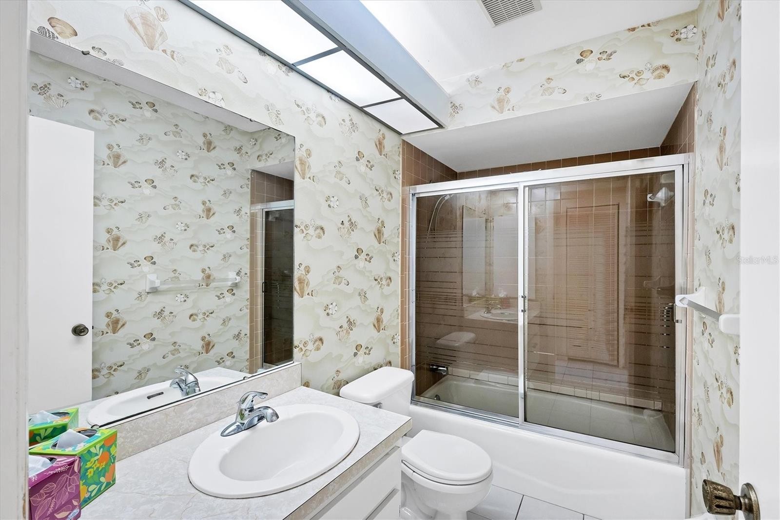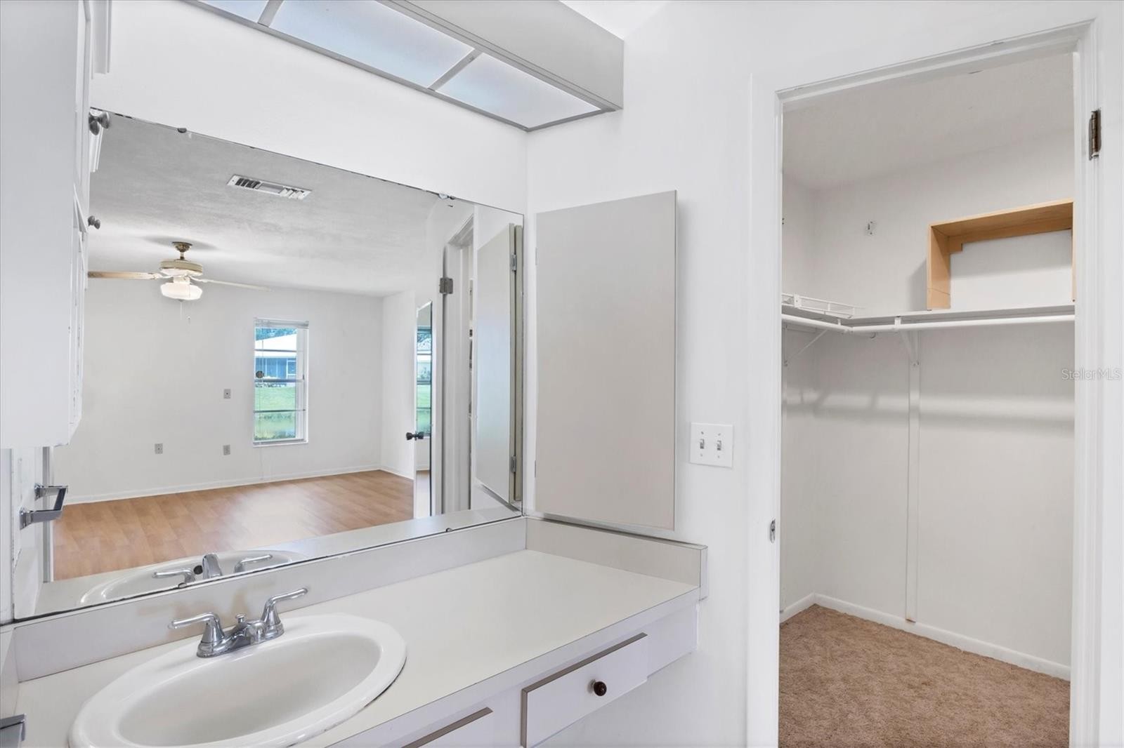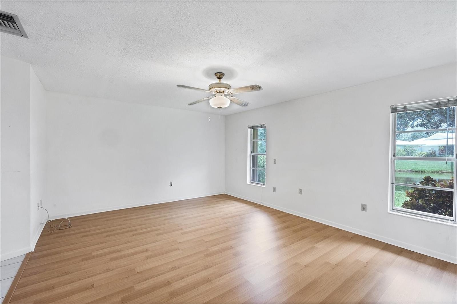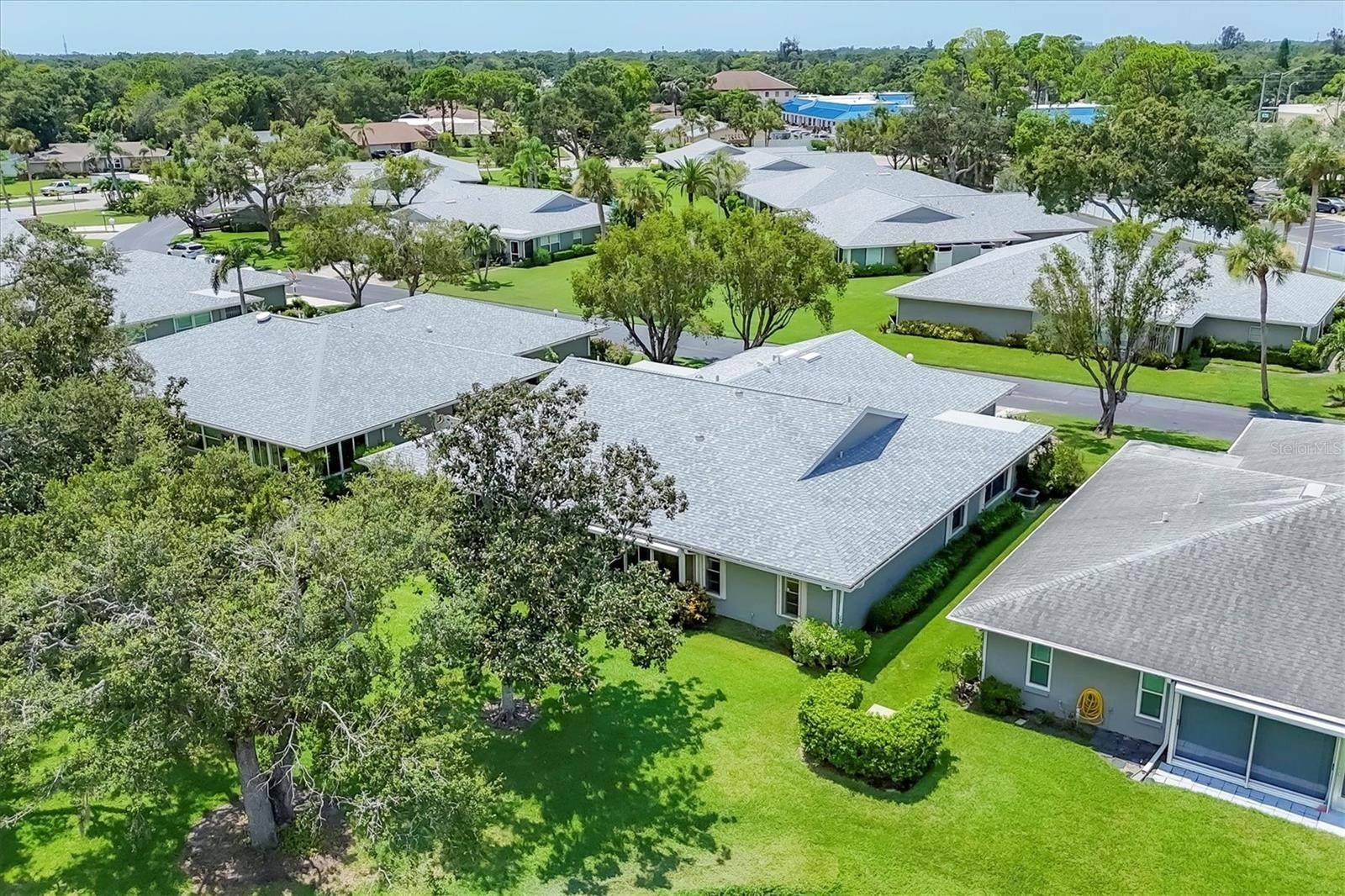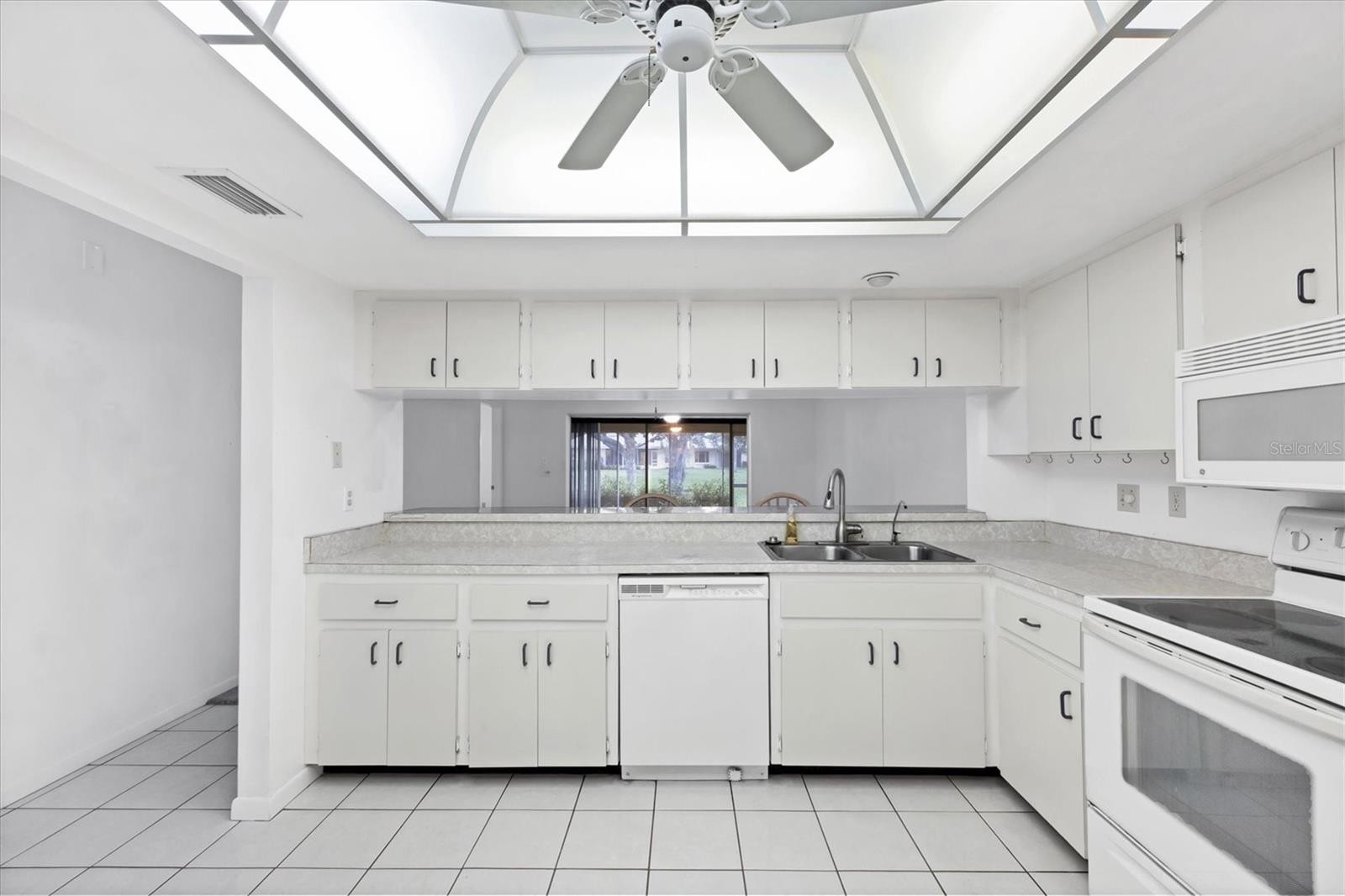 Tucked within Center Gate Village, this inviting home is ready for your updates—featuring a NEW ROOF (2023) and NEW A/C (2022), two separate living spaces, a bright Florida room, and peaceful pond views that make every day feel a little more relaxed. Step inside and you’re welcomed by a spacious living room at the front of the home, where natural light fills the space and flows easily into the dining area. A wide pass-through window from the kitchen to the dining room keeps the conversation going while meals are prepared. The kitchen provides ample cabinetry, generous counter space, and, on the opposite side, a breakfast bar with space for seating that opens to the great room. Just off the kitchen, the laundry room is equipped with extensive cabinetry for storage, a utility sink, and a countertop with additional storage underneath—keeping everything organized and within reach. The great room offers a comfortable second living space with plenty of room for seating and the option to add a casual dining area. Nearby, the second bedroom is conveniently positioned close to the full guest bathroom, making it ideal for visitors or a private home office. The primary bedroom is set at the back of the home and features sliding doors to the Florida room, a walk-in closet, and an en-suite bathroom with a vanity area, linen closet, and step-in shower. Accessible from both the great room and the primary bedroom, the Florida room is an inviting spot to relax year-round while overlooking the open grassy yard, mature trees, and glistening pond beyond. Center Gate Village residents enjoy access to a community pool and a location that truly delivers on convenience. Shopping, dining, medical facilities, and access to I-75 are right outside your door, while US-41 and the beautiful Gulf beaches are only a short drive west. Make this inviting home your own and start enjoying the best of Sarasota living!