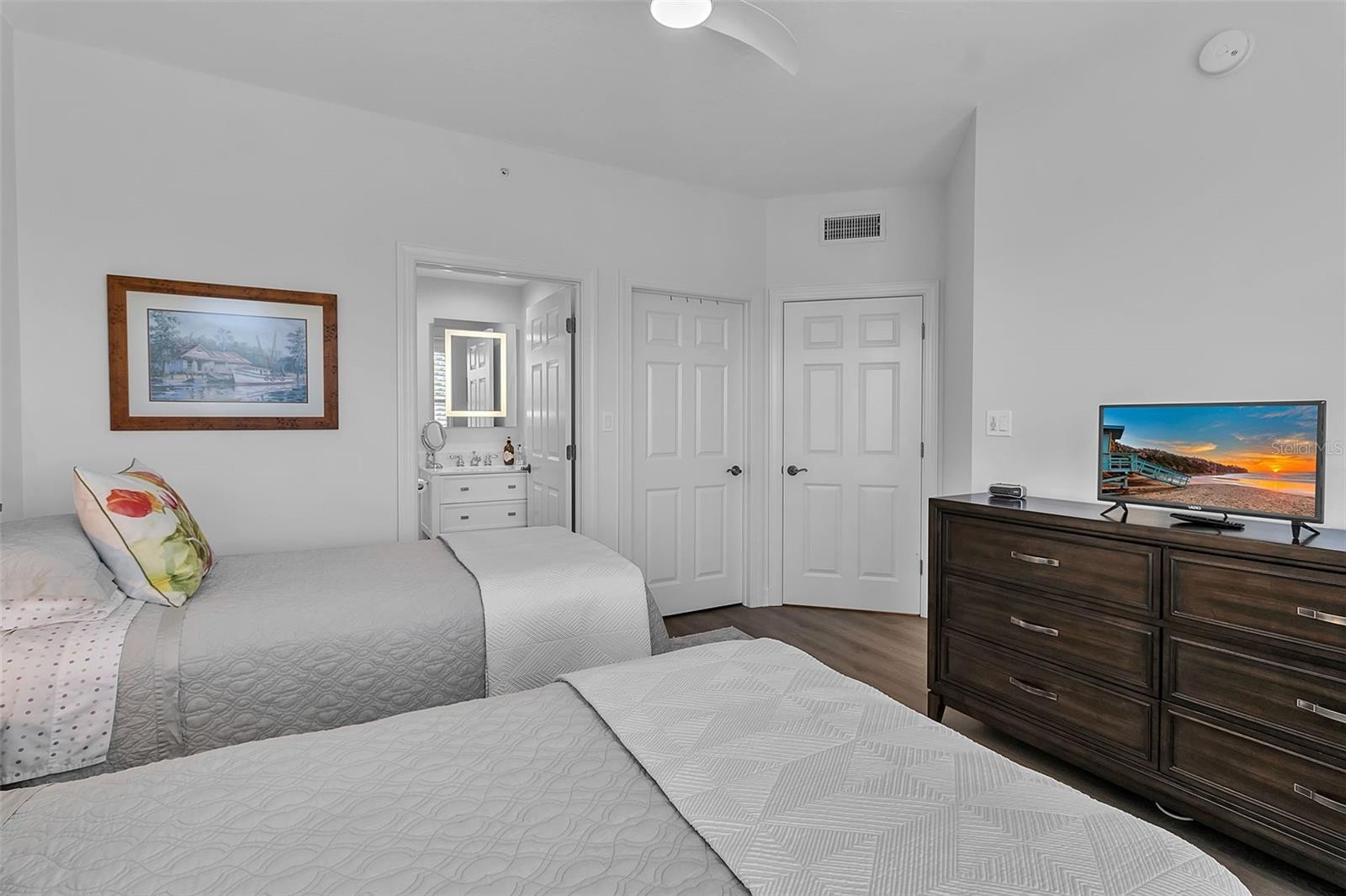 This beautifully updated 3 bedroom, 3 bath residence with a den offers exceptional space, style, and privacy in Meridian at The Oaks Preserve. The home features a redesigned kitchen with new appliances and granite countertops, a newer A/C system, and rich wood flooring throughout. As an end unit, it enjoys abundant natural light, and the expansive screened balcony—with electric hurricane shutters—creates a private outdoor retreat with real water views, a rarity from a unit at this level! A private elevator opens directly into the residence, providing an impressive and convenient entry experience. Additional highlights include two assigned garage parking spaces and close proximity to the Meridian residents-only pool, spa, and fitness room, making everyday living effortless. Set within The Oaks Preserve, this community delivers the best of care-free country club living. Mandatory membership in The Oaks Club unlocks an unmatched array of amenities, including two championship golf courses, 12 HAR-TRU tennis courts, pickleball courts, an award-winning tennis program, a state-of-the-art fitness center, three dining venues, and a vibrant year-round social calendar.