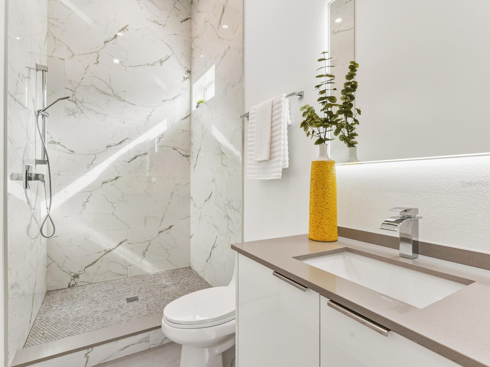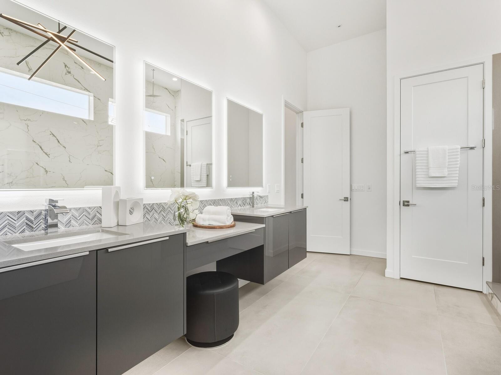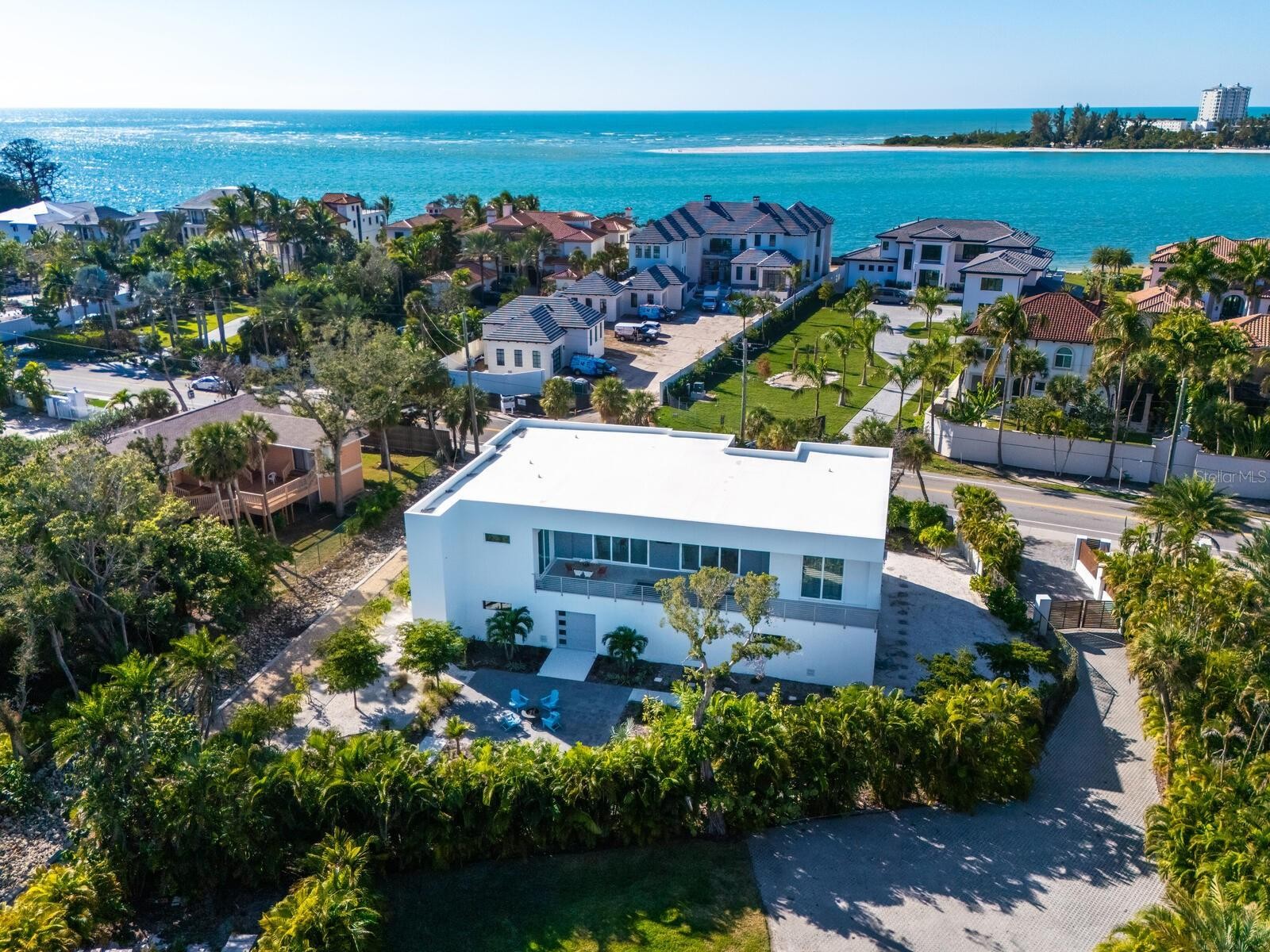 Set on the north end of Siesta Key, this striking modernist residence offers the rare balance of island serenity and seamless access to the mainland, placing vibrant downtown Sarasota, Southside Village, and the area’s cultural and dining destinations just minutes away—while the azure waters of the Gulf of Mexico and Siesta Key’s world-famous white quartz sand beach are equally close at hand. Designed with crisp architectural lines and a light-filled, contemporary aesthetic, this nearly 3,800-square-foot, four-bedroom, four-bath home redefines modern coastal living. An open floor plan, 12-foot ceilings, and expansive walls of impact-resistant glass windows and doors create a natural flow throughout the home, blurring the line between indoors and out while capturing the relaxed elegance of island life. A dramatic natural rosewood floating staircase serves as a sculptural centerpiece, leading to the main living level where modern design and functionality converge. The living area is anchored by a 100-inch electric floating wall and linear fireplace, creating a striking focal point for both everyday living and entertaining. Modern LED lighting, thoughtfully integrated throughout the interior and exterior, enhances the home’s clean lines and architectural presence. The open-concept kitchen is sleek and refined, featuring premium appliances, a natural gas cooktop, contemporary cabinetry, and generous prep and gathering space—ideal for entertaining or relaxed daily living. The primary suite is a tranquil retreat, highlighted by a spa-inspired bath with LED, anti-fog mirrors, a 74-inch soaking tub, and a walk-in closet, along with direct access to outdoor living. Three additional guest suites are thoughtfully designed to offer comfort, privacy, and flexibility, each with designer finishes and modern baths. One of the home’s most distinctive features is the private balcony with a spa-style hot tub —perfectly positioned for morning relaxation, evening unwinding, or enjoying coastal breezes after a day at the beach. The property also offers ample room to add a pool, allowing future customization of the outdoor living environment. Elevated and thoughtfully constructed in accordance with current building guidelines, the residence offers peace of mind without compromising style. Beneath the home, an exceptionally expansive garage and storage level can accommodate 12 or more vehicles, a rare and highly sought-after amenity on Siesta Key. This level also includes a separate flex room with an overhead door that opens directly to the backyard, making it ideal for a private home gym, wellness studio, hobby space, or additional entertaining area. Just a short stroll away, a charming neighborhood beach at Big Pass provides a front-row seat to boats gliding through the pass and colorful sunsets each evening, a favorite local spot that perfectly captures the laid-back beauty and maritime energy of the north end of Siesta Key. This is a compelling opportunity for buyers seeking a move-in-ready modernist home on Siesta Key’s coveted north end—where convenience, coastal beauty, architectural sophistication, and thoughtful design come together, and where the beach, boating, dining, and Sarasota’s vibrant cultural and entertainment scene are all within easy reach. A refined blend of modern design, prime location, privacy, and future potential, this residence delivers an exceptional Siesta Key lifestyle.