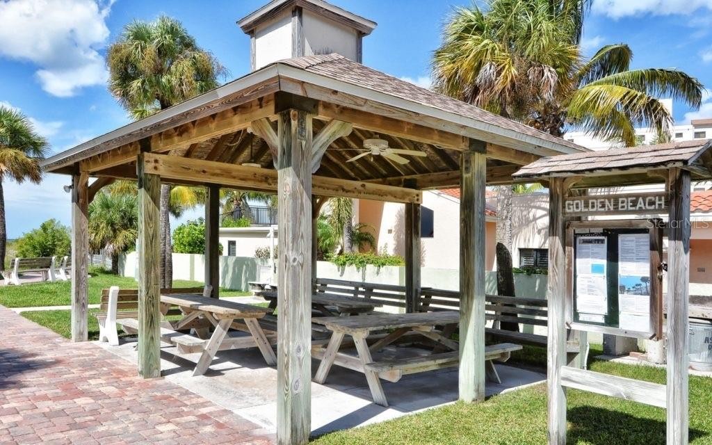 Welcome to your Beach House! This beautifully renovated home offers serene views of the Gulf of Mexico and is just a short walk to Golden Beach easement. This Key-West inspired elevated home has a complete wrap around walkway! The remodeled kitchen, includes an amazing brick floor, stainless appliances, custom cabinets with soft close, a coffee bar and a pantry. The quaint dinette area is just off the kitchen and is part of the Great Room. Check out the vaulted ceilings, a decorative floor to ceiling fireplace, ample space for lounging and double French doors which open to the large covered deck built to hurricane codes, allowing the gulf breeze flow thru! Each bedroom has its own renovated bath for privacy. Laminate wood flooring runs throughout the living and bedrooms. The huge covered deck off the back of the house is additional exterior living space as you will spend many hours relaxing amongst nature. Ascend to the upper deck and take in the Gulf view! Both spaces are amazing for entertaining as well as kicking back! The ground floor houses a one car garage with another two bays for a workshop, work out room or storage. No water damage from hurricanes! The front and back French doors are hurricane rated and there is protection for the remaining windows. Very quiet, innovative 3 mini split system for the a/c and heat pump which cools and heats evenly and is very energy efficient. Just set the temp and forget it. Should you join the Golden Beach HOA for $50/yr, additional benefits are: parking for cars and carts, bicycle racks, guest privileges, beach access benches, and Gazebo with picnic tables and beach shower. Enjoy the Island lifestyle with its quaint shops, outside cafes, live theater, and much more.