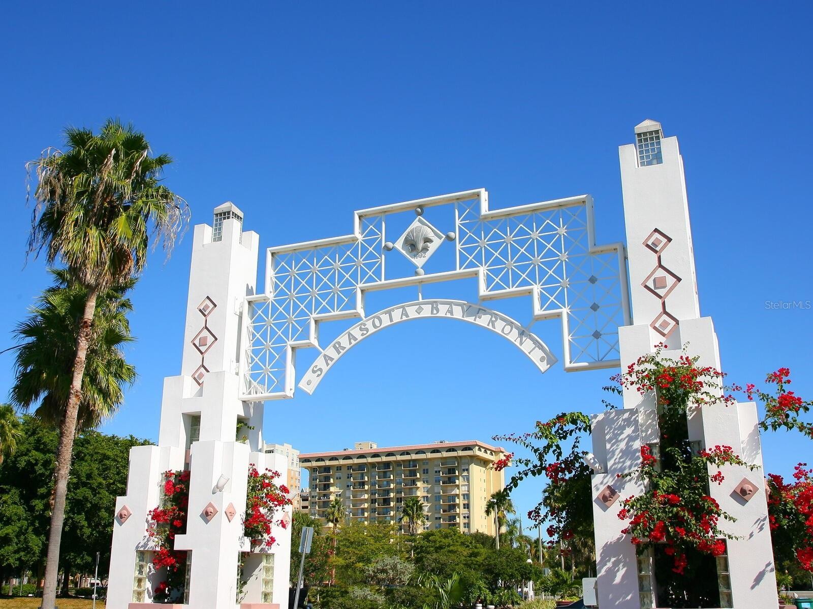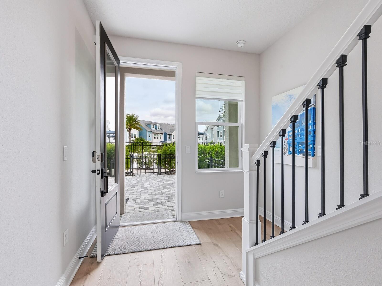 This modern coastal townhome delivers refined design, luxury finishes, and an exceptional Sarasota lifestyle in one of the city's most vibrant downtown locations. Situated near Downtown Sarasota, Payne Park, and the Legacy Trail bike path, the residence also enjoys a prime position directly across from the community pool and leisure lawn, complete with cornhole and gathering space. The main living level is thoughtfully designed for both everyday living and entertaining. The chef's kitchen is a standout, featuring floor-to-ceiling white wood cabinetry with crown molding and brass hardware finished with a white quartz countertop. Modern glass and brass pendant lighting complements the kitchens centerpiece island, which provides additional seating and storage. A custom tile feature wall frames the apron sink, positioned beneath two large windows that flood the space with natural light. The adjacent dining area is elevated by a striking wall of mirrors with wood trim, while the family room showcases a wall of windows overlooking the pool and lawn area. A private balcony extends the living space and provides the perfect space to relax. On the lower level, Bedroom 2 is currently configured as a home office and offers exceptional flexibility with a full bathroom, closet, built-in shelving with Murphy bed. This level also provides access to a spacious stone patio with iron fencing and a gated entrance, ideal for outdoor enjoyment. Completing this floor is a 2-car garage equipped with an EV charging station. On the third floor you will find a generous sized primary bedroom with a well-appointed ensuite bathroom that includes a dual sink vanity with custom framed mirror, large walk-in shower with glass enclosure and an oversized walk-in closet with built-in shelving. Bedroom 3 also includes its own ensuite bathroom, offering comfort and privacy for guests or family members. A conveniently located laundry closet completes this level. With its sophisticated coastal aesthetic, thoughtful layout, and unbeatable downtown Sarasota location, this townhome offers a rare opportunity to enjoy luxury living with access to the very best of the city's cultural, recreational, and outdoor amenities.