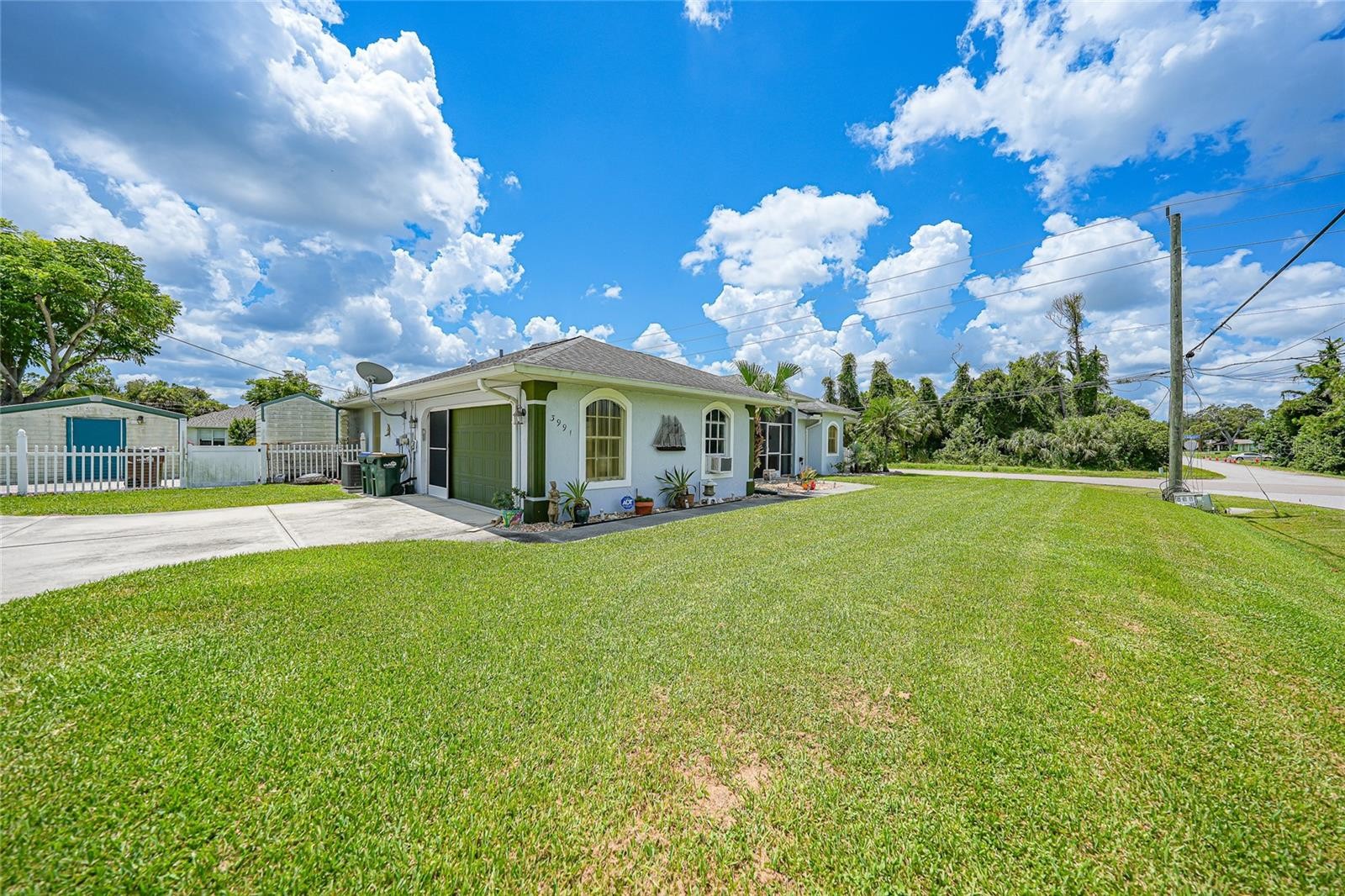 Welcome to your dream home! This stunning 3-bedroom, 2-bathroom pool home offers 1,842 square feet of thoughtfully designed living space, perfectly situated on an oversized lot with no flood zone—a rare find in today’s market. From the moment you step inside, you’ll be captivated by the open floor plan, flooded with natural light, and featuring beautiful, low-maintenance flooring throughout—no carpet in sight! The heart of the home is the spacious living area, seamlessly flowing into a modern kitchen that’s perfect for entertaining or everyday living. Step outside to your private outdoor retreat, where a heated pool and relaxing hot tub await under a screened lanai. For added peace of mind, this space is secured with a complete lanai hurricane shutter system. Back inside, three generous bedrooms, including a serene primary suite, and two full bathrooms combine comfort and functionality effortlessly. The oversized lot provides ample space for outdoor activities, gardening, or future expansions—and tucked away you’ll find a unique bonus: an air-conditioned “she shed”, perfect for hobbies, a private office, or simply your own personal getaway. Practical features like hurricane shutters throughout add value and security, giving you confidence in every season. Every detail of this home has been thoughtfully designed to create a sense of luxury, ease, and modern living. Don’t miss this rare opportunity to own a pool home that truly has it all: space, style, privacy, and a location that offers peace of mind with no flood concerns. Your perfect Florida lifestyle starts here!