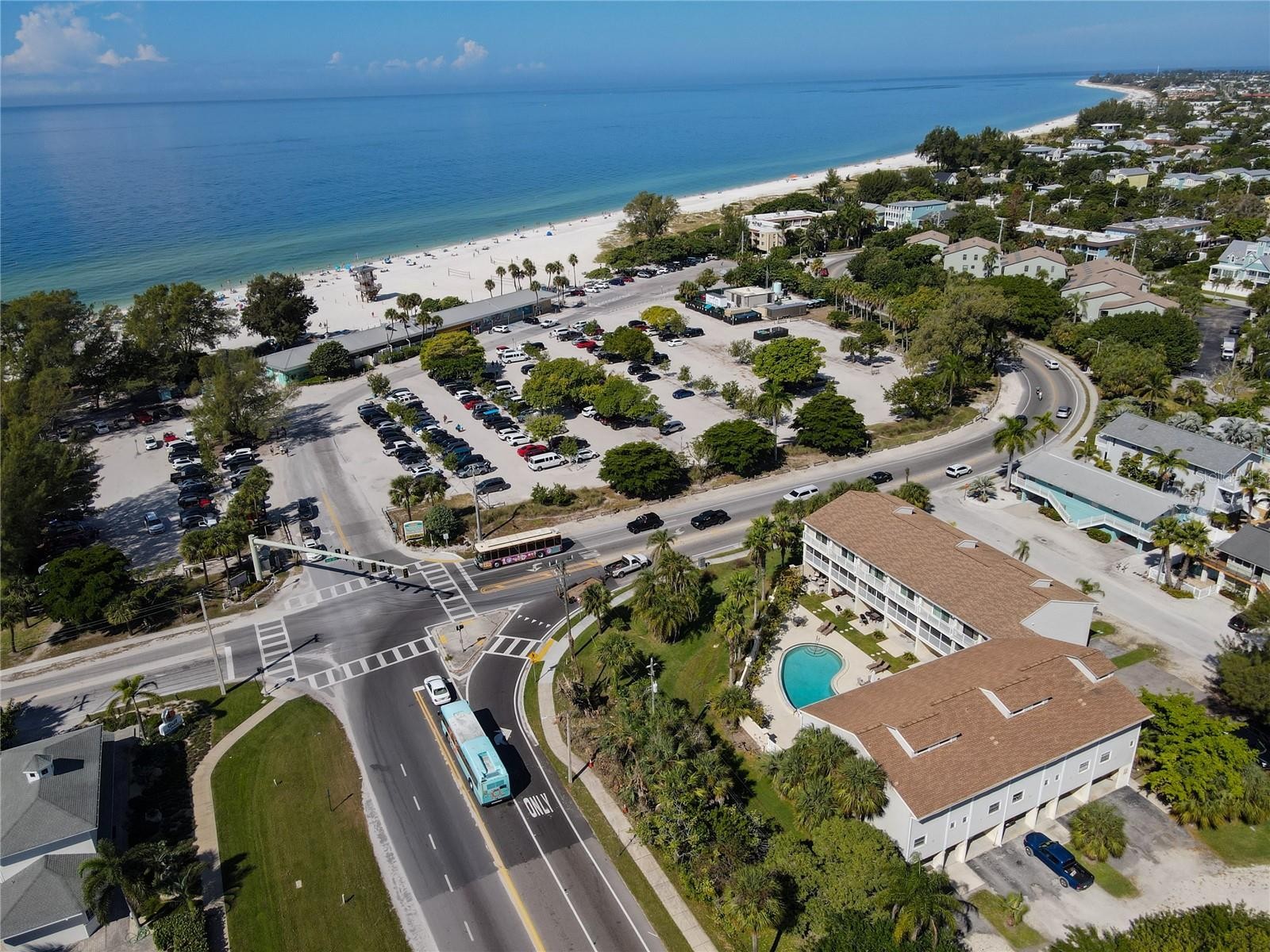 Directly across the street from the beach with Gulf water & beach views. This updated, turn-key furnished unit is centrally located on the island with easy access to the beach, several restaurants and shopping. "Beach Townhouses" is a smaller complex with just 11 units in total offering a large, heated pool, spacious private carports & storage located on the ground level. Each unit offers TWO balconies facing the beach. The one off of the main floor living space is larger & screened. The additional, primary bedroom balcony is covered & open air. Both are a great place to catch the sunset or to enjoy your morning coffee! The master suite offers an updated master bath, dressing area and a walk-in closet. This comfortably furnished unit is being sold turn-key furnished for convenience of a future vacation rental. There are three storage closets in the carport. A smaller, private patio is located pool-side for grilling & al fresco enjoyment. Easy access to the Manatee Bridge to avoid traffic to the mainland during our busier seasons. Want to be right in the heart of A.M.I., schedule a showing today!