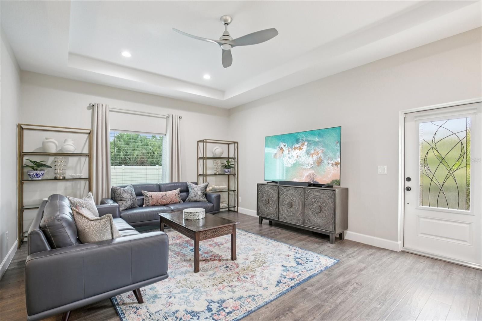 Under contract-accepting backup offers. This beautiful and spacious 3-bedroom, 3-bath home is loaded with high-end upgrades, including impact windows throughout, city water, a new upgraded HVAC System, rain gutters all around the house, a paved walkway, and a paved extra-wide driveway. More upgrades include Nitro garage floor tiles, a beautifully landscaped front and back yard with a fully fenced yard and sprinkler system. Enter inside and discover soaring ceilings and pocket-style impact sliders open the home to the spacious lanai with beautiful Italian porcelain tile, creating bright, airy living spaces and seamless indoor-outdoor flow. The chef’s kitchen is a standout, featuring solid wood soft-close cabinetry, granite countertops, smart appliances, a pantry, pot filler, and abundant cabinet and counter space—perfect for everyday living and entertaining. The expansive primary suite offers tray ceilings, recessed lighting, lanai access, a super-long dual sink vanity, a relaxing garden tub, and a large walk-in shower with floor-to-ceiling tile. A generous third bedroom with an adjacent full bath featuring double sinks and a walk-in tiled shower, along with a large flex room, creates an ideal guest or in-law suite setup. Additional features include central vacuum, dual-flush toilets, termite bait system, designer paint colors, and quality finishes throughout. Beautiful curb appeal with an 8-foot front entry door, leaded glass detail, and stately front porch pillars. Conveniently located just minutes from North Port and Port Charlotte, with easy access to shopping, dining, grocery stores, and I-75