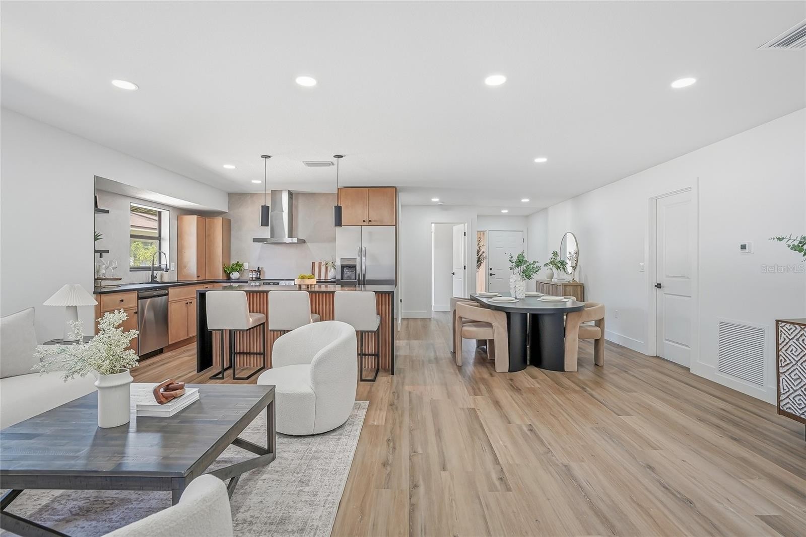 Welcome to this stunning 3-bedroom, 2-bathroom home in Sarasota that will check ALL your boxes! Beautiful custom finishes, a great layout, a great location, and NO flood zone. From the moment you arrive, you’ll love the inviting exterior and welcoming feel of this beautifully updated home. Step inside to an open floor plan where the kitchen, dining area, and living space all flow seamlessly together — creating a bright and functional layout perfect for both everyday living and entertaining. The sleek kitchen has been thoughtfully updated with brand-new countertops, new cabinetry, and new stainless steel appliances, offering a modern touch and plenty of space to cook and gather. The primary suite features a trendy en-suite bathroom, creating a private retreat within the home. The two guest bedrooms are well-sized, along with a stylish, updated guest bathroom. For added convenience, the laundry room is centrally located inside the home, making it easily accessible to everyone. Step outside to a fully fenced backyard complete with a fire pit — the perfect setting for entertaining guests, enjoying cool evenings, or simply relaxing under the Florida sky. For peace of mind, the roof and water heater were both replaced in 2020, and the HVAC system is brand new. Ideally located just 15 minutes from Siesta Key, 20 minutes from The Mall at University Town Center, and close to great restaurants, shopping, and outdoor activities, this home offers the perfect blend of comfort, updates, and location.