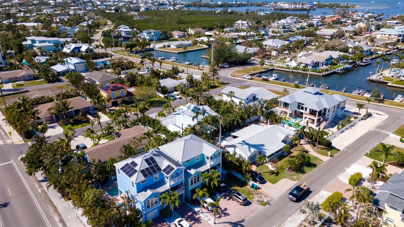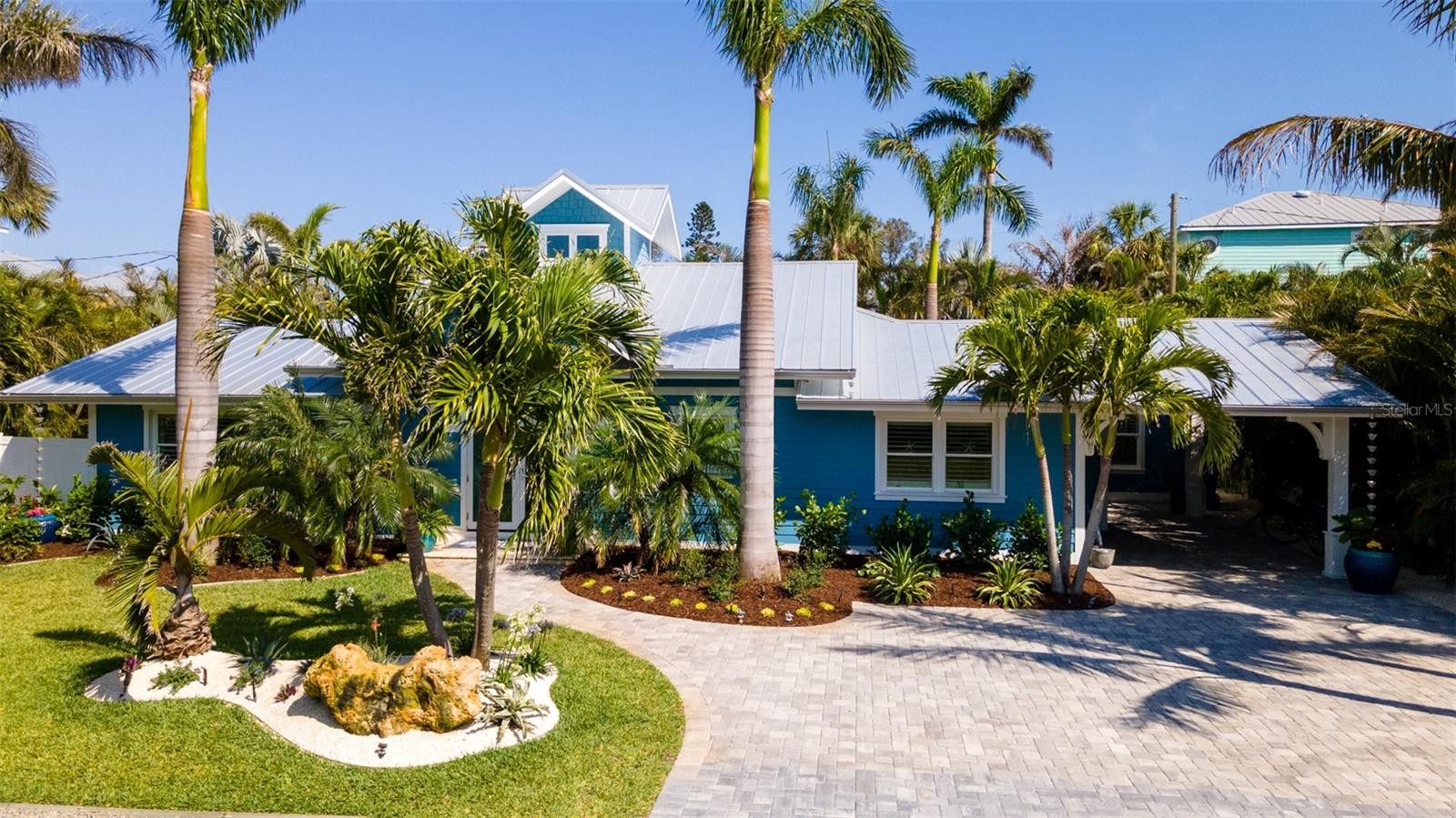 Charming Coastal Cottage in Holmes Beach. Welcome to this newly and meticulously remodeled coastal retreat, ideally located in the heart of Holmes Beach. This one-of-a-kind, artsy beach cottage blends timeless charm with modern elegance and smart technology. Step through the inviting rain glass double doors into a spacious open-concept living, dining, and kitchen area, where a dramatic lighted cupola and vaulted ceilings create a stunning first impression. A custom shell stone fireplace with a wood mantle adds warmth to the cozy seating area—perfect for relaxing or entertaining. The chef’s kitchen is a true showstopper, featuring an oversized, lighted quartz island with seating, beadboard cabinetry, and a custom wave-patterned glass backsplash. High-end appliances include an ILVE Majestic 4-burner gas stove with griddle, GE Café refrigerator, wine fridge, and porcelain farm sink—all designed with entertaining in mind.Craftsmanship continues throughout with custom millwork, shiplap accents, paneled walls, and solid-core doors. Oversized sliding glass doors open to reveal a tropical backyard oasis, complete with a free-form heated pool and spa, paver patio with artificial turf. The lush, mature landscaping with up lighting show off the tall palm trees, perfect for a evening cocktail party under the stars. The southern-facing yard is perfect for dining, lounging, and soaking up the sun. Each of the three bedrooms and 2.5 baths showcases custom chrome period fixtures, retro-inspired sinks, and designer details. Tech-savvy buyers will love the smart home features, including Lutron lighting controls, LED lighting, Sonos sound system, security cameras, and plantation shutters. The property includes a 250-gallon buried propane tank serving the on-demand water heater, gas grill, pool heater, and stove. It’s also generator-ready with existing plumbing and wiring in place. There is city dockage close by for boating enthusiast's This extraordinary home offers a rare blend of beachy charm and luxurious amenities—an absolute must-see!
