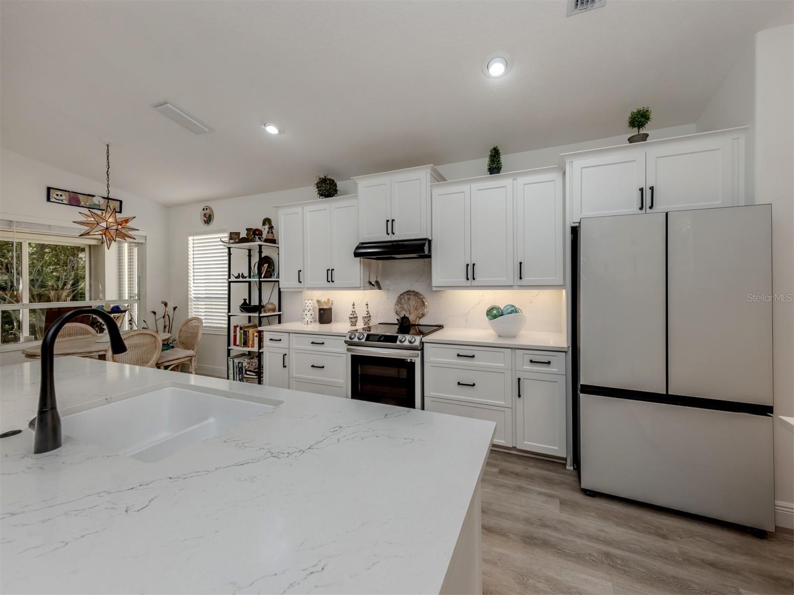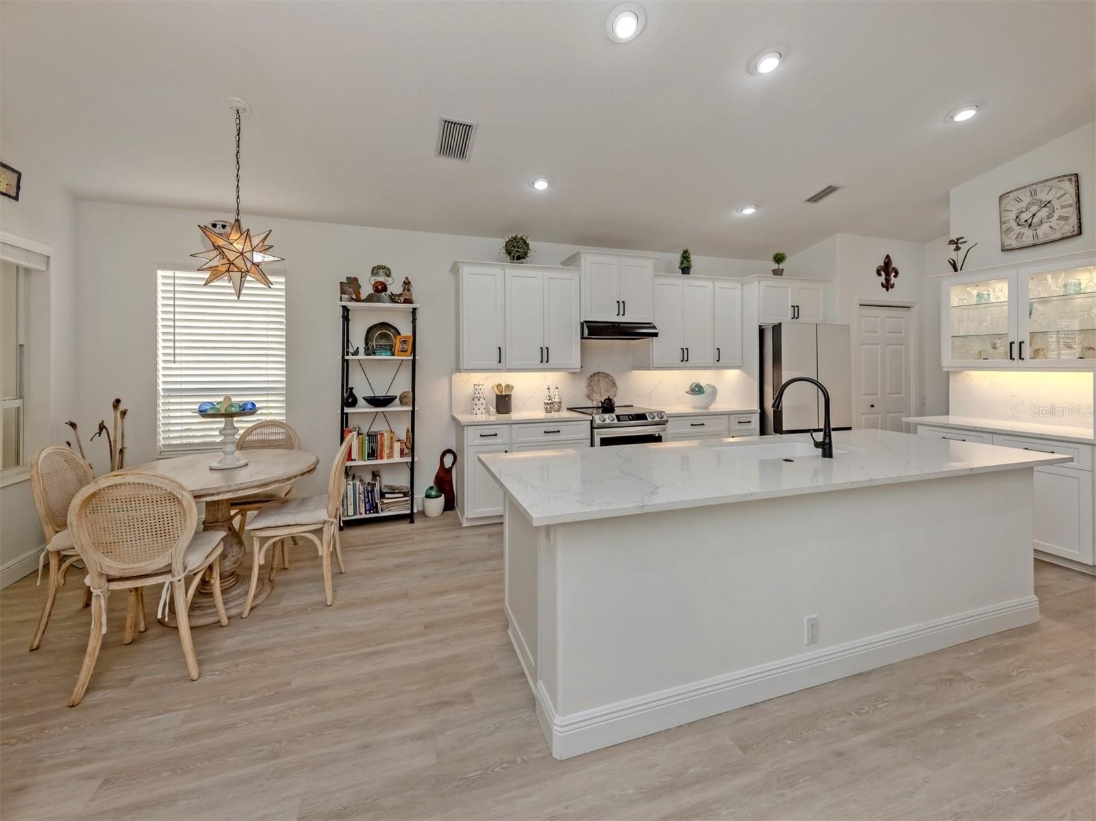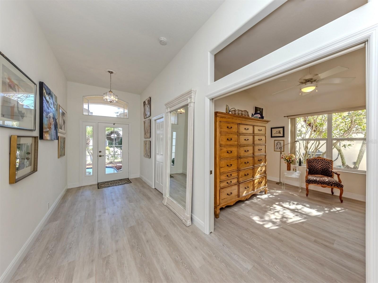 Exquisite Elegance in Pelican Pointe – Just Minutes from Historic Venice Island. Discover this meticulously updated and elegantly designed home in the exclusive gated community of Pelican Pointe, perfectly situated just minutes from the charming shops, dining, and beautiful beaches of Venice Island. Enter this resort style subdivision, through the iconic oak-lined drive leading to the Clubhouse on the hill, offering a bar/grill/restaurant, heated pool, tennis courts, pickleball, pro shop, fitness center, all surrounded by 27 holes of golf. Although, golf membership is not mandatory the pristine golf course is both dynamic and beautiful. Step inside 404 Pinewood Lake, and you’ll immediately notice the light wooden-inspired flooring that flows seamlessly throughout the entire home, creating a sense of spaciousness and refined luxury. The foyer, adorned with art, opens to the left to a comfortable guest area with a full bath, while the sun-filled den (easily a third bedroom) continues the warm, inviting ambiance. The Great Room effortlessly combines the living, dining, and kitchen spaces, making it perfect for entertaining family and friends. The gourmet kitchen is a true centerpiece, featuring a stunning stone countertop island with sink, ample high-end cabinetry, and upscale appliances (the refrigerator is a dream!) all complementing the designer aesthetic. This space is truly magazine-worthy, ideal for both casual gatherings and elegant dinners. The well sized primary suite offers a serene retreat with an updated bath and a generous walk-in closet. A beautifully enclosed lanai, lined with windows overlooking the lush garden, serves as a sun-drenched room perfect for relaxation, reading or pursuing an artistic talent. Every detail of this beautiful home reflects the touch of an interior designer, creating a picture-perfect setting ready for you to enjoy. Don’t miss the opportunity to make this extraordinary home yours—schedule your private showing today.
