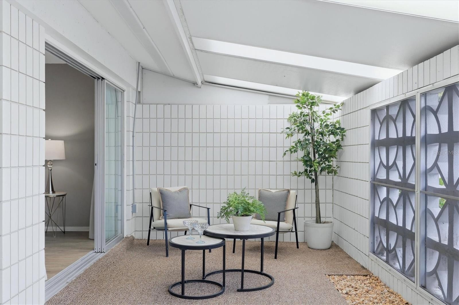 Location, location, location! Enjoy the ultimate Venice Island lifestyle just moments from everything. This ideally situated villa offers easy access to downtown Venice, where you can explore charming cafés, boutique shopping, local art events and vibrant dining. Spend your evenings catching breathtaking Gulf sunsets at nearby beaches, all while being conveniently located across from John Nolen Park with park benches and an ample playground. This beautifully updated villa lives larger than expected, featuring two bedrooms, a shared bath, a spacious living room and a dedicated dining area. The expansive covered lanai adds approximately 350 square feet of additional living space, perfect for relaxing or entertaining. Interior upgrades include luxury vinyl flooring throughout, kitchen cabinetry, granite countertops, an updated bathroom with a fabulous walk-in shower, custom closets and two added barn doors that offer functionality as well as a clean aesthetic. A stackable washer and dryer (2025) are also included for added convenience. Major improvements such as a newer roof (2022), air conditioning system (2021) and new electrical panel (2020) and surge protection were added to provide valuable peace of mind. Don’t miss this exceptional opportunity to own a slice of paradise on Venice Island, close to everything you love. Schedule your private showing today before it’s gone!