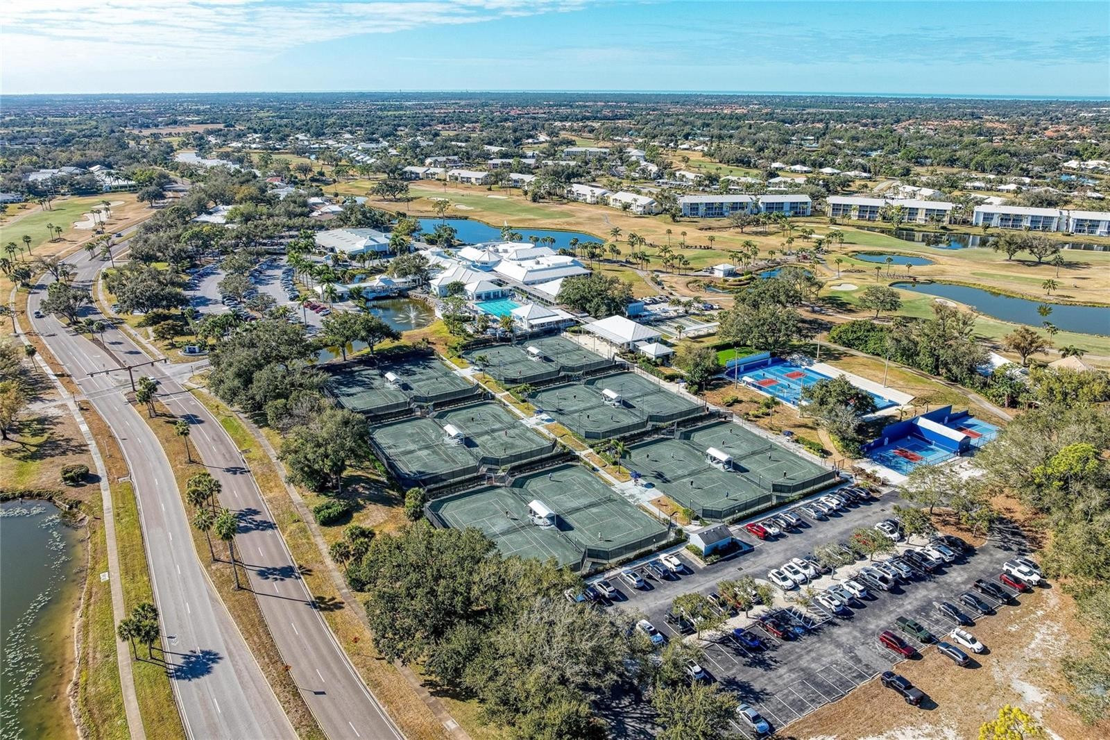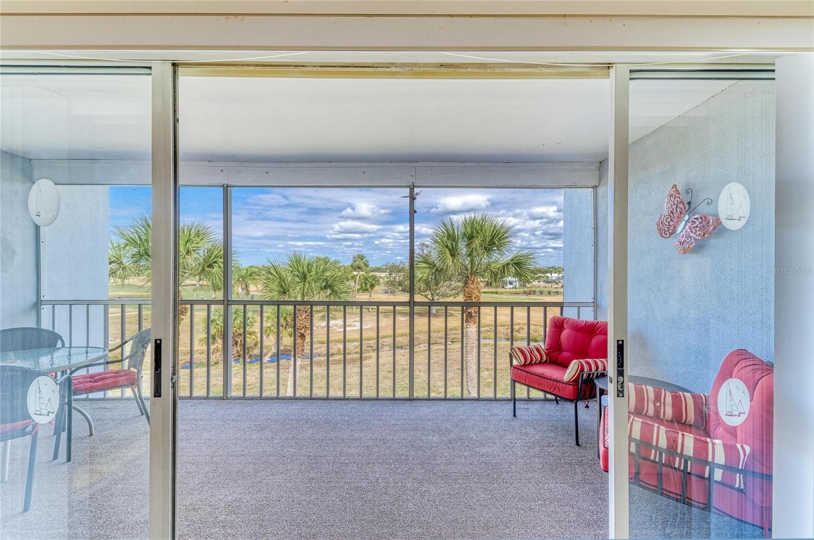 Penthouse unit featuring soaring ceilings and sweeping views of the golf course and lake. This charming 2-bedroom, 2-bathroom condo is offered fully turnkey and furnished, making it move-in ready. Recent updates include a new roof on the building, fresh exterior paint, and newer tile flooring throughout. Light and bright, the condo boasts large sliding glass doors that open to an oversized lanai—perfect for relaxing, entertaining, and taking in the beautiful surroundings that make The Plantation Golf & Country Club so special. Both bedrooms feature en-suite bathrooms and are spacious enough to comfortably accommodate king-size beds. The primary suite includes an updated shower, new flooring, and a very large walk-in closet ideal for storage. A secondary closet houses the washer and dryer for added convenience. Voluminous ceilings enhance the appeal of this top-floor unit, and the building is equipped with an elevator. Located directly across from the unit is a residents-only pool and clubhouse offering frequent social activities, including water aerobics and card games. Social or golf memberships are available separately. Storage closet inside assigned carport. Plenty of guest parking, as well. One covered carport for the unit.
