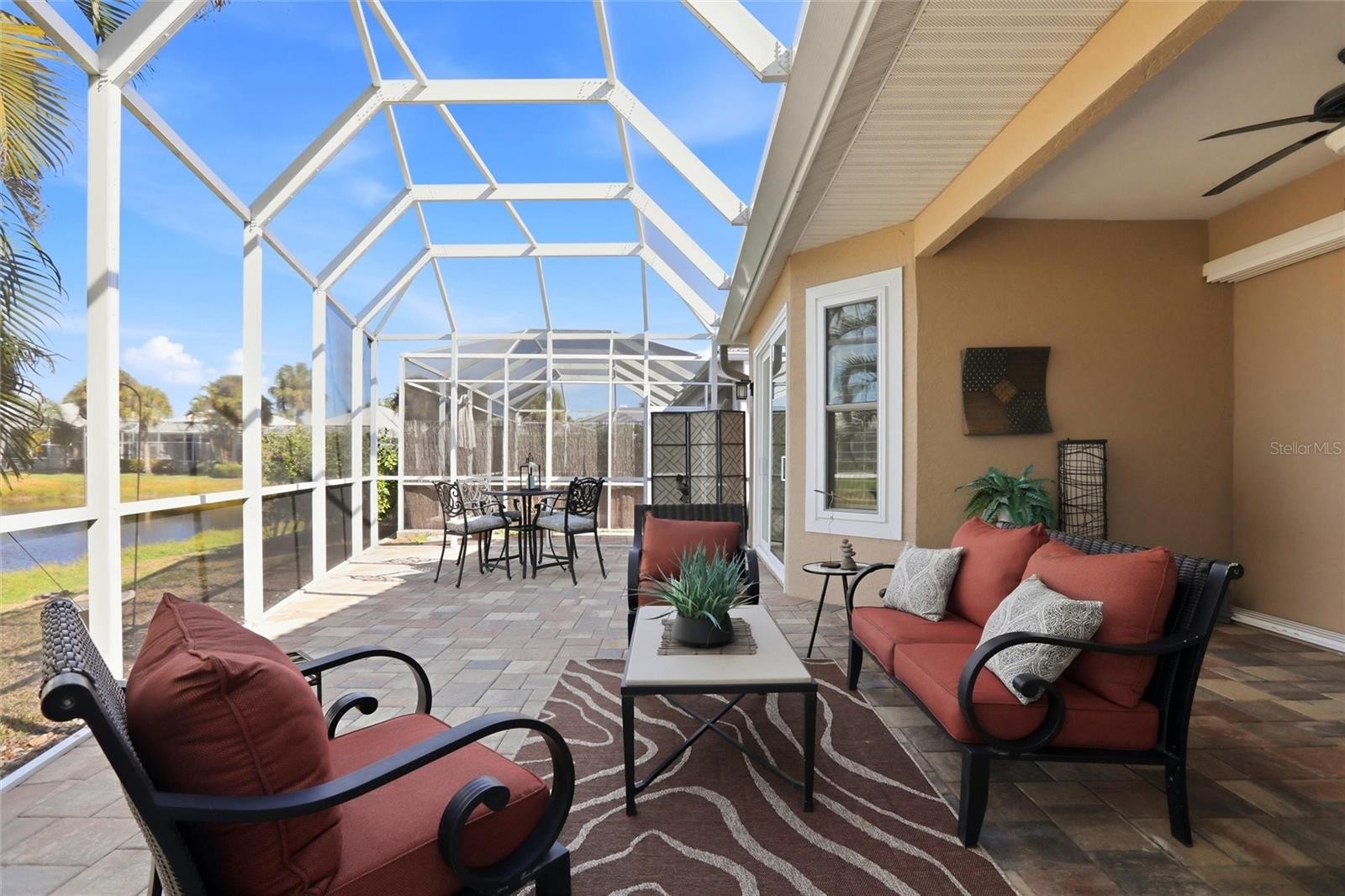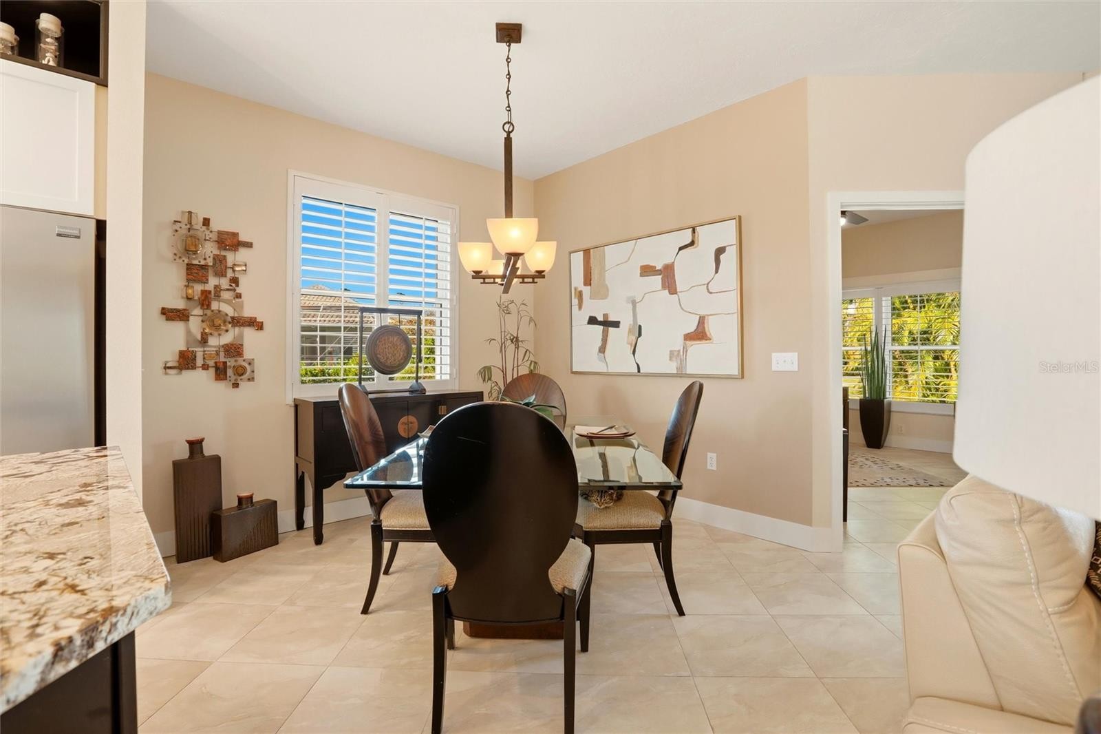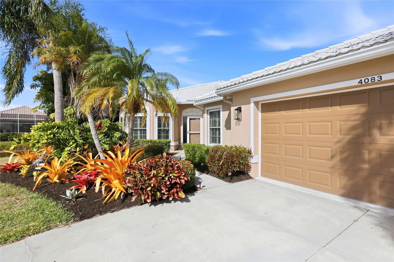 Welcome to 4083 Via Mirada, a beautifully maintained 2-bedroom, 2-bath residence offering 1,693 square feet of bright, open living in one of Sarasota’s most desirable communities. This single-story home features soaring ceilings, elegant tile flooring, and a thoughtfully designed open floor plan ideal for both everyday living and entertaining. The upgraded kitchen showcases granite countertops, stainless steel appliances, custom cabinetry, and a spacious breakfast bar that flows seamlessly into the dining and living areas. Retreat to the spacious primary suite with serene views and designer finishes, while the guest bedroom offers comfort and privacy. Step outside to the screened lanai overlooking tranquil lake views—perfect for relaxing or hosting guests. Lush tropical landscaping, abundant natural light, and a move-in-ready interior complete this exceptional Florida lifestyle home, conveniently located near shopping, dining, and Gulf Coast beaches.