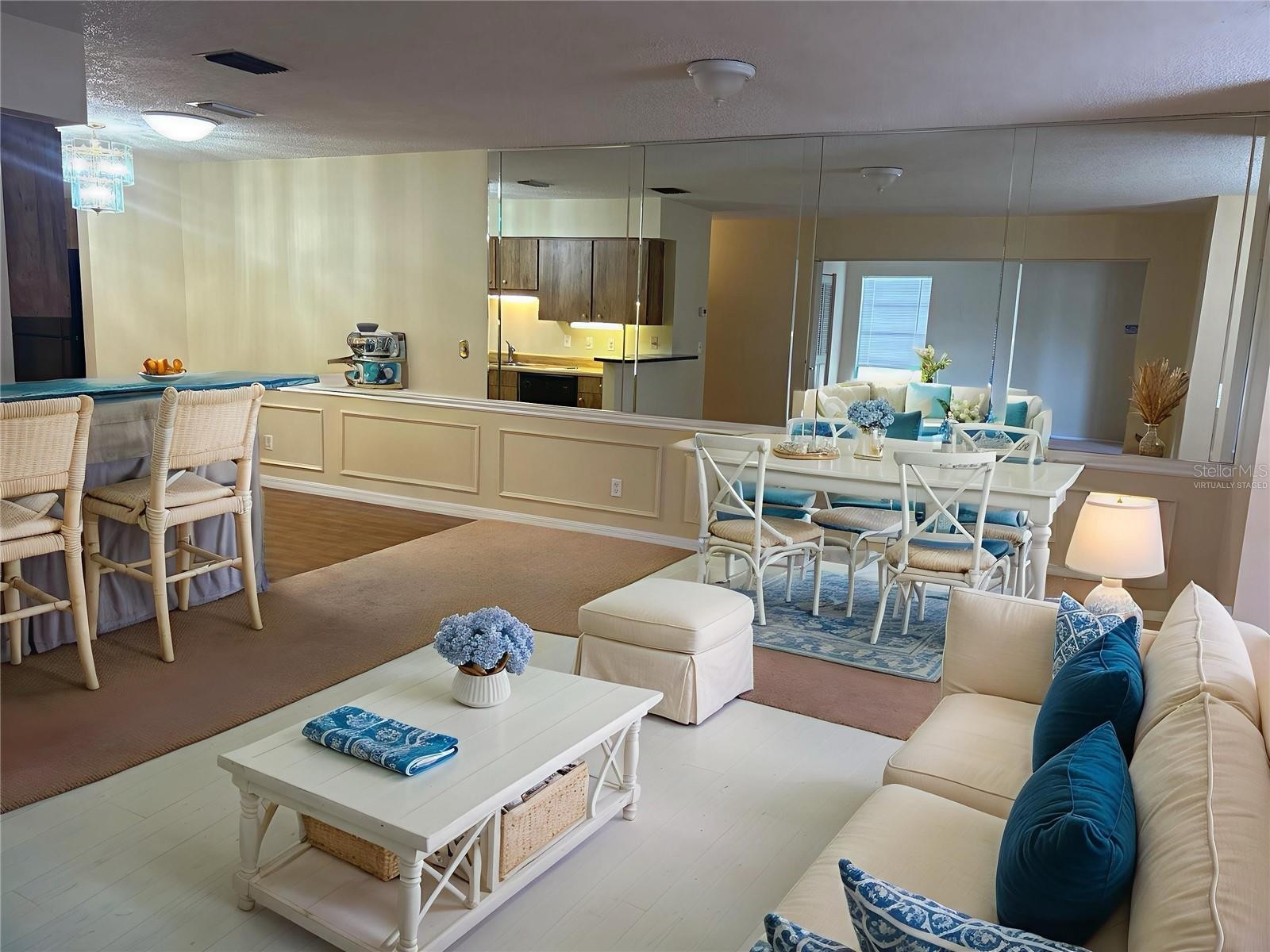 One or more photo(s) has been virtually staged. Discover the perfect mix of comfort, flexibility, and coastal charm in this inviting 2-bedroom, 2-bath villa! The versatile second living room/bedroom space can be easily walled off for complete privacy or left open—thanks to a hidden, built-in accordion wall—giving you the freedom to host overnight guests or open up the area for large gatherings. You’ll also enjoy two outdoor living spaces—a lanai and a Florida room—so you never have to choose between them. This move-in-ready home is located in a serene, maintenance-free community with lower-than-average HOA fees and is not in a flood zone, offering both peace of mind and easy living. The light-filled open floor plan creates a welcoming atmosphere, while the kitchen provides ample cabinet and counter space, perfect for cooking and entertaining. The primary suite offers a private retreat with its own en-suite bath and generous closet space. Step outside to your private patio for morning coffee or evening relaxation. Just a short walk away, the beautifully landscaped community features a sparkling pool and clubhouse—ideal for lounging or socializing. Conveniently located only minutes from Pinebrook public golf course, Anna Maria Island and Longboat Key beaches, Sarasota-Bradenton International Airport, downtown Bradenton dining and shopping, hospitals, and the scenic Bradenton Riverwalk. Whether you’re seeking a full-time residence or a seasonal escape, this villa combines low-maintenance living with the best of Florida’s Gulf Coast lifestyle.