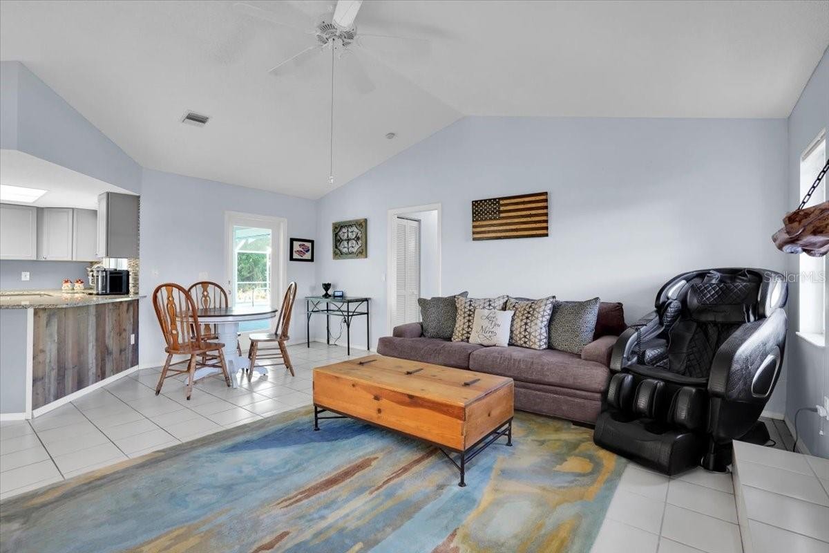 This 3-bedroom, 2-bath pool home is situated on a corner lot, with no neighborhood restrictions. You can access the pool from the formal living room, which has French doors, the kitchen, the primary bedroom, and the guest bathroom. The home has a wood-burning fireplace with a beautiful live-edge wood mantle. The updated kitchen boasts granite counters and stainless steel appliances. The primary bedroom has two walk-in closets, one of which is cedar. Other features include a convenient pass through from the kitchen to the pool deck; a radiant barrier in the attic, and hurricane shutters. The garage is wired for 220V power. All of the storm doors and windows surrounding the pool were replaced in 2020. Extra storage above the garage with plywood laid down. Updates include: Bluetooth garage door opener (2021); A/C, pool pump, motor and timer, and pool cage (2024); kitchen appliances, washer and dryer (2022); septic system, electrical panel, pool remarcited, and roof (2020). Septic was pumped out in 2024. New carpet in the primary bedroom, hallway and closets, with extra carpet in the garage. New hot water heater 2025.