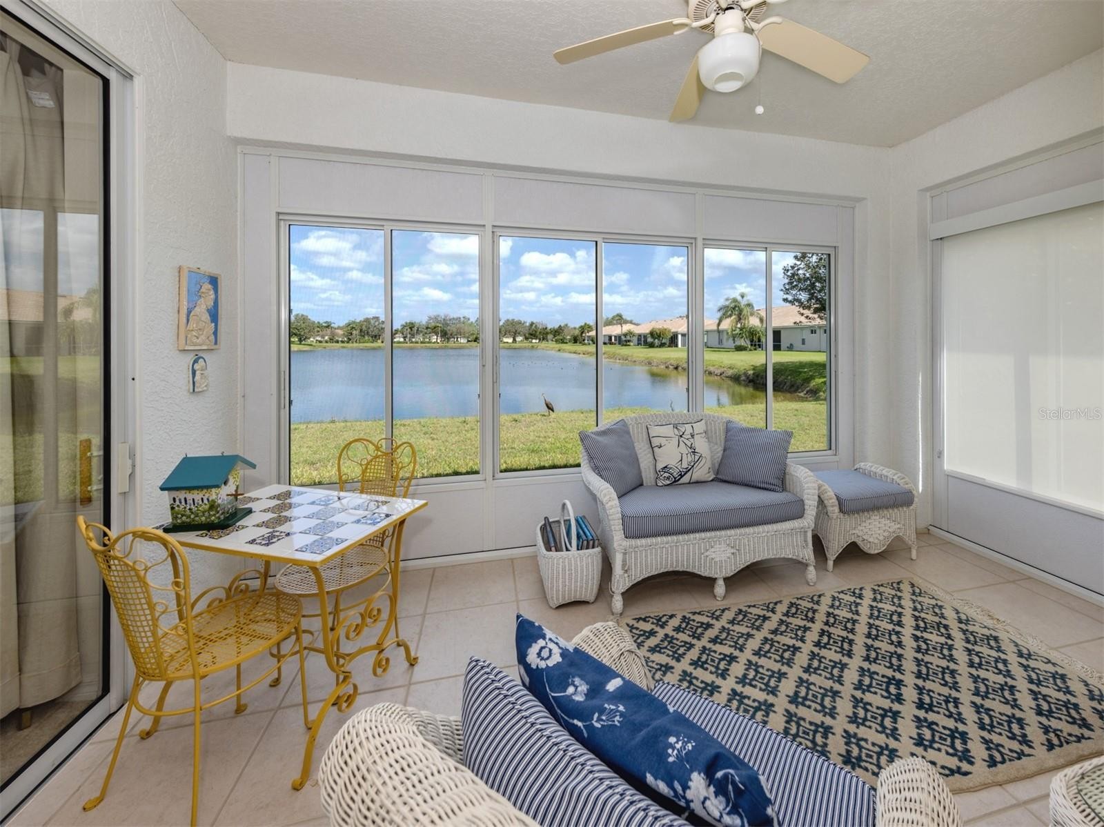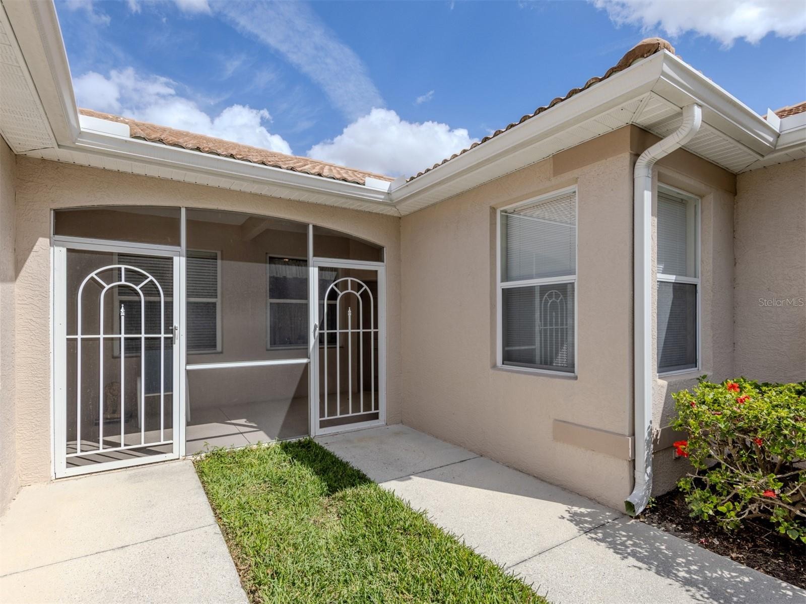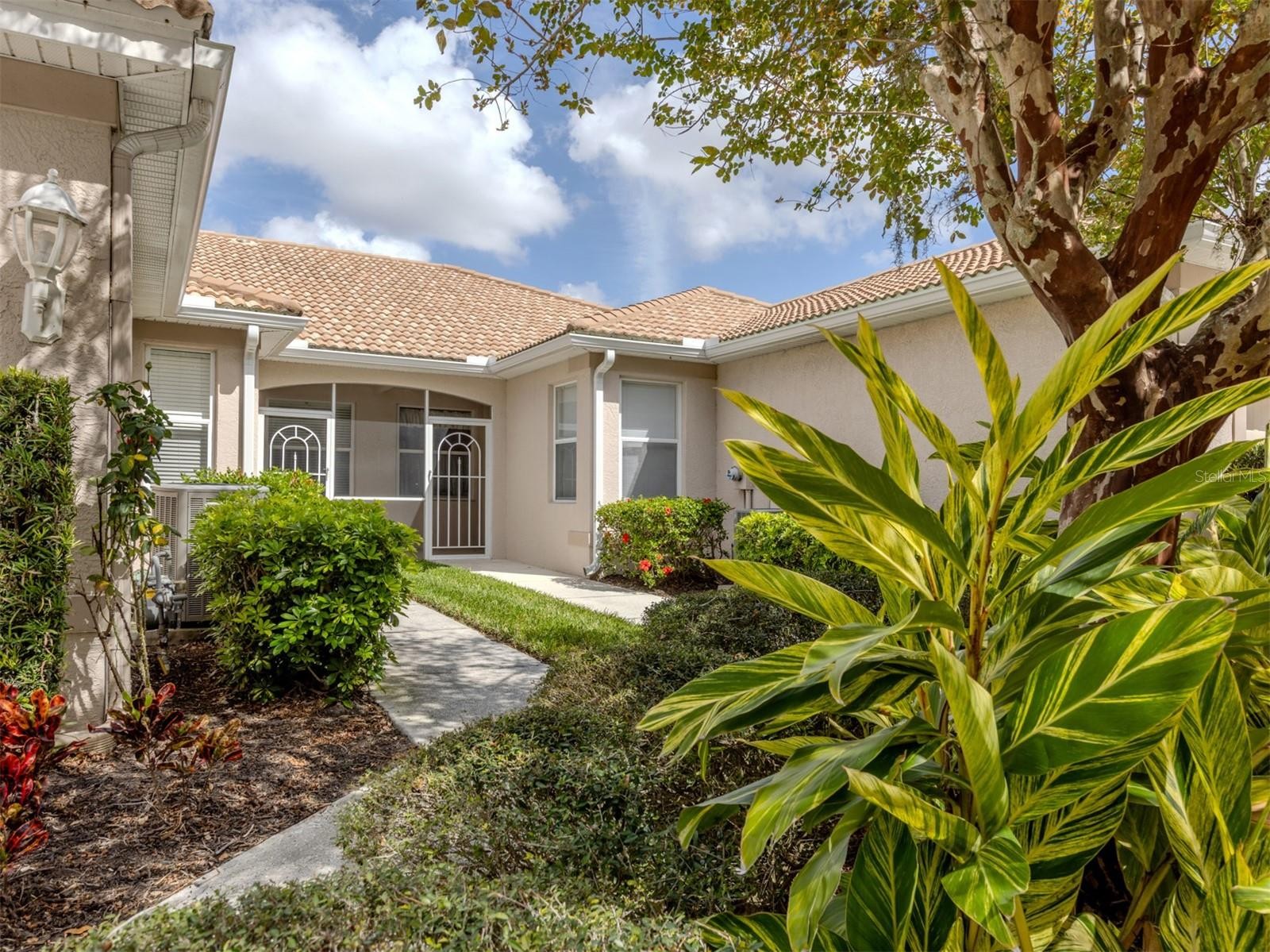Charming WATERFRONT villa in Lakeridge Falls, a Sarasota Gem! This end unit, 2 bedroom plus den home boasts extra square footage with the enclosed lanai space with hurricane windows AND fully air conditioned. The beautiful full lake view offers lots of nature and tranquility. Tile flooring in the main areas of the home give the home spaciousness and easy maintenance. The primary bedroom features an updated en-suite bath and walk-in closet. The second bedroom and guest bath are at the front of the home- offering privacy for guests. The kitchen has a convenient pass through window and breakfast area. The community of Lakeridge Falls offers a large range of amenities. The recreation and social center features a clubhouse which recently underwent a major renovation. The grand salon has been enlarged to accommodate large gatherings and meetings. The fitness center is located in a large space in the clubhouse. Immediately adjacent to the clubhouse is the pool annex building which now contains two billiards tables, a library and two computer stations with free Wi-Fi. Our outdoor amenities include a heated resort-style pool, spa, and two bocce ball courts. Our activities include a variety of card games like mahjong, poker, and bridge, bingo nights. Other activities include bocce, table tennis, yoga/stretch classes, as well as, water aerobics. There is even their own lakeside beach! The location is perfect! Close to dining, restaurants, SRQ and the University shopping complex and the expansive Mote Marine Aquarium. So convenient to SRQ.