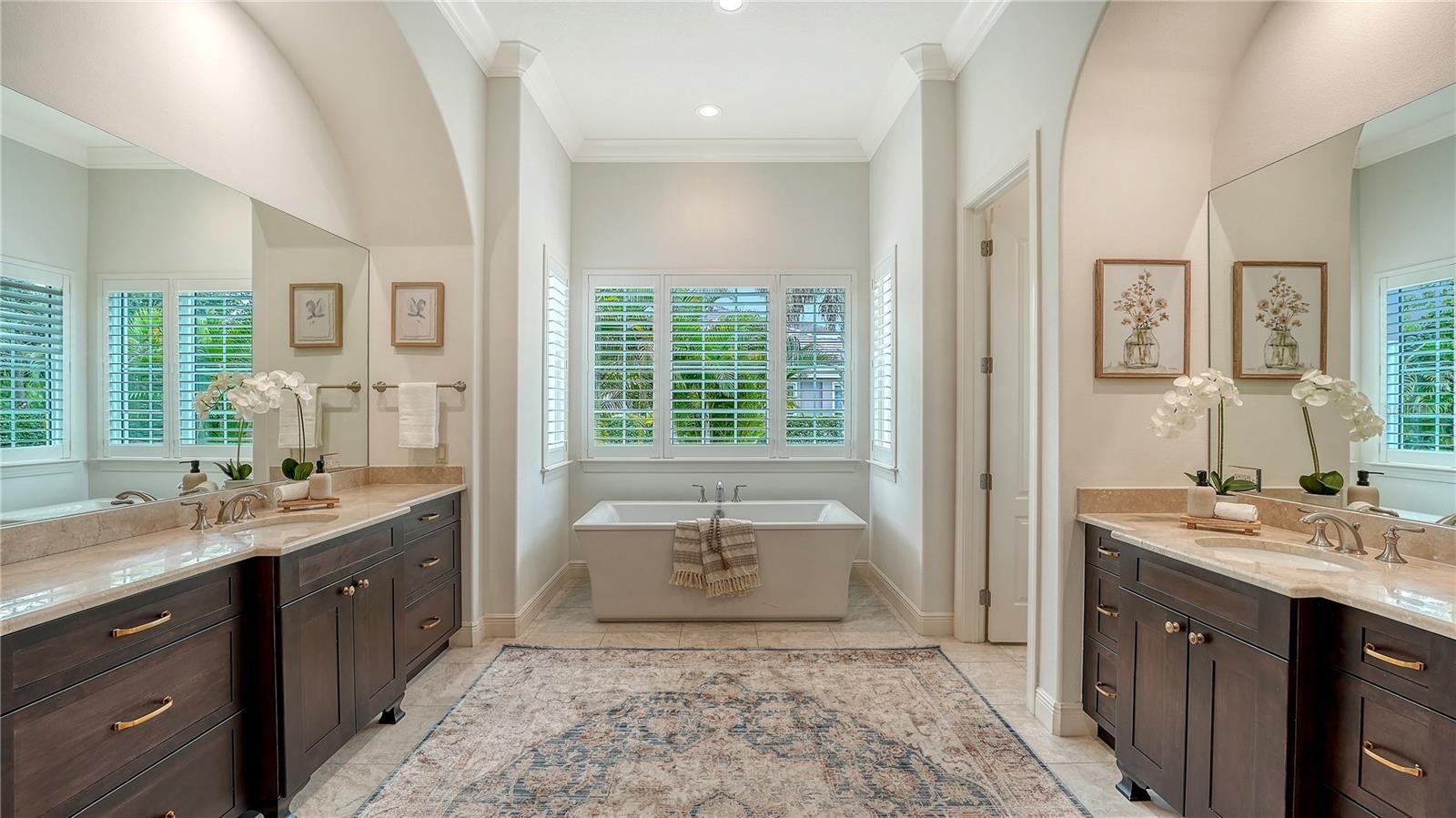 WHEN YOU SEE IT, YOU KNOW... From the moment you arrive, the grand entry sets the tone for this beautifully designed John Cannon residence, where elegance and intentional design create an immediate sense of arrival. Set on nearly two-thirds of an acre within the guard gated community of The Founders Club, the home captures sweeping golf and water views, creating a private and picturesque setting. The generous homesite provides a sense of space and privacy that is increasingly rare, adding to the overall experience of the home. Step inside and the home unfolds with refined architectural details, spacious living areas, and an atmosphere that feels both elegant and welcoming. Recent updates elevate both the interior and exterior, including fresh interior and exterior paint, newly installed quartz countertops in the kitchen and butler’s pantry, and a fully renovated outdoor kitchen designed for effortless entertaining. The kitchen showcases premium appliances, including a Sub-Zero refrigerator and Wolf range. A versatile guest suite offers generous proportions, ideal as a second primary suite, private office, or media retreat, with integrated audio enhancing the space. The floor plan flows naturally to the outdoor terrace, where indoor and outdoor living come together with ease. With its northeast exposure, the terrace offers a comfortable setting throughout the day while capturing the home’s sweeping views. Remote-controlled blinds in the main living areas provide both convenience and comfort while framing the scenery beyond. Interior and exterior lighting have been updated with recessed trim can lighting, creating a clean and cohesive ambiance throughout the home. Here, the experience comes together, with golf and water views providing a beautiful backdrop for relaxing evenings or entertaining. The home features a centralized multi-zone audio system, with surround sound in the great room and built-in speakers in the dining room, kitchen, guest suite, and outdoor terrace, creating a seamless sound experience throughout key living areas. A private entry casita offers a refined and versatile retreat, positioned to provide both separation and connection, ideal for visiting guests, extended family, or a secluded home office. Located within The Founders Club, a private golf community known for its natural beauty and championship course, this home offers convenient access to Sarasota’s dining, cultural venues, shopping, and Gulf Coast beaches. This is a rare opportunity to experience luxury living in one of Sarasota’s most sought-after communities. It is a home that reveals itself over time, where design, setting, and experience come together in a way that feels both immediate and lasting.