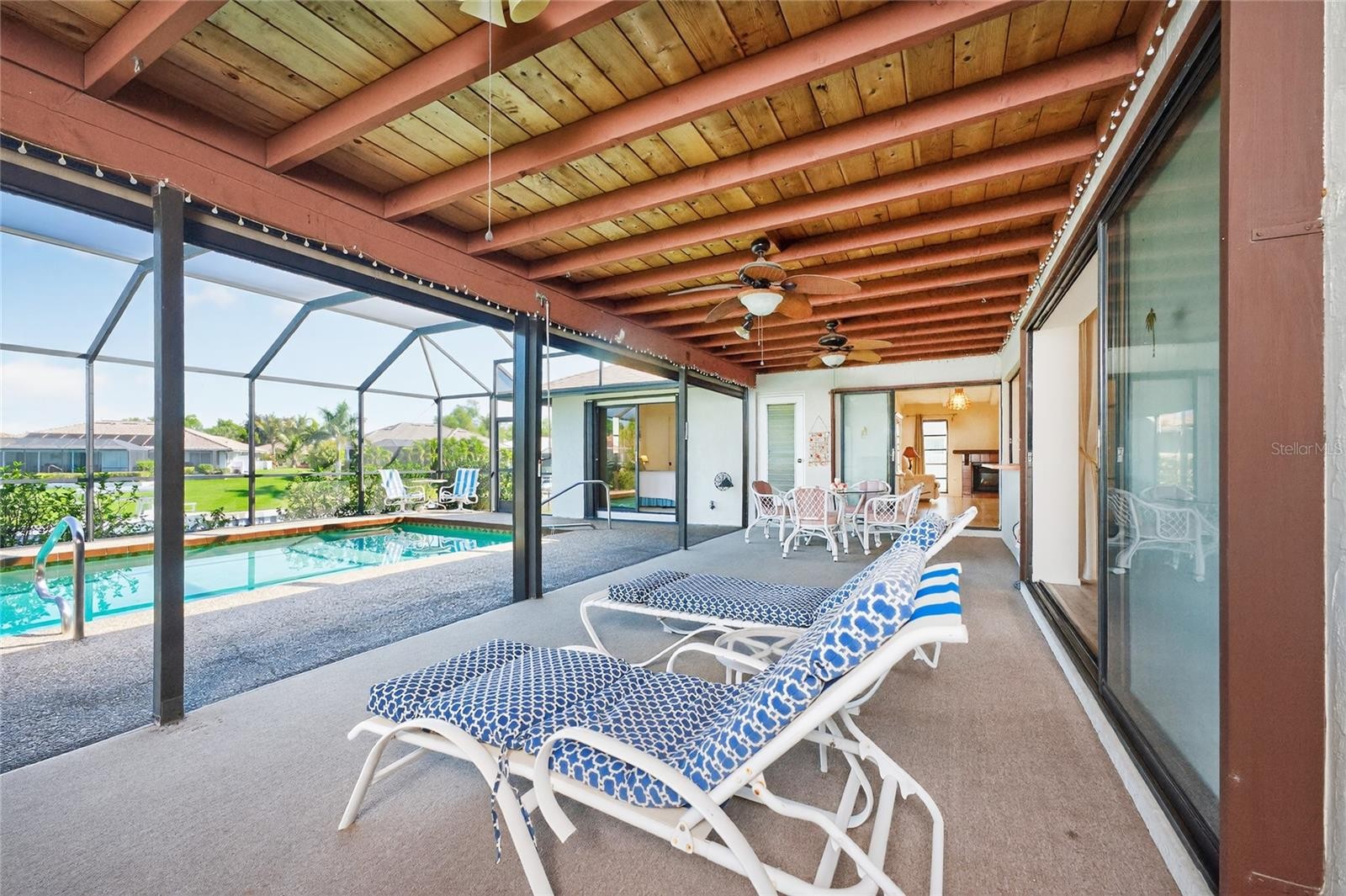 Under contract-accepting backup offers. From spontaneous sunset cruises to lazy days in the pool, this classic Englewood Isles home offers direct access to the Gulf and Lemon Bay and had no flooding during past storms, with the entire structure of the home in the X flood zone. This three bedroom, two bathroom, two car garage home is being sold furnished and is set on a nicely sized lot with mature landscaping that creates a welcoming first impression. Step inside to a light filled interior with cathedral ceilings and a layout full of potential. From the foyer, enjoy the formal living and dining rooms with sliding glass doors that open to the pool area, or head to the family room featuring an electric fireplace and additional sliding doors that bring the outdoors in. The kitchen serves as the heart of the home with abundant cabinetry and countertop space, a breakfast bar that opens to the family room, a closet pantry, and a convenient pass thru window to the lanai that makes entertaining easy. The split floorplan provides privacy for the ensuite primary bedroom, complete with sliding glass doors to the lanai, a large cedar lined walk-in closet, oversized vanity, and step-in shower. The guest bedrooms each offer walk-in closets, with one also featuring sliding glass doors, while the guest bathroom doubles as a pool bathroom with an oversized vanity and tub and shower combination. Outside, you will enjoy views of intersecting canals from the partially covered and screened lanai with a motorized hurricane shutter, along with a spacious heated pool designed for year round enjoyment. Just beyond the screen enclosure, a 30 foot dock with composite decking, boat lift, and concrete seawall creates the perfect setting for quickly heading out for a day on the water or casting a fishing line. Additional features include a 2023 roof, irrigation well, and a combination of hurricane protection including shutters and fabric screens. Englewood Isles is a well established deed restricted waterfront community offering easy boating access to Stump Pass in Englewood and Snake Island in Venice. Spend your days exploring the clear waters, searching for shells and sharks’ teeth, or catching the green flash at sunset. Ideally located between Englewood and Venice, you are close to restaurants, shopping, medical facilities, and nature parks, with Manasota Key Beach less than 3 miles away for an easy bike ride or quick trip to the saltwater. For those who enjoy staying close to home, the community offers several block parties throughout the year helping you connect with neighbors. Whatever your ideal Florida lifestyle may be, it can be found here at 413 Eden Drive.