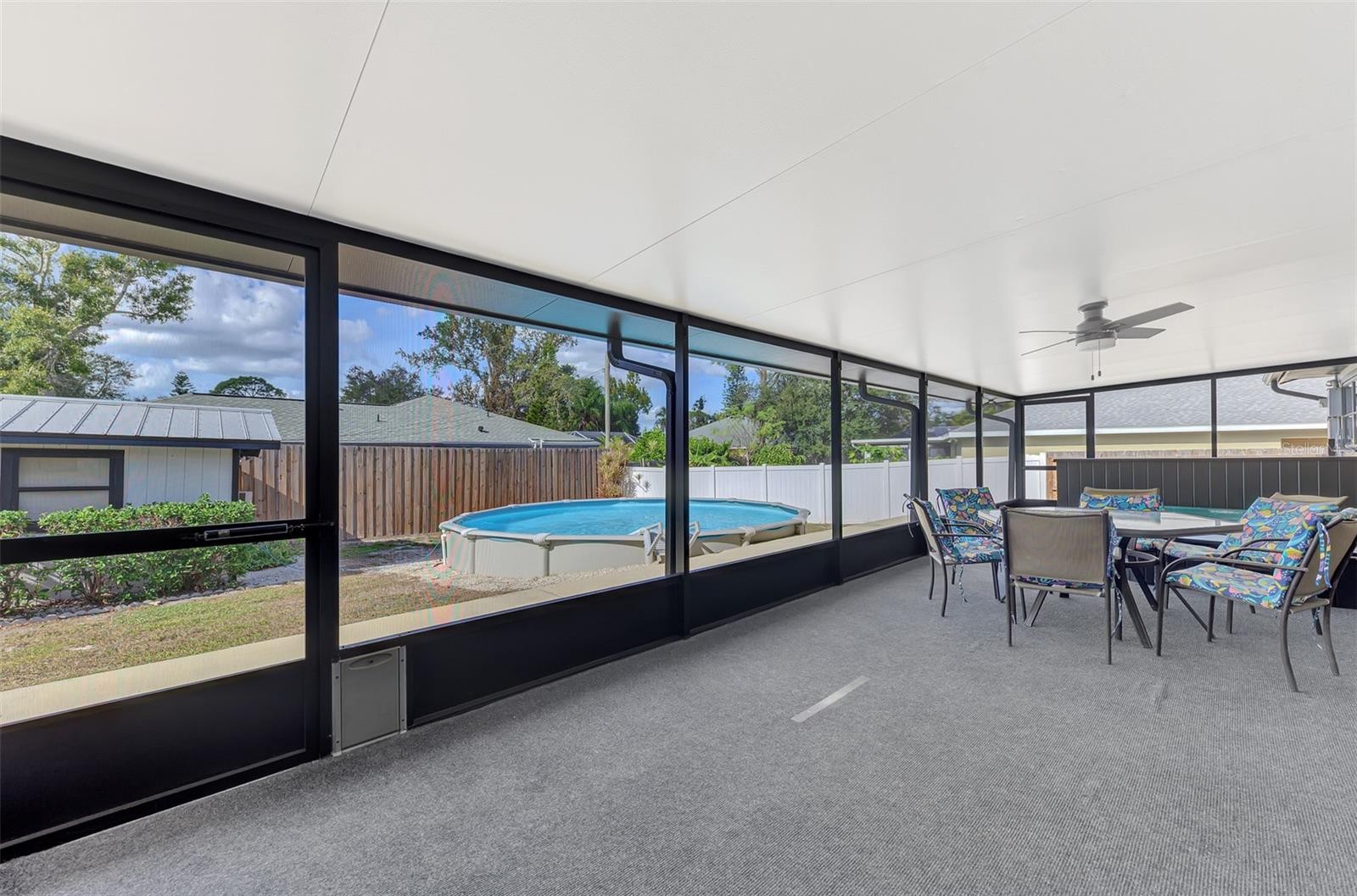 Come and explore this remarkable large family home located on an oversized corner lot in the desirable Lake Sarasota community. This move-in ready property is situated within a highly sought-after school district with Lakeview Elementary just a short distance away. The home has been meticulously maintained and features all new interior and exterior paint, newer appliances, and a well designed open floor plan connecting the living room, dining room, and kitchen. Highlights include wood floors, a built-in gas fireplace, a spacious home office area, and a large laundry room with extensive storage and included washer and dryer. Additional features include a metal roof for long-term durability, two expansive screened patios at the front and rear of the home, and a large fenced backyard with a sunken above-ground pool. The rear patio also includes a hot tub--perfect for relaxing evenings. An added bonus is the workshop shed with dedicated parking pad suitable for a boat or RV, discreetly positioned on the side of the corner lot. This non-deed-restricted community has no HOA fees, offering flexibility and freedom. Homes like this are rare, and this one truly stands out. Call for your private showing today!
