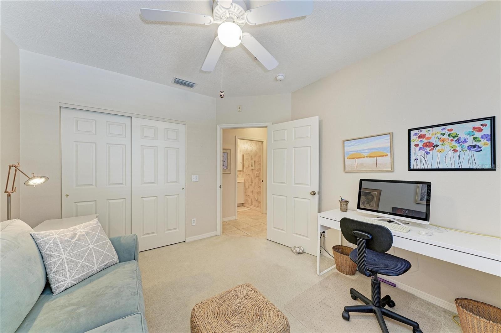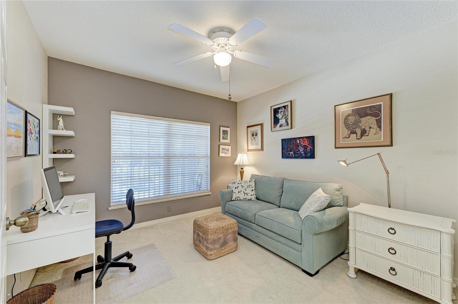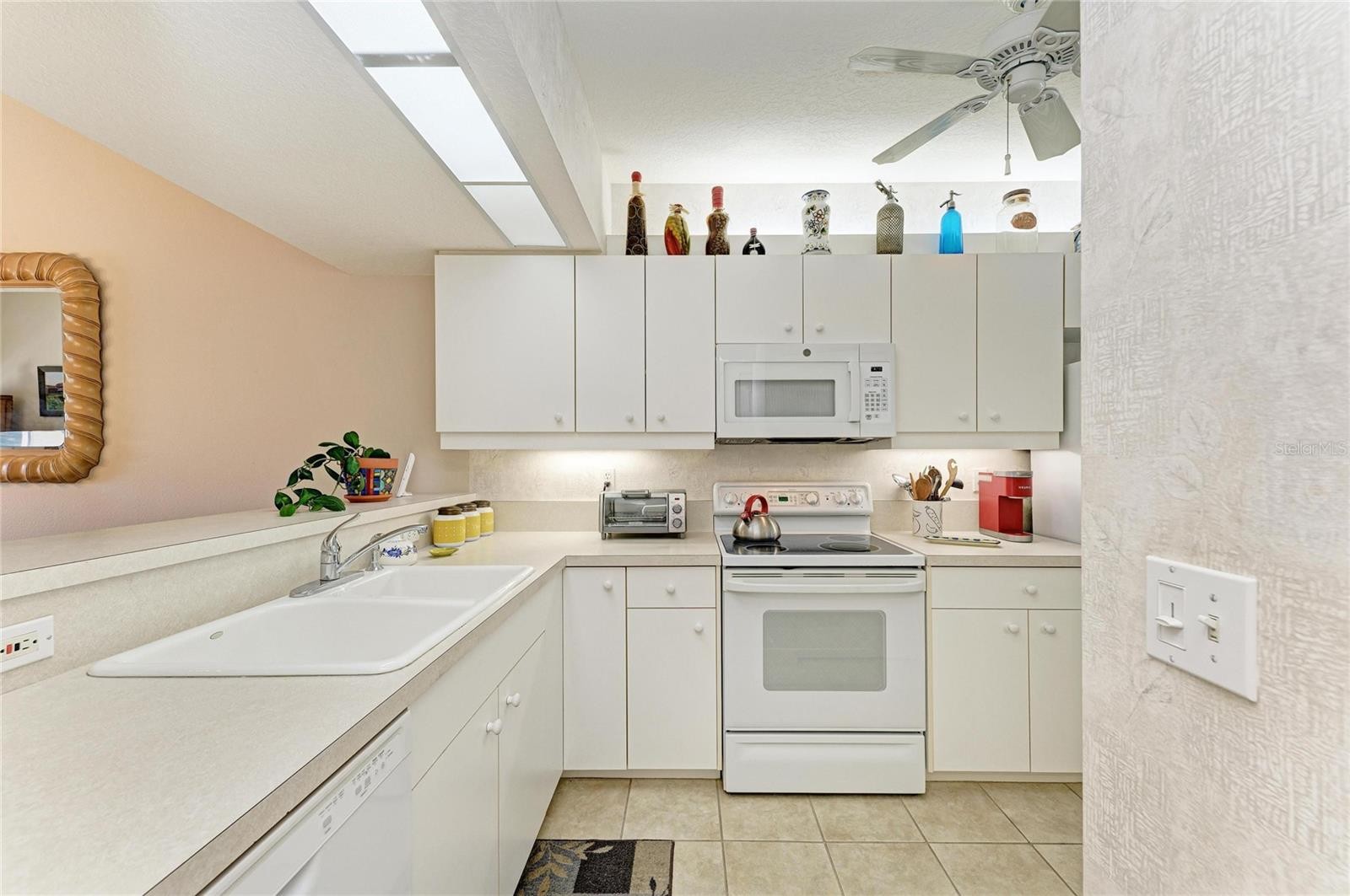 Fabulous opportunity to join the active community of Waterside Village in this immaculate, well maintained condo. The second floor home offers maximum privacy and incredible sunset views of the lake below. Cathedral ceilings give the open floor plan an expansive feel and opens to a spacious lanai overlooking the lake. A screened front porch welcomes your guests into a lovely foyer. Step into the spacious dining/living room with sliding glass doors to the lanai. Enjoy cooking in the well maintained kitchen which includes lots of cabinets with newly installed pull out drawers for storage and a recently replaced dishwasher. The cozy breakfast nook has bay windows with blinds (the stained glass covering will not stay with the home). In addition to lots of cabinets, there's a desk for organization. The comfortable owners' suite offers views of the lake below and includes a private bath with dual vanities, large walk-in shower and a huge walk-in closet. A guest bedroom, currently used as an office, is conveniently located near the kitchen for maximum privacy and boasts a spacious built-in closet and an adjoining full bath. You will love the privacy on the large lanai which offers views of the lush landscaping and nature surrounding the lake and includes pull down sun shades when the Florida sun gets too intense. There is an enclosed laundry room off the lanai which includes a brand new washing machine and lots of storage. This well maintained home also includes a brand new water heater, newly serviced air conditioner and all appliances have been regularly serviced. Included with this home is a designated carport and a private, locked, spacious storage unit. The friendly neighborhood has tons of guest parking right outside your door. Waterside Village amenities are beyond amazing! Enjoy swimming in one of 3 pools, playing tennis or pickleball, bocce, shuffleboard and gathering friends and family in the Clubhouse with a spacious screened porch for luncheons, games or meetings overlooking the pool. The community offers a wide variety of social activities, from card games and fitness classes to book clubs with a private lending library. The low monthly condo fee includes exterior maintenance, landscaping, water, sewer, trash, cable, pest control, building insurance and roof replacement. Waterside Village is conveniently located near the Historicl Downtown Venice, professionally run Community Theatre, restaurants, shops, fabulous Venice beaches, medical facilities, grocery stores, and a nearby golf course. Schedule your showing today!