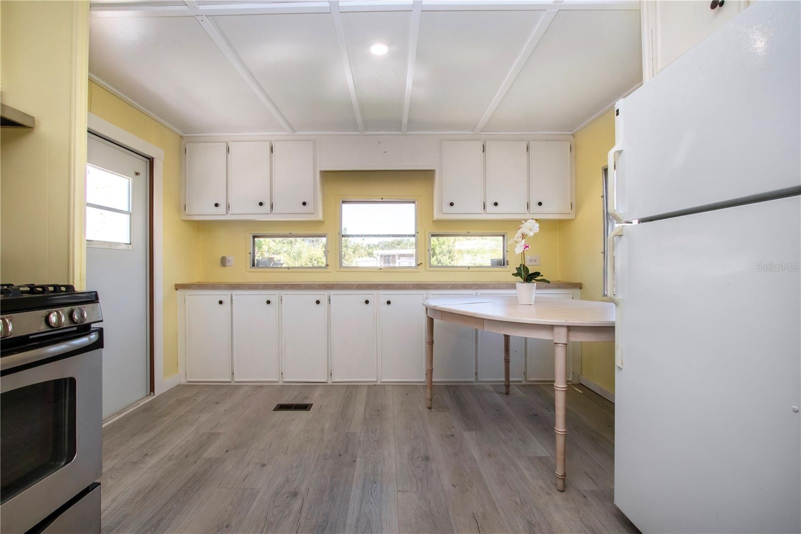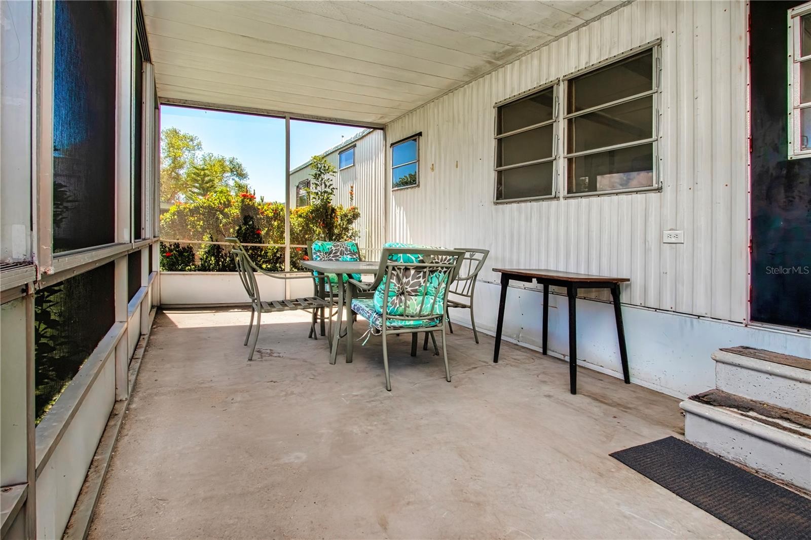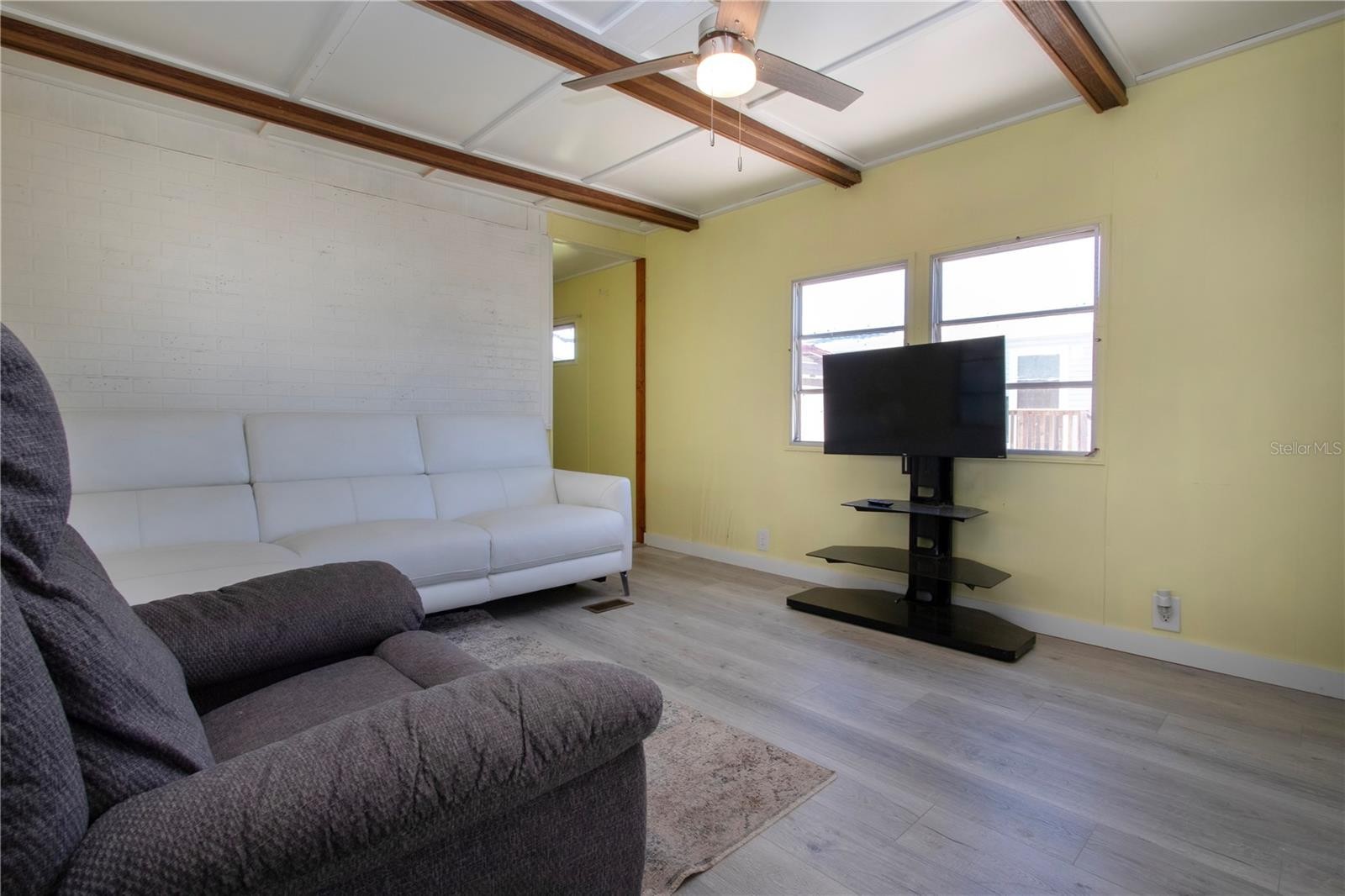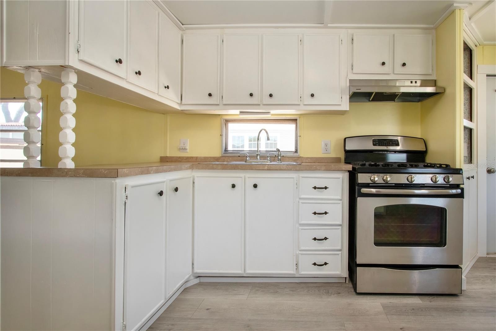 FULLY UPDATED AND FLOODED WITH NATURAL LIGHT, this bright and cheerful 2-BEDROOM, 1-BATH home features an OPEN FLOOR PLAN that feels both spacious and inviting. The BIG KITCHEN includes an eat-in area, NEW RANGE (2025), and abundant cabinet storage — perfect for those who love to cook or entertain. The LARGE, AIRY LANAI provides afternoon shade, making it the ideal spot for relaxing or enjoying the Florida breeze. LAUNDRY is conveniently located in the hallway, and the home is being offered PARTIALLY FURNISHED for a quick and easy move-in. This home has been thoughtfully renovated from top to bottom with 2025 UPDATES including a NEW ROOF with TPO MEMBRANE and INSULATED CEILINGS, REINFORCED SUBFLOORING, and all-new LAMINATE FLOORING throughout. You'll also find FRESH INTERIOR PAINT, NEW LANAI SCREENS, a NEW RANGE, and UPDATED WIRING THROUGHOUT the home. A NEW AC UNIT was installed in 2024, offering energy-efficient cooling year-round. Enjoy peace of mind with LOW MAINTENANCE LIVING — the HOA fee is just $200 per month and INCLUDES LAWN CARE, WATER, SEWER, AND TRASH. The LAST THREE MONTHS’ ELECTRIC BILLS AVERAGED ONLY $65 PER MONTH, making this home not only beautiful but budget-friendly. Located in a vibrant and active 55+ COMMUNITY, this neighborhood offers a range of amenities including a COMMUNITY POOL, SHUFFLEBOARD COURTS, POTLUCKS, SOCIAL EVENTS, and a friendly atmosphere where neighbors become friends. GOLF CARTS, MOTORCYCLES, AND TRUCKS ARE ALLOWED, and SERVICE ANIMALS ARE WELCOME. The location is unbeatable — just 15 MILES TO THE BEACH and only 15 MINUTES TO DOWNTOWN ST. PETERSBURG. You’re also a short 7-MINUTE DRIVE to GROCERY STORES and SHOPPING. For travelers, it’s a quick 30 MINUTES TO SARASOTA AIRPORT and 40 MINUTES TO CLEARWATER AIRPORT. With easy access to BOTH I-75 AND I-275, commuting anywhere in the region is a breeze. This is your chance to own a FULLY UPDATED, MOVE-IN READY home in a friendly, well-kept 55+ community with great amenities and a fantastic location. Schedule your private showing today — THIS ONE WON’T LAST!