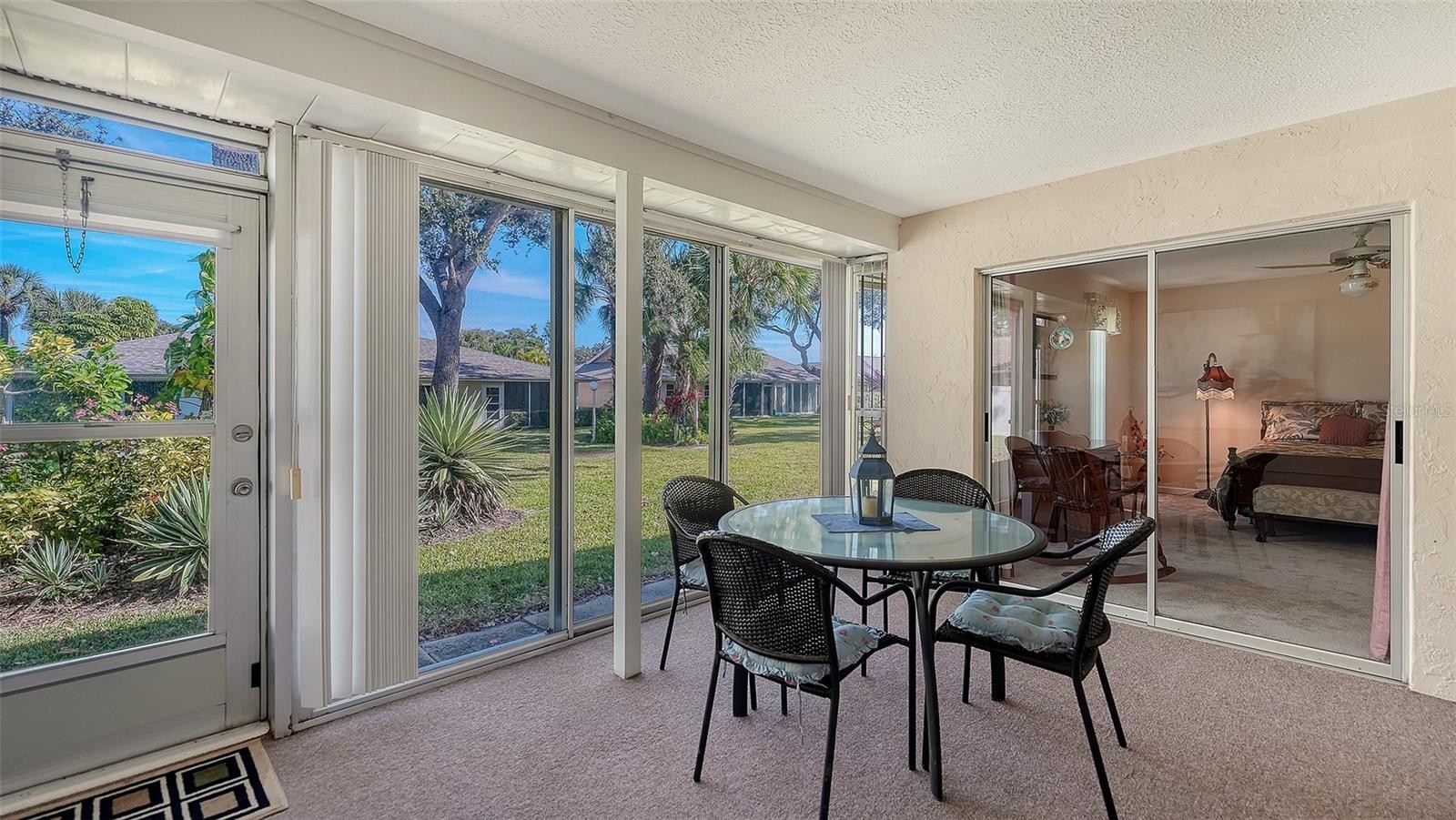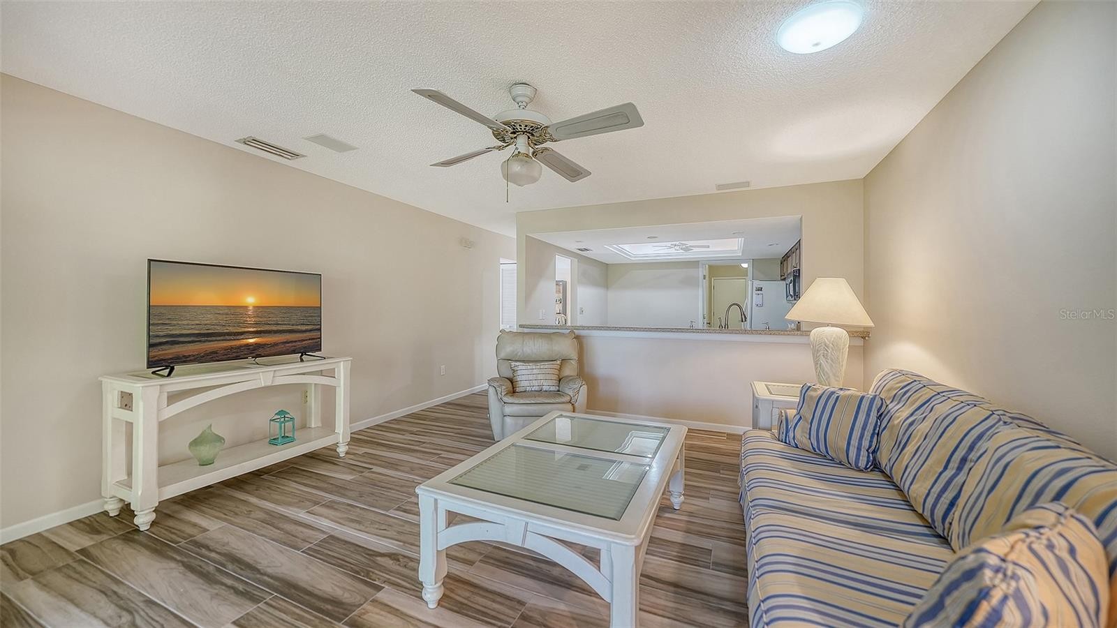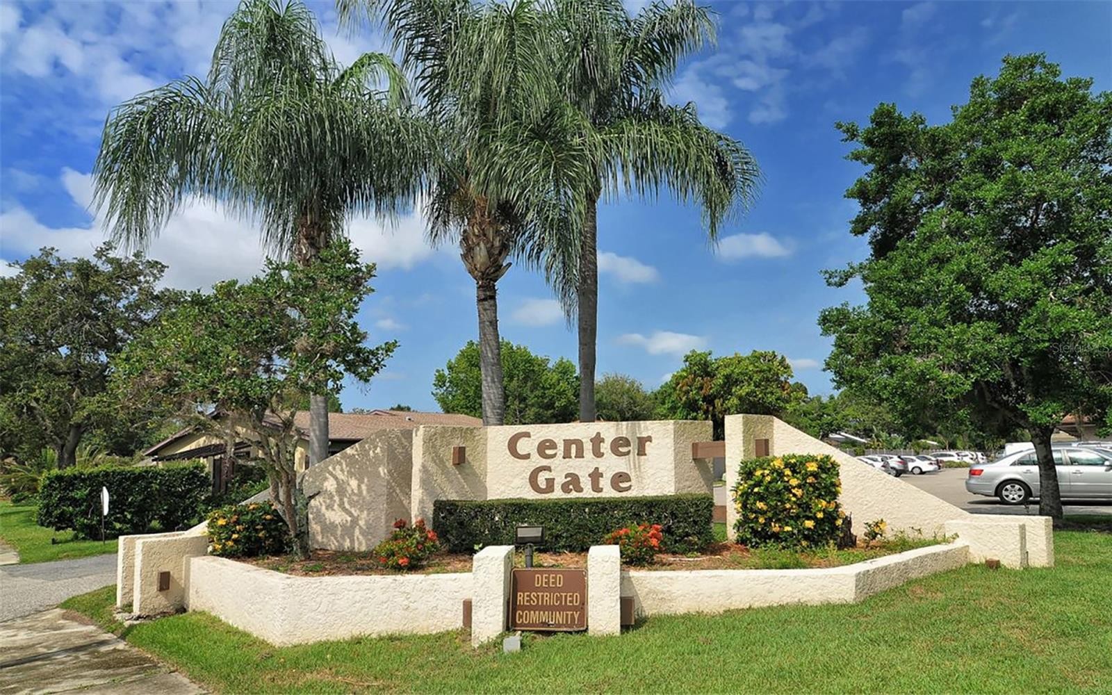 Pride of ownership is evident the minute you walk into this two bedroom, two bath attached villa with a new roof in 2023. Located in the sought after neighborhood of Center Gate, this 55+ community offers something special for the both the full-time resident as well as the snowbird. This unit has been lovingly cared for; freshly painted, new window treatments and comes furnished. There is tile in the main living areas and cozy carpet in the bedrooms. The kitchen has quartz counter tops and solid wood cabinets. The spacious lanai looks over the tranquil green belt. A generous two car oversized garage completes this unit. The Center Gate community is close to all that Sarasota has to offer, shopping, beaches, downtown, healthcare and the Interstate. Time to join this welcoming community and make this special unit your own slice of paradise in the sun.