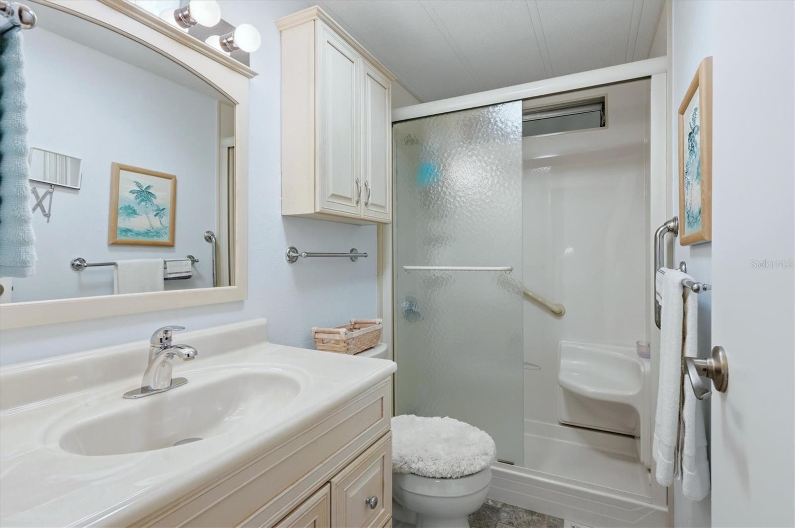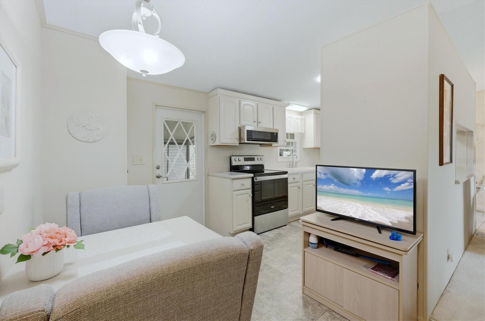TURNKEY FURNISHED & LAND OWNED! Welcome to this meticulously maintained home in the premier 55+ community of Tidevue Estates, where you own the land and enjoy remarkably low annual HOA fees (~$600/year). This property shines with a 2020 all-weather membrane roof and premium upgrades throughout. The heart of the home features a chef’s kitchen with KraftMaid cabinets, Corian countertops, and stainless steel appliances (Microwave 2023, Stove 2019) Relax in the stunning 200 sq. ft. front Florida Room, with southern exposure, portable AC,ceiling fan, premium tinted acrylic sliding windows, and power solar shades for ultimate comfort. Energy efficiency is key with premium dual-pane sliding windows, cellular shades, and ceiling fans in every room. The primary en-suite offers a walk-in shower and a spacious walk-in closet with an integrated laundry room featuring a full-size washer and dryer. Outdoor living is a breeze on the 12x13 screened side porch, which provides direct access to an oversized attached shed perfect for a workshop/craft/art room with a rear door and utility sink. Move right in and start enjoying the Florida sunshine! Pets are not permitted. Plenty of activities to keep you busy in this community. Take a water aerobics class in the solar-heated community pool or work on your tan. The community library has free WI-FI connection. Updated fitness center. Meet friends and make new ones for a game of indoor pickleball, bocce ball, or shuffleboard. Join the Golf League. Take a bike or golf cart ride to Veteran's Park to watch the wildlife and sunset. Ellenton Premium Outlet Mall, restaurants, and medical facilities are just minutes away. Easy access to I-75. Not to mention a short drive to our beautiful Gulf Beaches.
