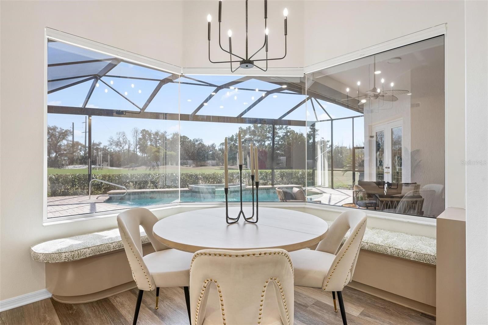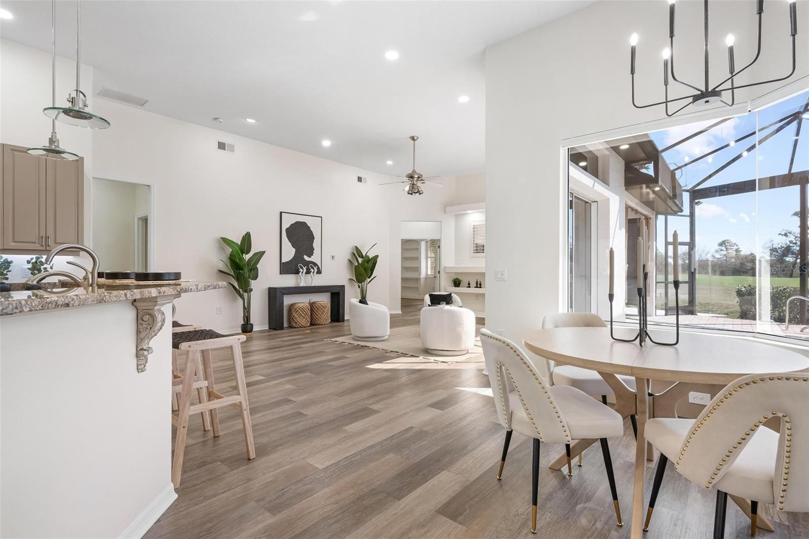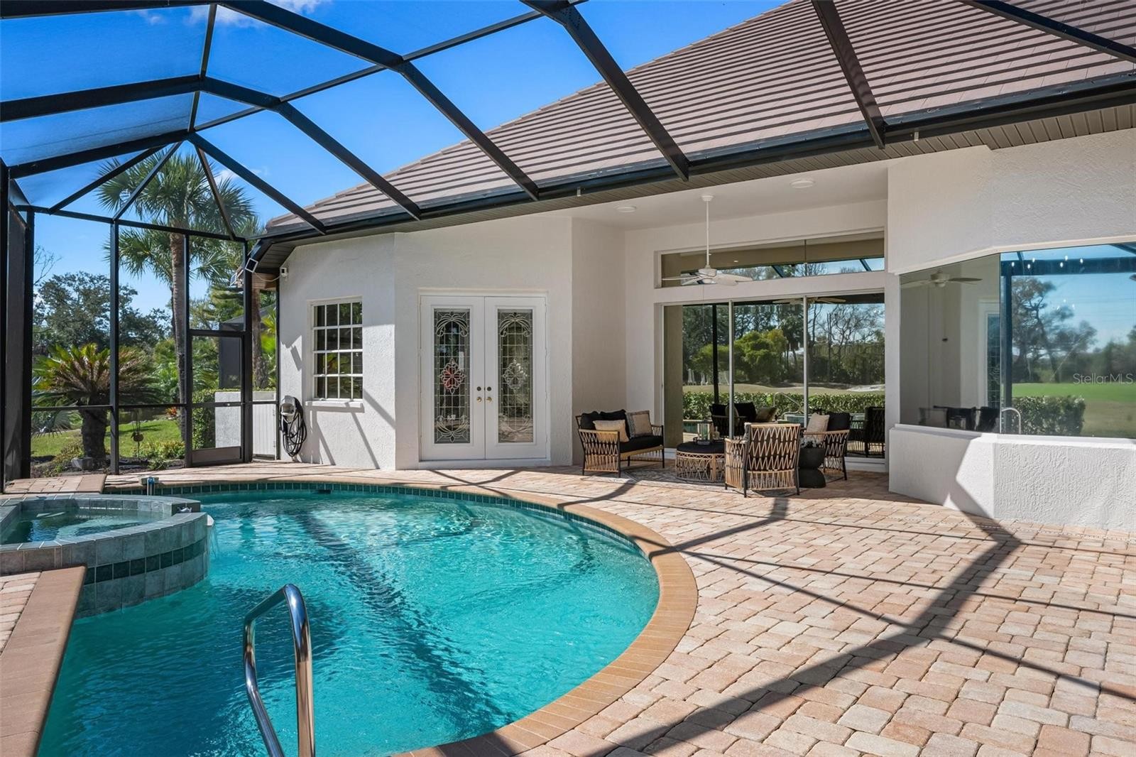 Tucked behind the gates of The Reserve at Plantation Golf & Country Club, this beautifully updated 4-bedroom, 3-bath, 3-car garage pool home offers the perfect blend of timeless elegance, modern comfort, and serene golf course living. Perfectly positioned along a tranquil canal and overlooking the 4th fairway, the setting is both peaceful and picturesque — where mornings begin with coffee on the lanai and evenings end with glowing sunsets over the course. Inside, the spacious floor plan offers formal living and dining areas, a welcoming family room, and generous bedroom accommodations filled with natural light — designed for both everyday comfort and elegant gatherings. Over the years, this home has been thoughtfully enhanced with quality upgrades throughout. The kitchen features granite countertops and a premium GE Profile appliance package, while the primary suite offers a spa-inspired retreat complete with a hydrotherapy walk-in tub, separate shower, and refined finishes. Plantation shutters and custom window treatments add warmth and polish to every room. The outdoor living space is truly exceptional. A saltwater pool, upgraded spa controls compatible with smart devices, and a custom-built wet bar with beverage refrigerator create a private resort-style setting ideal for entertaining. In 2025, a stunning panoramic pool cage with maritime aluminum hardware and a retractable lanai screen were installed, enhancing both views and functionality. Significant recent improvements continue with a new main HVAC system installed in 2025, a tankless hot water heater added in 2026, and a freshly repainted exterior completed in February 2026 — giving the home a crisp, updated presence from the moment you arrive. Additional features such as Leaf Filter gutters, Ring security cameras, and a professionally installed safe in the primary closet contribute to the home’s thoughtful design and long-term confidence. With major systems recently updated and outdoor living beautifully reimagined, this move-in ready residence presents a rare opportunity to enjoy established golf course living with modern confidence — just minutes from shopping, dining, Wellen Park, I-75, and the beaches of Venice Island.