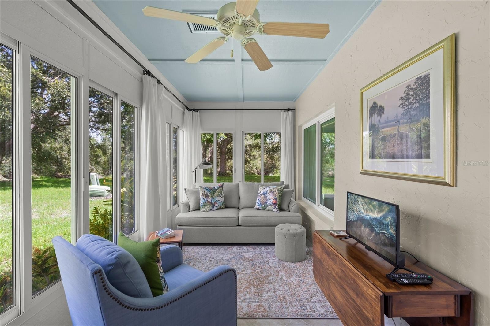 "Buy the Location, We'll Include the Villa!" Tucked away on a private cul-de-sac in the sought-after Knolls of Bent Tree, this beautifully updated and impeccably maintained 2-bedroom, 2-bath villa offers the best of peaceful Florida living. Enjoy serene views of an expansive greenbelt and gentle stream from your enclosed, air-conditioned lanai—your own private sanctuary frequented by cranes, deer, and other friendly wildlife. Inside, you’ll find a formal living and dining room, an updated eat-in kitchen, and two spacious bedrooms, including a primary suite with ensuite bath and skylight. The villa also features an attached 2-car garage and sits within a quiet, well-kept community of just 52 freestanding villas and townhomes. This is one property you truly must see to appreciate. Superb setting, thoughtful updates, and move-in ready comfort—all in one rare find. Home has PGT Impact Windows, house water lines repipe (2019), ceiling insulation upgraded to R36, new A/C (2025), new water heater (2025), exterior painted (2025), roof (2013) And MORE GREAT NEWS, the association has just reduced the quarterly fee by $150.00