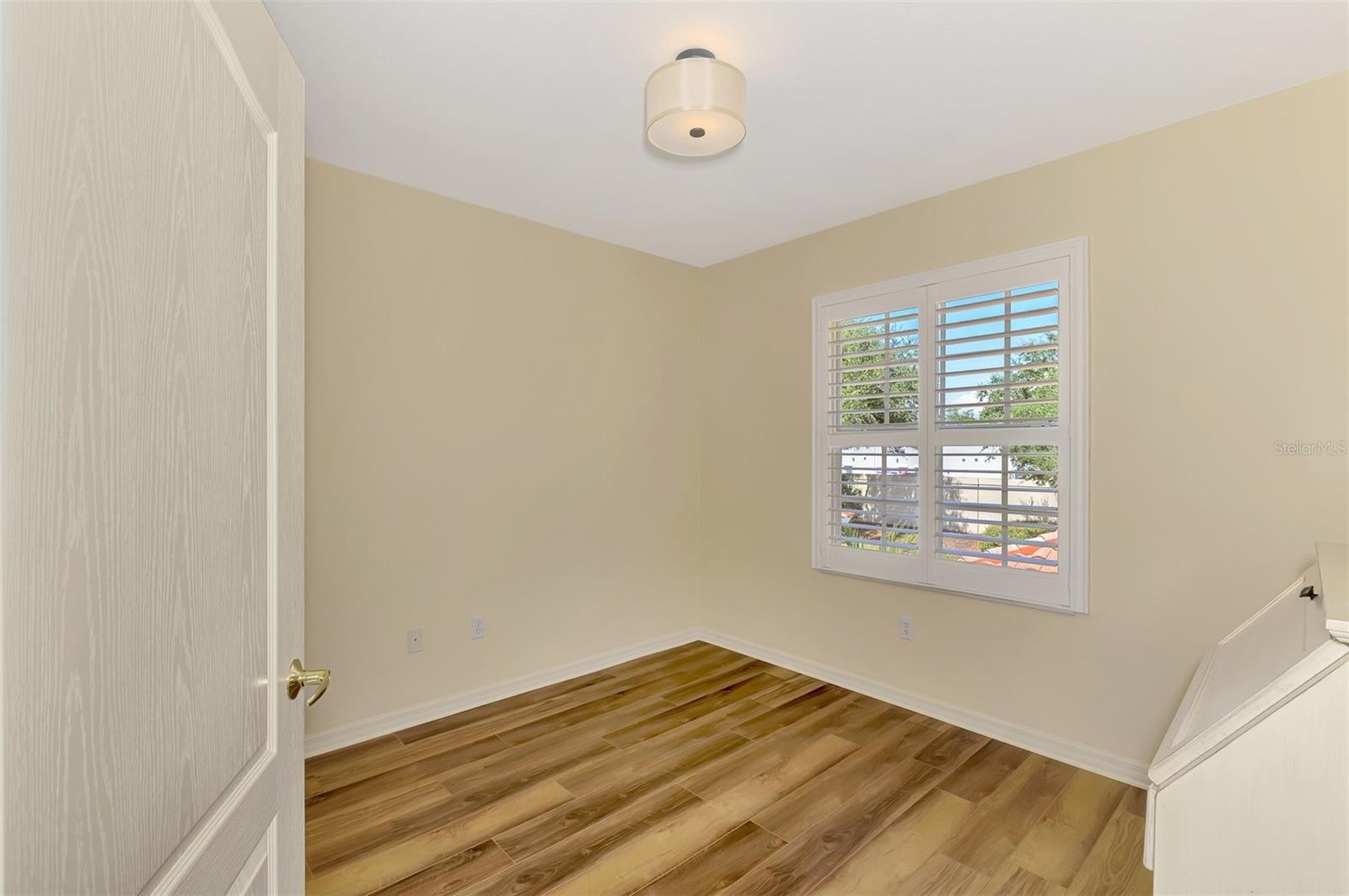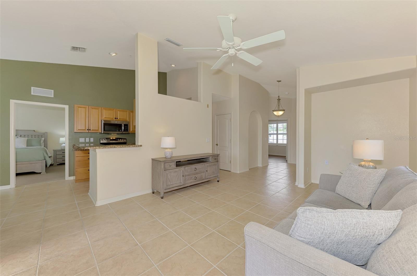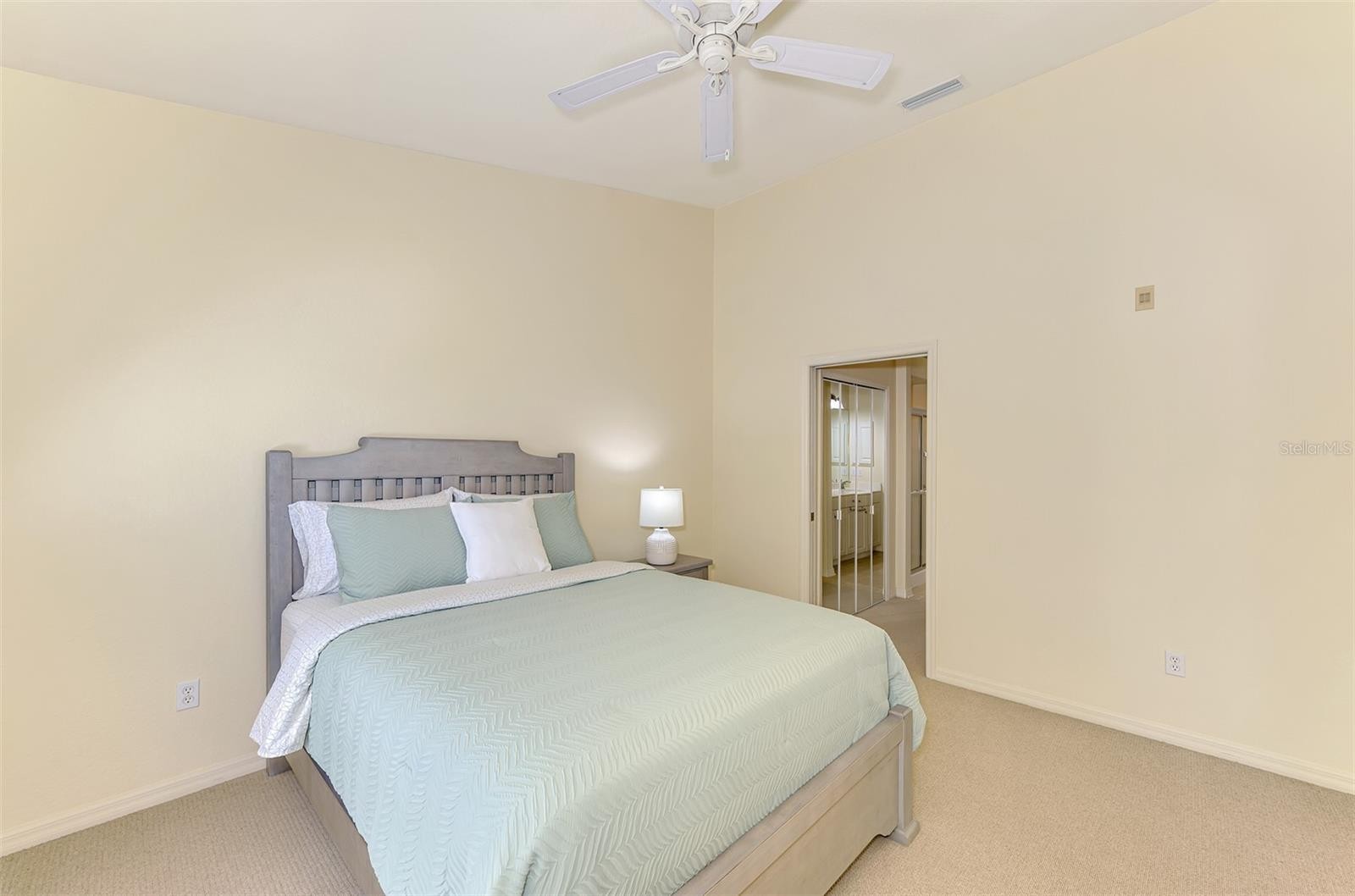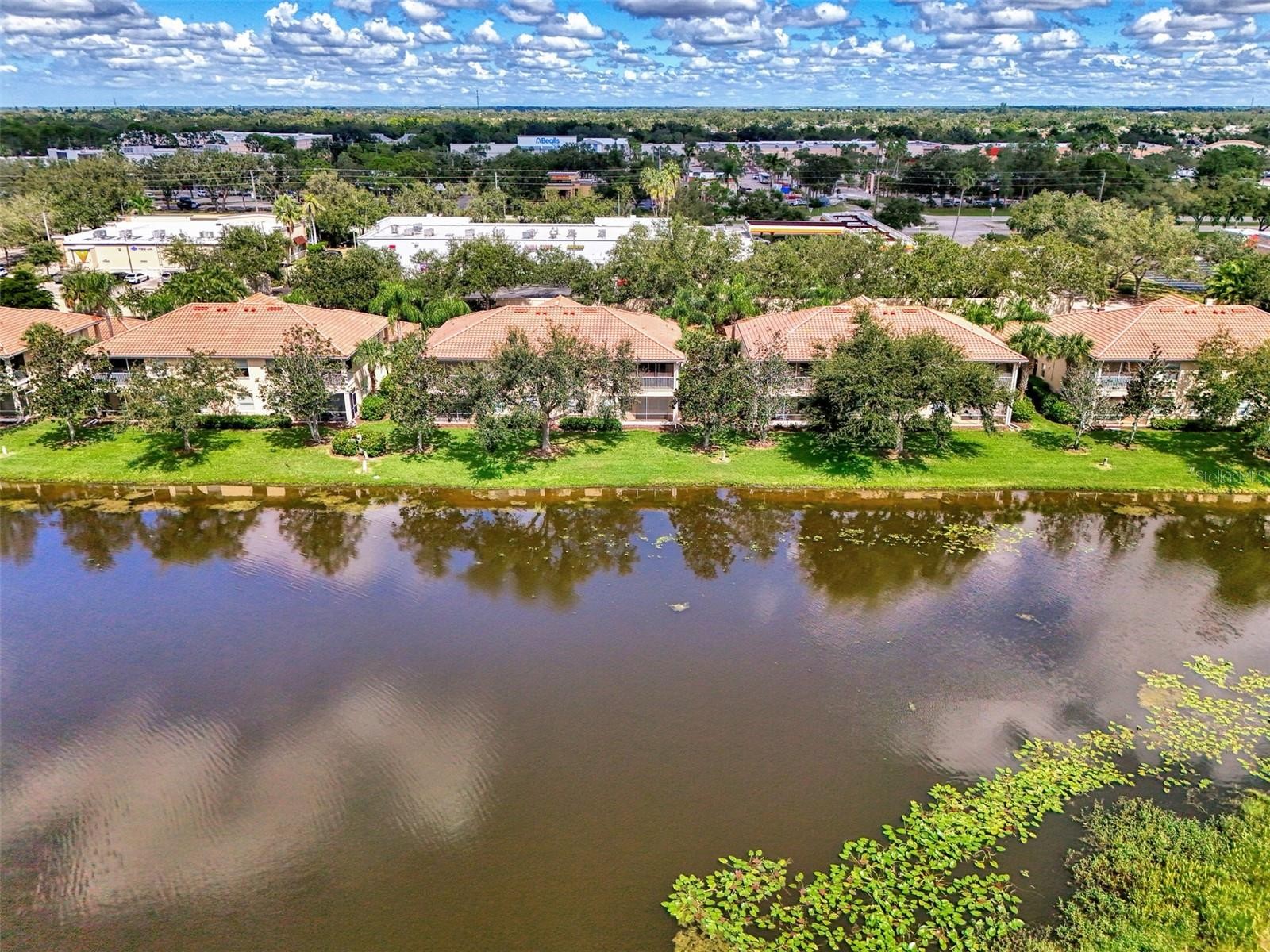 Now is your opportunity to own this Top Floor End Unit condo is Casa di Amici located in the highly sought after gated community of Venetia. This condo is flooded with tons of natural light and boasts 3 bedrooms, 2 bathrooms, a 1 car detached garage and a beautiful South facing water view. There is a large front porch with upgraded storm door that allows you to keep the front door open and enjoy the cross breeze through the unit throughout the day. Being sold partially furnished, this condo enjoys tile in all of the main living areas, plantation shutters on the windows throughout the unit, luxury vinyl plank flooring in the 2 guest bedrooms, and tons of storage. The unit features high ceilings and a kitchen with sparkling granite countertops and stainless steel appliances, including a Bosch dishwasher. The primary suite features two closets with built-in closet systems, a walk-in shower, dual sink vanity, and a separate water closet for privacy. The second bedroom is on the front of the unit and enjoys total privacy located in its own hallway, with a second full bathroom for convenience. The third bedroom is just off the foyer and can easily be used as a home office or den. There is an in-unit laundry room with utility sink and a Brand New Hot Water Heater that was just replaced in June 2025. The screened lanai has custom fit sunshades, and the view will bring you hours of peace and enjoyment as you overlook the largest pond in the community. With a prime location, you will find yourself close to area shopping, several local beaches, and just a short drive to both Historic downtown Venice and the new town center of Wellen Park! Casa di Amici at Venetia is a private gated community with clubhouse, pool, fitness center, tennis courts, and so much more! If you have been dreaming of owning a piece of Florida's paradise, this is the condo for you!