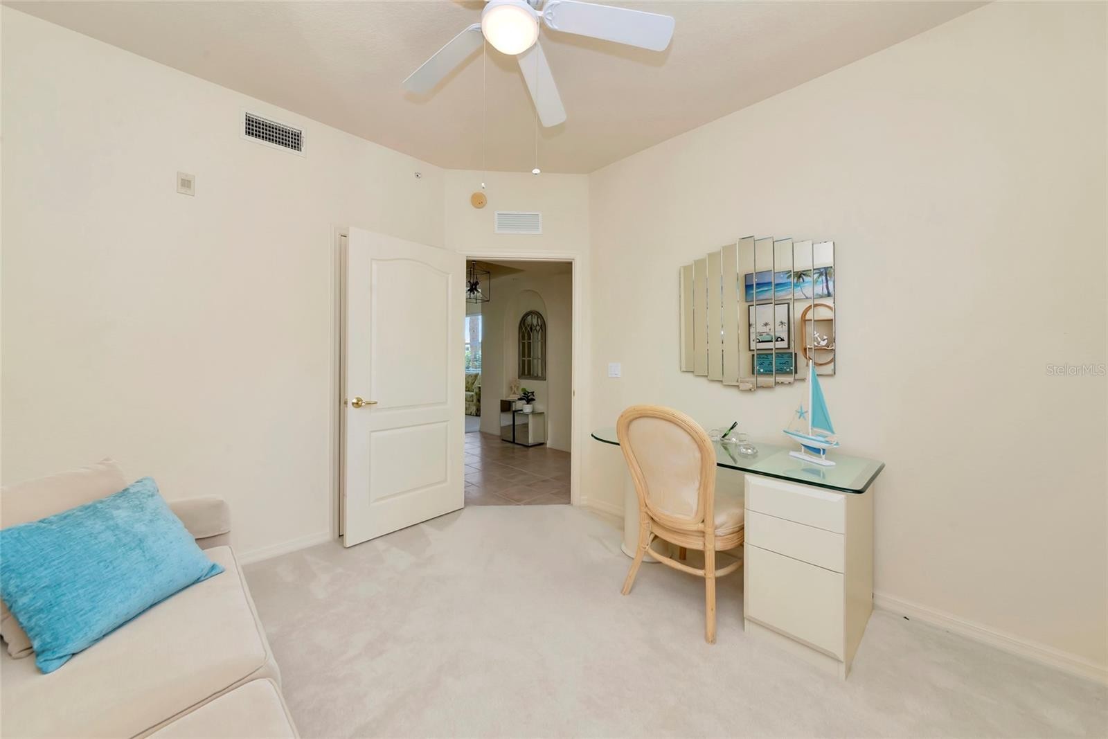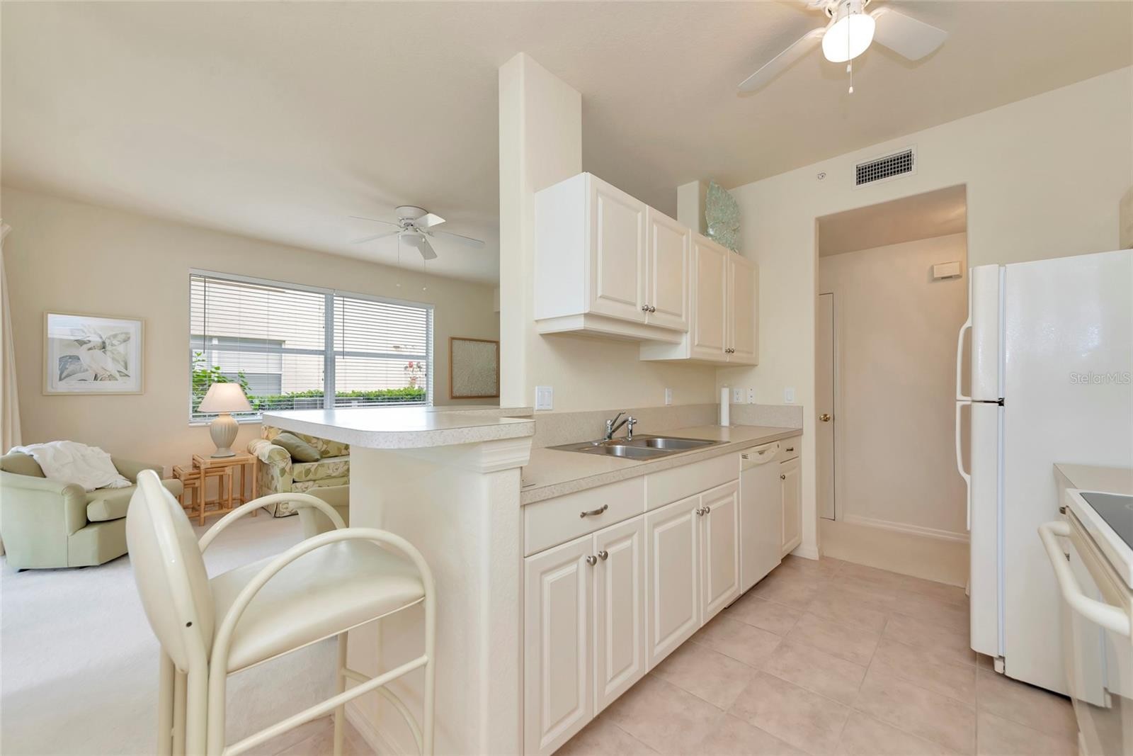 Welcome to this meticulously cared-for pristine, first-floor end-unit condo in the highly desired gated community of Casa Di Amici in Venetia. From the moment you arrive, you’ll be greeted by lush tropical landscaping and the convenience of your own one-car garage. Step inside to discover a thoughtfully designed home with easy-to-clean tile flooring, stylish light fixtures, and a bright, open layout all while overlooking the beautiful pond. The expansive living area features cozy carpeting, impressive built-ins, large windows, and sliding glass doors that frame serene pond views. Perfectly suited for both relaxation and entertaining, the living space flows seamlessly into the fully equipped kitchen, complete with ample cabinetry, matching appliances, and a breakfast bar ideal for morning coffee or casual dining. Just off the kitchen, the dining room offers an inviting spot for dinner parties or holiday gatherings. The secluded primary suite is a true retreat, tucked away from the main living areas. It offers multiple closets, including a massive walk-in, along with an en-suite bath featuring dual sinks and a luxurious walk-in shower. An additional bedroom plus a versatile bonus room provide plenty of options for overnight guests, a home office, or hobby space. A second full bathroom and a spacious laundry room ensure everyday convenience. Step outside to your picturesque screened lanai, a tranquil oasis overlooking the pond, where you can enjoy sunrises, bird watching, and the soothing sounds of Florida nature in complete privacy. South facing and drenched with sunlight. This home also comes with numerous updates, including a newer disposal, hot water heater, garage door opener and lighting, upgraded locks and hardware, improved shower and tub cartridges, window screens, chandeliers, and more, offering peace of mind for the new owners. Residents of Casa Di Amici enjoy an exceptional lifestyle with no CDD fees, favorable flood zone ratings, and resort-style amenities. Take advantage of the sparkling community pool and spa, a cabana pool, clubhouse with on-site management, fitness center, tennis, basketball, pickleball, and bocce courts, and beautifully maintained grounds with waterfall entrances. Centrally located near grocery stores, shopping, dining, and just a short drive to Florida’s world-famous sandy beaches, this condo is perfect for seasonal living, full-time residence, or as a prime rental investment. Don’t miss this opportunity to experience true Florida living. Schedule your private showing today!