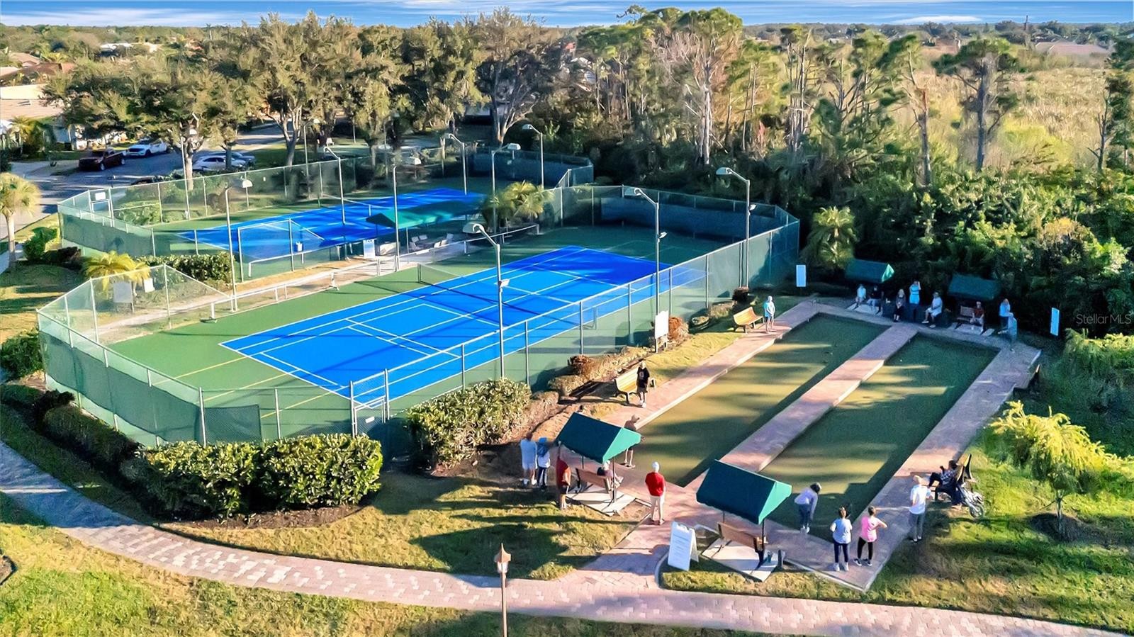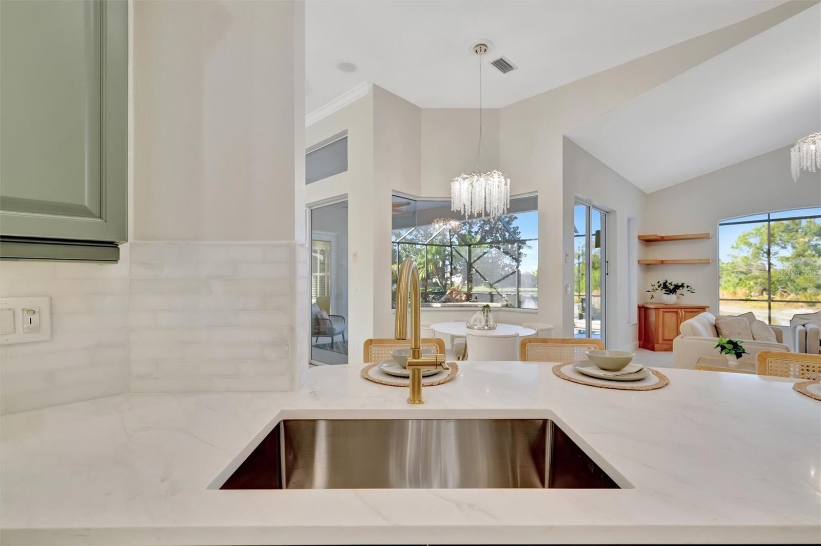 Lake and preserve view. Heated saltwater pool. 12- and 10-ft ceilings throughout. New roof (2024). Tile flooring throughout. Two A/C systems (2023, 2020). Spa-like primary bath with Jacuzzi tub. Kitchen: Built-in double oven. Induction cooktop. New dishwasher, washer, and dryer. Ample storage throughout. Screened no-see-um lanai with outdoor living space. Oversized garage with extra storage and workspace. Under 4.5 miles to the nearest beach. Resort-style gated community with pool, gym, clubhouse, tennis courts, and mature trees. Low HOA fees; no CDD. Nearly half, 300 acres, of Venetia community is protected preserve with abundant wildlife.