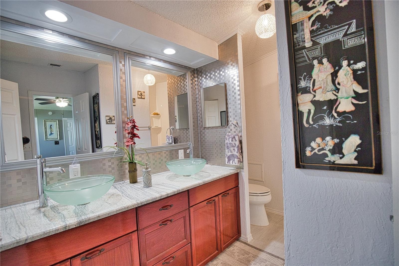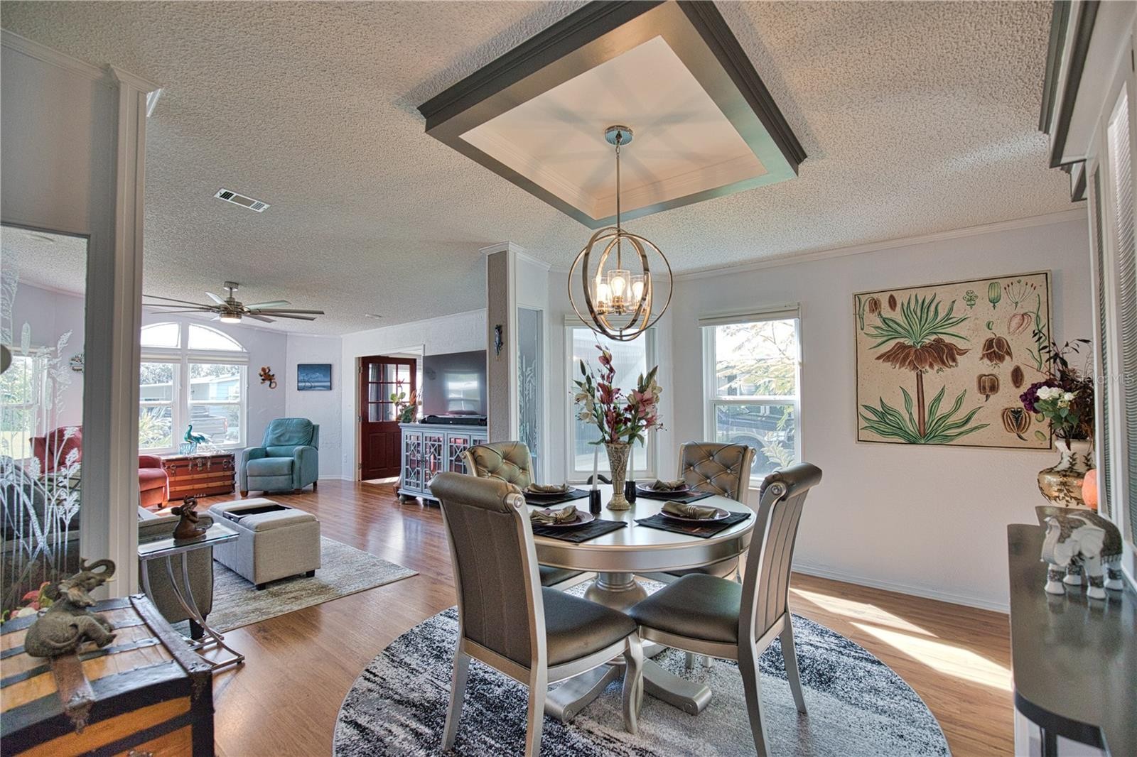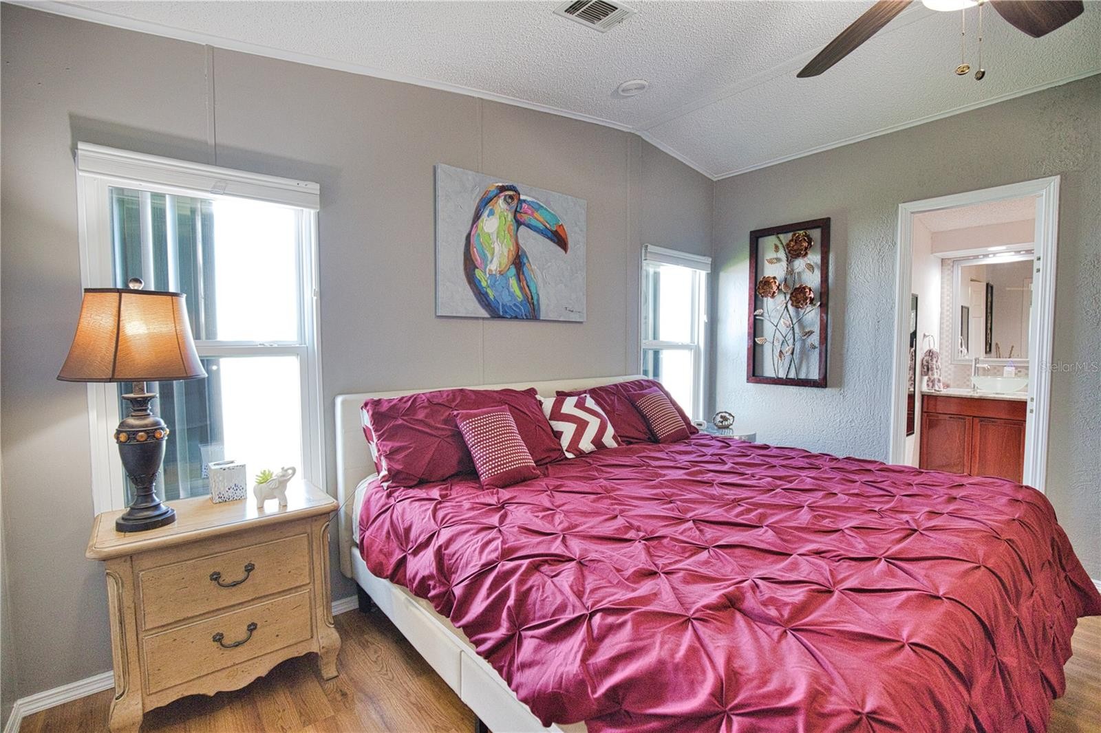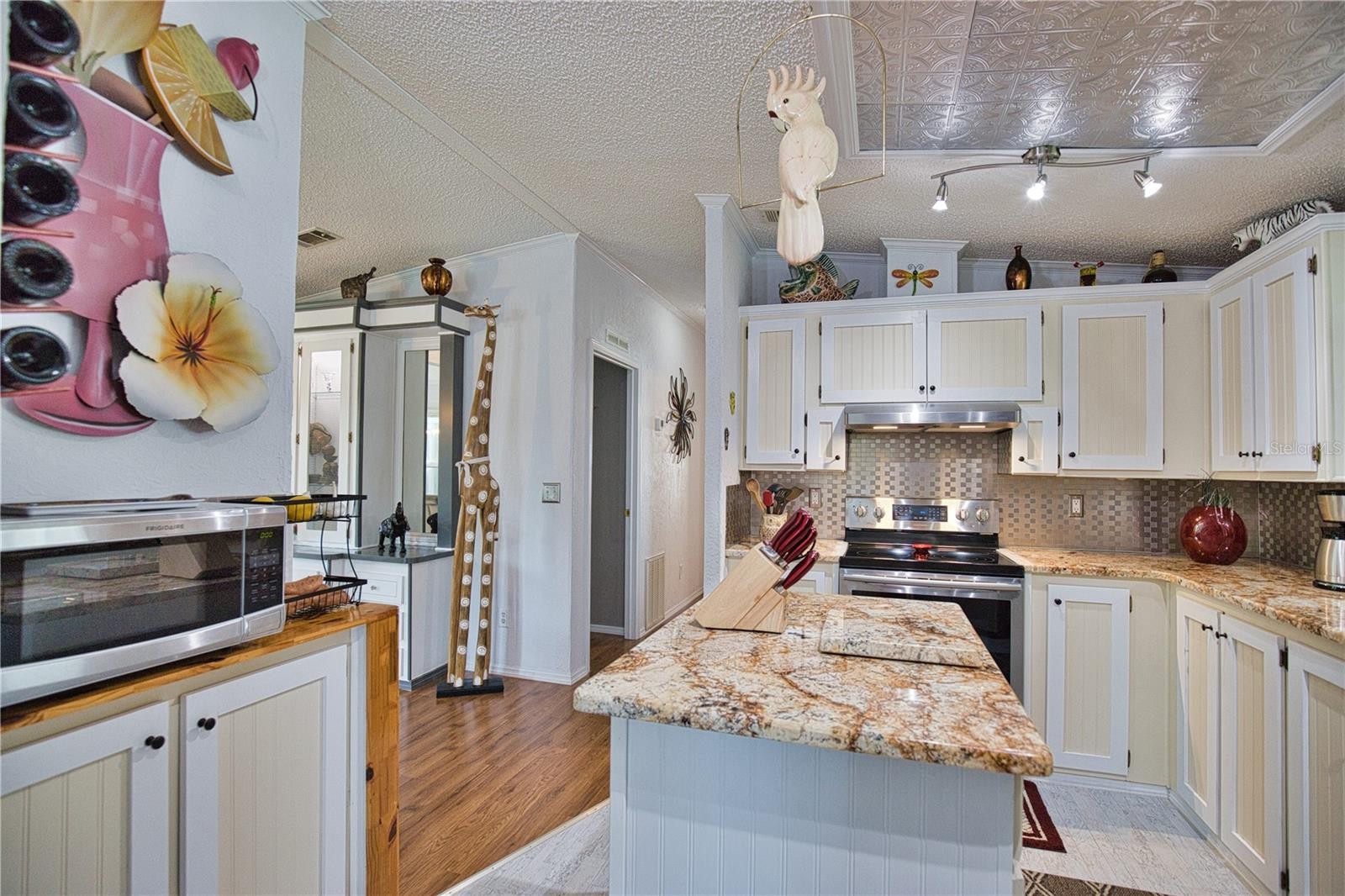 Your own piece of paradise awaits in La Casa, a vibrant 55+ community. This must-see home has been completely renovated and is loaded with surprises and upgrades! The kitchen has granite countertops including on the island, a sizable pantry, newer appliances and disposal in 2018. Enjoy beautiful sunrises and your coffee in the adjacent morning room featuring a custom built-in desk and cabinets. The home features crown molding and luxury vinyl in the kitchen and bathrooms and laminate wood throughout. The primary and guest rooms are substantial in size with completely updated bathrooms featuring granite countertops and vessel sinks. You’ll love the convenience of having the washer/dryer located inside the home. The home also provides lots of storage with a linen closet in the hallway and an oversized storage closet in the primary bathroom. The carport, with double doors for golf cart storage, leads you to a lovely screened lanai with outdoor furniture and a mounted T.V. Outdoors also provides even more storage with an oversized 12' X 20' shed. Roof, windows, vapor barrier in 2018, A/C in 2019, water heater in 2022, the home also features hurricane shutters. Additionally included is your very own golf cart! Don’t miss out on seeing this one-of-a-kind home! La Casa boasts 974 home sites nestled among a variety of native trees with spacious common grounds surrounding our eight lakes. La Casa offers the ultimate lifestyle on Florida’s Gulf Coast and is located between Sarasota and Fort Myers. It is convenient for shopping, sightseeing, golfing, fishing, and boating, as well as all the culture and elegance for which the Southwest Florida area is noted. La Casa is a friendly, family community. You will be away from the hustle and bustle except when you want to be part of it. Come for a visit to this self-contained oasis and see for yourself why La Casa is the ultimate destination for both snowbirds and year-round residents!