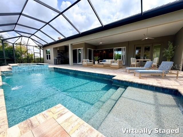 Elegant Estate Home located behind the gates of The Reserve at The Plantation Golf and Country Club now available. Stunning Curb appeal with a Paver Circular Driveway and Pineapple Palm Tree as well as luscious tropical landscaping. As you enter through the Double Lead Glass Etched Entry Doors you will be immediately impressed with Designer Touches everywhere you look. And almost all of these beautiful Furnishings remain with the home. Situated on a lake and golf course front lot; this 3 Bedroom plus a Den with 3 and 1/2 Baths features include new Plank flooring in the huge Family Room overlooking the Pool and Golf course; new SS Appliances; Custom Window treatments and Plantation Shutters throughout as well as a Poolside Kitchen with a grill perfect for entertaining. Beautiful Tray Ceilings and Crown Molding with Decorative Fans and Light Fixtures, 18” Porcelain Tile on the diagonal, oversized Garage where 2 cars plus a Golf Cart fit easily and an Additional Workshop and Storage Room are just a few more features of this Gorgeous Home. Membership is available at The Plantation Golf and Country Club which boasts 2 Championship Golf Courses, Tennis, Pickleball, Fitness and a Full Service Restaurant. Just a short drive to 5 Beaches, Historic Downtown Venice Island and the Atlanta Braves Spring Training Stadium. Put this Impressive Home at the TOP of your List today!