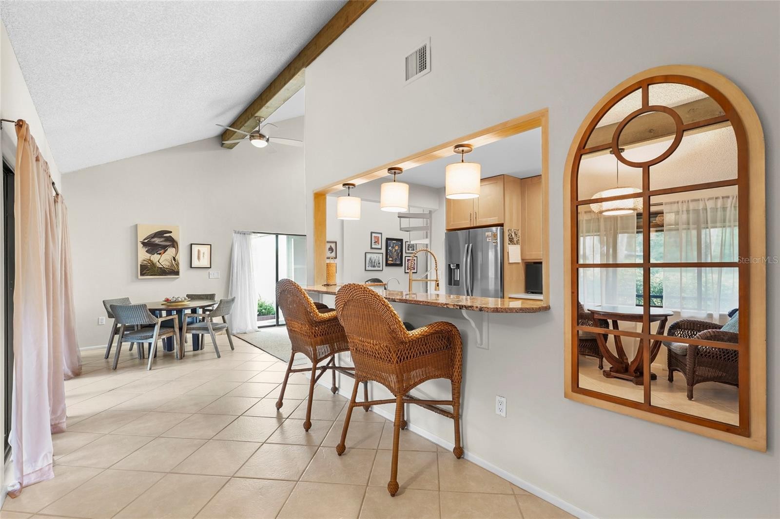 UPGRADED Villa in the HEART of Sarasota! Discover a villa that lives like a single-family home, located in the desirable Woodman's Chart enclave within The Meadows. Maintenance Free, NEW Roof 2024, Newer HVAC 2021, New Electrical Panel, New Kitchen Appliances and Washer/Dryer, updated bathrooms and light fixtures and Freshly Painted Interior and Exterior! This open and airy living space boasts a beautiful wood accent wall as you enter the home, tile flooring throughout, a fabulous galley style kitchen with a large island featuring Quartz countertops, stainless steel appliances and a beautiful green tile backsplash bringing the beautiful Florida landscape inside! The space flows freely from the large living room with built-ins to the dining area, kitchen and family room - all with fabulous views of the lush landscape surrounding the home. Move right into this home and begin enjoying ample space with 1675 sf, 2 bedrooms, 2 baths and a spiral staircase leading to a unique and spacious loft with bamboo flooring perfect for an office, den or additional sleeping quarters! Not looking for a cookie cutter space, this home offers soaring vaulted ceilings, abundant skylights, plenty of natural light, landscaped atrium and four distinct outdoor living areas providing you with that true Florida charm! A split floor plan gives privacy to each bedroom. The primary bedroom features an ensuite bathroom, sliding glass doors to the atrium and high ceilings! Offering an exceptional blend of light, space, privacy, and comfort, this home has been meticulously maintained, loved and cared for. With NO Shared walls, this villa truly lives like a single family home and is uniquely situated in the community to provide privacy, ambiance and prime pool access. The oversized 2 Car Garage provides ample space for your vehicles, golf carts or motorcycle while still encompassing a workbench area while the shelving above provides great storage space. Enjoy coffee or a cocktail on your large enclosed patio overlooking mature, tropical trees & foliage, while a lovely heated POOL awaits, just steps from your lanai. Living here merges resort-style amenities with Florida’s outdoor lifestyle, homeowners can enjoy 14 miles of walking and biking trails winding through lush landscapes and lakes, over 85 lakes and waterways, 3 golf courses, 15 tennis courts, pickleball, dog parks, a community pool & spa and the Meadows Country Club! HOA includes 24 Hour Security, pool, tennis courts, irrigation and so much more! The location truly cannot be beat as you are minutes from premiere shopping and dining at UTC Mall and the University Ave Corridor, a short drive to Lakewood Ranch, Waterside, SRQ Airport and of course some of the most stunning white sand beaches that make this place a true paradise!