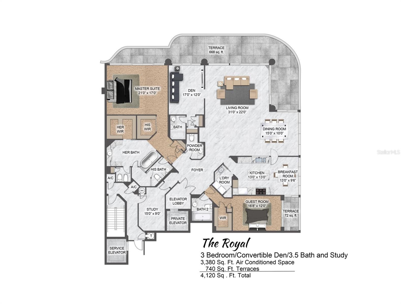 Perched on the fourth floor of Building II at L’Ambiance on Longboat Key, this corner residence offers breathtaking Gulf and sunset views, the epitome of luxurious coastal living. Spanning 3,380 square feet, this three-bedroom plus study retreat showcases panoramic vistas that stretch from the pristine beachfront to Sarasota Bay. Floor-to-ceiling glass sliders, equipped with motorized shutters, connect multiple rooms to the wraparound terrace and east-facing balcony, creating seamless indoor-outdoor flow. Offered furnished and ready to enjoy, this residence provides an inviting canvas to personalize to your tastes. A private resident-only elevator leads directly from two under-building parking spaces to the home’s foyer entry. Double doors open to an expansive layout adorned with marble flooring. The open-concept living and dining area features custom built-ins and flows effortlessly into the eat-in kitchen, complete with an island, pantry, and breakfast nook. The primary suite, positioned in a prime southwest location, is designed to capture the best natural light throughout the day. This spacious retreat spans 21 feet and includes dual walk-in closets, a marble bathroom with a layout designed for privacy, and its own access to the Gulf-front terrace. Two guest suites are thoughtfully positioned on opposite ends of the residence for optimal seclusion. The west-facing suite showcases Gulf views, while the east-facing suite includes its own bayfront terrace. A study, currently used as additional sleeping quarters (without a closet), completes the layout. L’Ambiance is a prestigious community nestled behind the gates of the exclusive Longboat Key Club, offering an exceptional array of resort-inspired amenities. Residents enjoy 24-hour manned gated entry, concierge services, on-site management, and secure building access. Additional conveniences include under-building parking, private storage, and wine lockers for each resident. Amenities are designed for relaxation and recreation, including social rooms, state-of-the-art fitness center, Har-Tru tennis courts, and a pavered deck with an Olympic-sized swimming pool and spa. A private boardwalk leads directly to the pristine Gulf beaches, offering an unparalleled lifestyle on one of Florida’s most sought-after coastlines. This residence combines elegance, comfort, and the ultimate in beachfront luxury living.