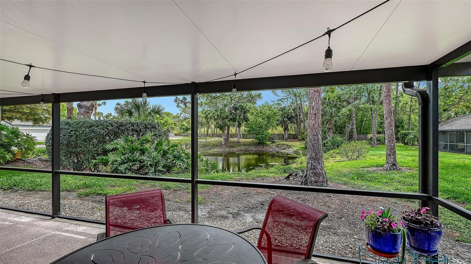 Move-in ready! Updated maintenance-free villa with serene pond views in The Meadows, one of Sarasota’s sought-after and ideally located neighborhoods. A picturesque canopied street welcomes you to this light-filled end-unit with no common walls. Inside, a charming interior courtyard bathes the home in soft, indirect light, creating a bright and cheerful ambiance. You’ll love the open floor plan with cathedral ceilings and transom windows, stone-look tile flooring, and a beautifully updated kitchen with solid wood cabinetry, Santa Cecilia granite countertops and stainless steel appliances. Plus, there are no popcorn ceilings. The oversized screened lanai overlooks a tranquil pond, ideal for relaxing or entertaining. Unique to The Meadows, Woodmans Chart residents enjoy a private tennis court and two private pools, all less than a mile from the community’s amenities. On 1,600 park-like acres, The Meadows is a resort-style community just 15 minutes from downtown. Enjoy 14 miles of scenic trails and, for a low fee, access to a fitness center, Junior Olympic pool, pickleball, golf and Har-Tru tennis. You’ll be minutes to award-winning beaches, vibrant arts and culture, Whole Foods, Trader Joe’s, Nathan Benderson Park, Mote SEA Aquarium, the future Sarasota Orchestra and University Town Center, a favorite shopping and dining destination. With 2025 exterior paint, 2024 shingle roof, 2022 air-conditioning system, 2022 water heater, 2020 screened-in lanai, oversized two-car garage, block construction, above flood plain in flood zone X.