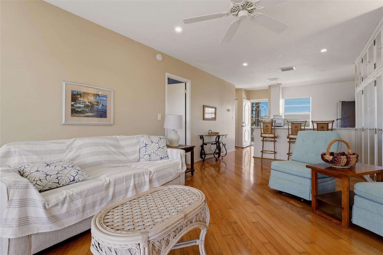 Welcome to coastal living on coveted Longboat Key. Priced to move, this beautifully maintained 1-bedroom residence at 4400 Exeter Dr Unit 305J offers an exceptional opportunity to own in one of the island’s most desirable waterfront communities. Inside, you’ll find a bright open floor plan with warm wood flooring, an updated kitchen featuring stone countertops, stainless appliances, breakfast bar seating, and abundant custom storage. The spacious living area flows seamlessly to the enclosed lanai where tranquil water and tropical garden views create the perfect setting for morning coffee or evening relaxation. The generous primary suite includes large windows, great natural light, and access to a beautifully updated bath with dual vanities and modern finishes. Enjoy resort-style amenities including waterfront grounds, boat docks, pool, lush landscaping, and close proximity to deeded beach access, golf, tennis, dining, and shopping. Whether you’re seeking a seasonal retreat, investment property, or year-round island lifestyle, this value-priced Longboat Key residence is ready for immediate enjoyment. Opportunities at this price on Longboat Key do not last. Schedule your private showing today.