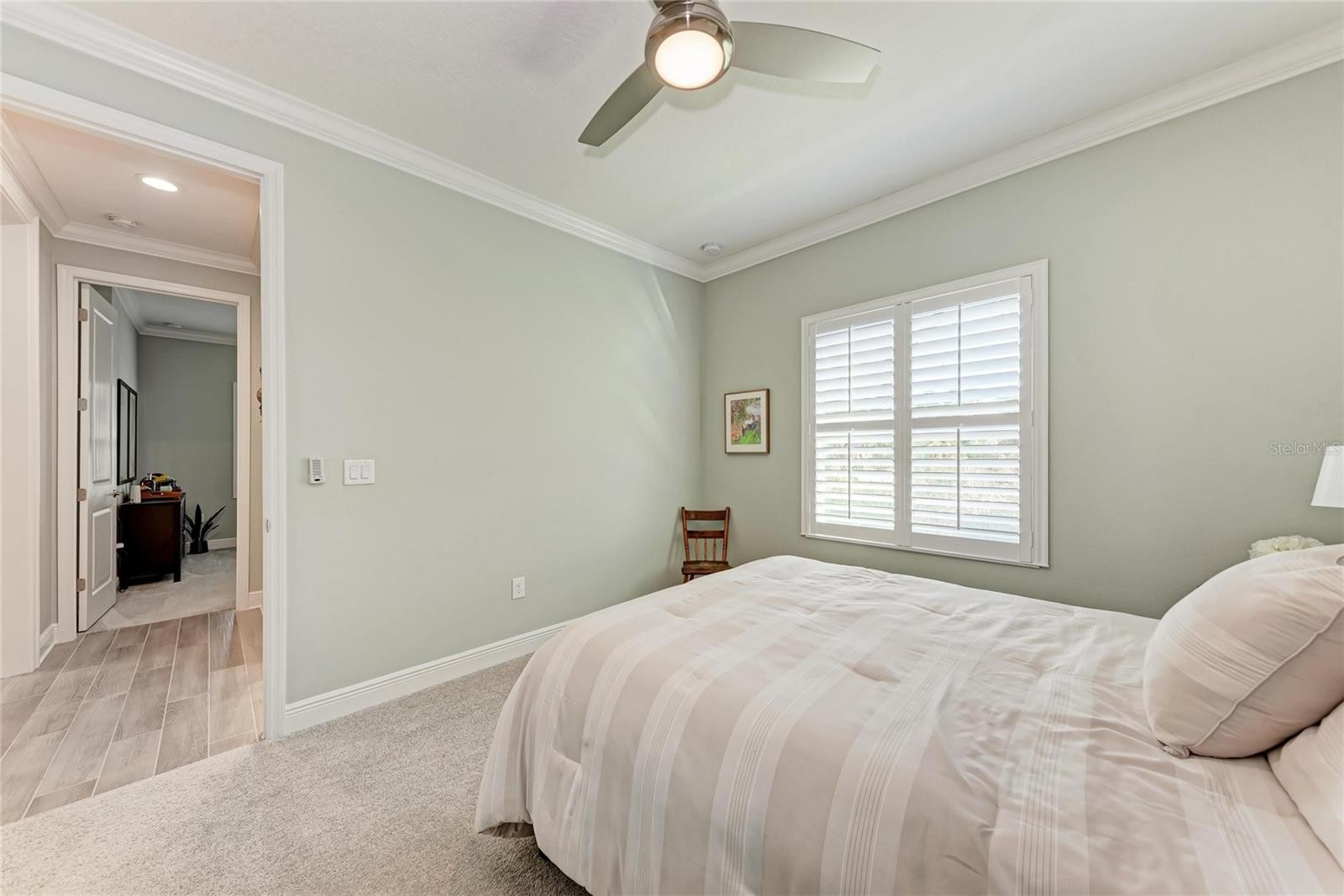 Welcome to this elegantly upgraded lakeview residence located at 4666 Rustling Pine Terrace in Parrish, offering an exceptional blend of refined finishes, flexible living spaces, and serene surroundings. Upon entry, you are welcomed by a beautiful foyer and gallery style entry, creating an immediate sense of sophistication and space. This expansive 5 bedroom, 4 bathroom home is thoughtfully designed to accommodate a variety of lifestyles. The floor plan offers the flexibility for a mother in law or guest suite, ideal for multigenerational living or extended stays. Upstairs, a bonus suite with additional rooms provides the perfect space for a media room, home office, fitness area, or private retreat. The heart of the home opens seamlessly to an extended lanai, elevating indoor-outdoor living. A well-appointed outdoor kitchen with sink and grill overlooks the tranquil lake, creating a private and picturesque setting for entertaining or relaxing. The fully fenced backyard enhances privacy while embracing the scenic water views. Inside, the home features upgraded crown molding throughout the interior, with select areas showcasing casing molding on door frames, adding tasteful architectural detail. Ceiling fans are installed in all bedrooms, which feature plush carpeting. The primary suite serves as a true retreat, complete with his-and-hers walk-in closets. All appliances are approximately three years old, offering modern convenience and reliability. Designed with comfort and peace of mind in mind, the home includes impact-resistant second story windows and hurricane shutters for all main level windows. Situated within a well maintained, HOA governed community, residents enjoy a beautifully kept neighborhood atmosphere and access to community amenities that support an active and connected lifestyle. Conveniently located near shopping, dining, schools, and everyday conveniences, with easy access to major roadways, this home offers the perfect balance of tranquility and accessibility. This residence presents a rare opportunity to own a spacious, luxury home with flexible living options and stunning lake views, ideal for discerning buyers seeking elegance, comfort, and the best of Florida living.