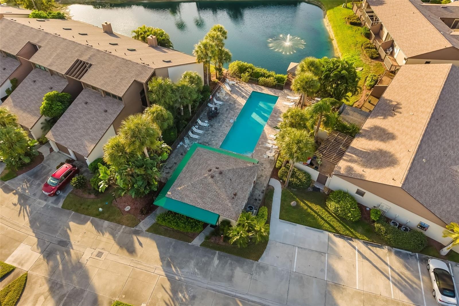 Welcome to easy Florida living at 4460 Winston Lane N., where indoor comfort and outdoor enjoyment come together. This inviting 2-bedroom, 2-bath residence offers a tranquil lake view and effortless access to the community pool, creating a relaxed, resort-style feel right at home. Designed for everyday living and entertaining, the home features multiple outdoor spaces, including a charming front courtyard and a rear screened porch overlooking the serene lake—perfect for morning coffee or evening unwinding. Inside, vaulted ceilings add volume, making the space feel open and airy. Sliding doors from the kitchen to the courtyard invite seamless indoor-outdoor dining, while built-in cabinetry in the dining area provides generous storage for dishes and serving pieces, ideal for hosting family and friends. A major improvement has already been completed with a new roof replaced in 2023, offering peace of mind for the next owner. The residence is being offered as a true interior renovation opportunity, allowing the next owner to update, add value, and create a customized interior within an established community while enjoying the home’s solid layout and exceptional outdoor living areas. Conveniently located near shopping, dining, and area parks, with a short drive to downtown Sarasota or University Park, and easy access to the airport. Pet-friendly community allowing up to two pets. A wonderful opportunity to shape a home to your personal vision in a setting that offers both lifestyle and long-term potential.