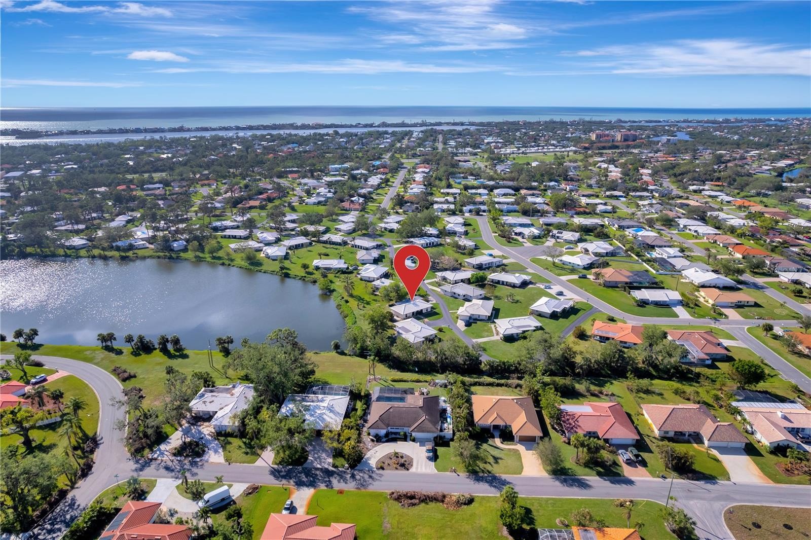 Long lake view from this free standing villa. HOA is $ 490.00 = maintenance- free which includes the Roof, outside building painting and maintenance, and Lawn care. Private lake fed, irrigation system. Comes with an additional parking space right outside the front door. This villa is being sold mostly furnished, and is ready to rent. Not a 55+ community. County water and sewer. X Flood zone = no flood insurance required. Whole house RO water treatment system. Less than 4 miles to Nokomis beach. 13 miles to Sarasota , 5 miles to Venice.
