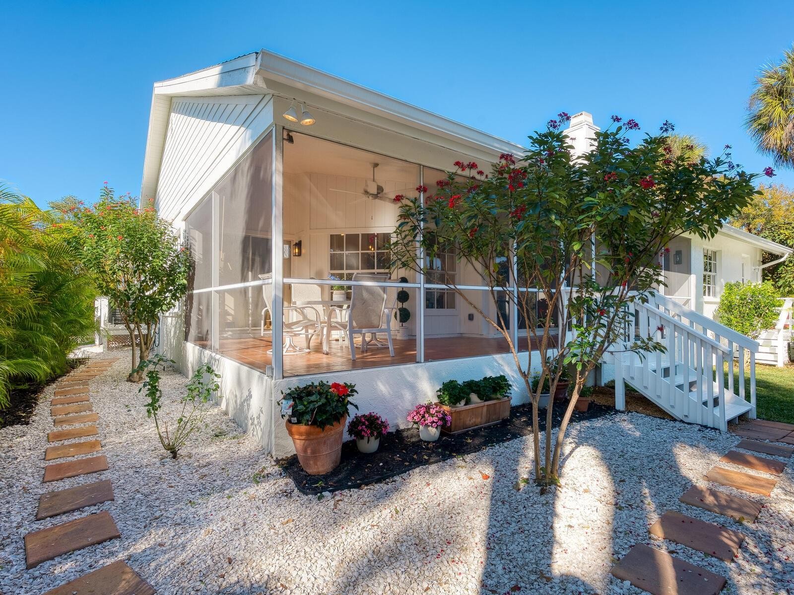 Over $140,000 in updates in a prime Sarasota location! A picturesque, canopied street and quiet cul-de-sac set the stage for this beautifully updated home. Inside, you will love the bright and airy interior with volume ceilings, walls of disappearing sliders, two skylights and hardwood flooring. The stunning kitchen features solid wood cabinetry, stainless steel appliances, brushed bronze hardware, and striking honed black quartz countertops and backsplash. Peace of mind comes with extensive improvements, including a new roof, new air-conditioning system, new water heater, new lawn irrigation, a new hurricane-rated garage door and more. Ideal southeastern exposure fills the home with natural light, while the inviting wrap-around screened porch offers a place to relax and enjoy Florida’s indoor-outdoor lifestyle. All just 600 feet to the amenities which include two community pools and hot tubs, gym, a kids’ park, two lighted tennis courts, basketball court and community room. A hidden gem, The Lakes is known for its mature trees, tranquil setting and scenic recreational trails and is ideally 15 minutes from downtown and UTC Mall, 20 minutes to world-renowned beaches and the airport, plus quick access to the interstate. Enjoy an exceptional lifestyle in a prime Sarasota location.
