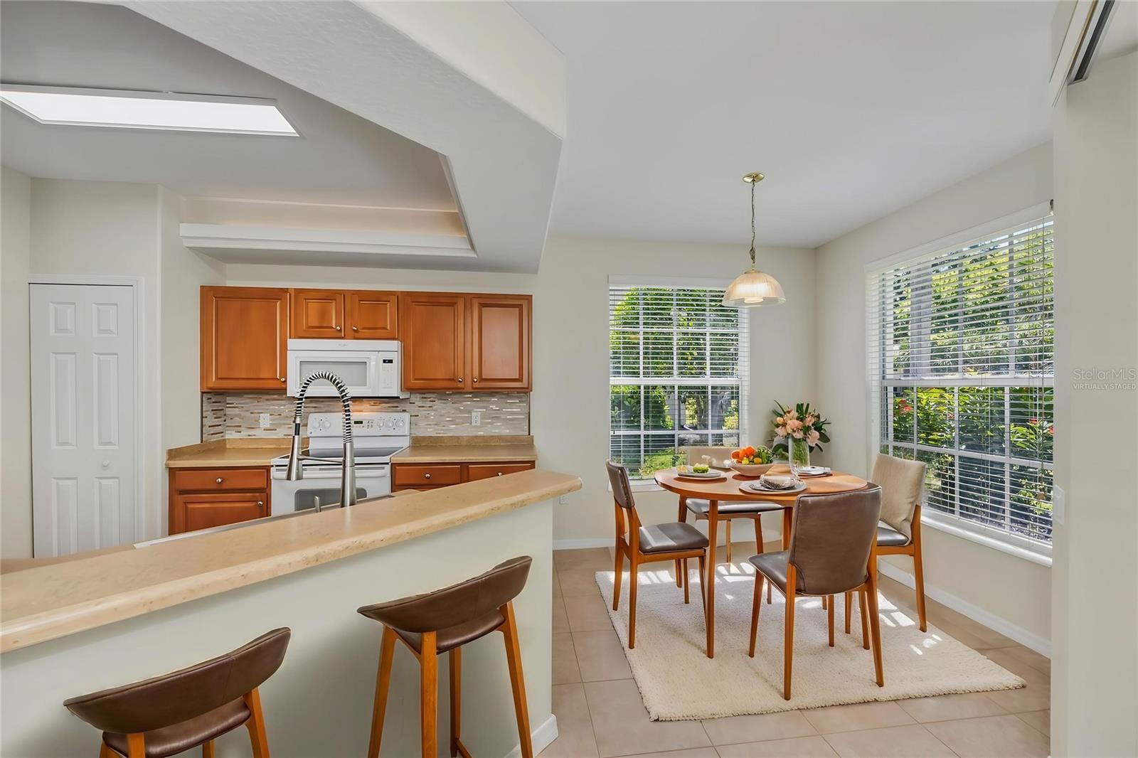 One or more photo(s) has been virtually staged. Beautifully maintained 2-bedroom, 2-bath condominium with a versatile den, formal dining room, and convenient interior laundry room. The bright kitchen features an eat-in space overlooking a serene wooded area and opens seamlessly to a spacious living room—perfect for entertaining. Recent updates include a stainless steel farmhouse sink, new refrigerator, and solid wood cabinetry. The primary suite offers dual walk-in closets and a private en suite bathroom complete with a separate soaking tub, walk-in shower, and enclosed toilet room. Additional highlights include a new A/C system installed in 2024 and hurricane shutters for added peace of mind. Ideally located just miles from Siesta Key’s world-renowned beaches, and close to shopping, dining, and entertainment options. Don’t miss this opportunity—schedule your private showing today and experience the best of Florida living!