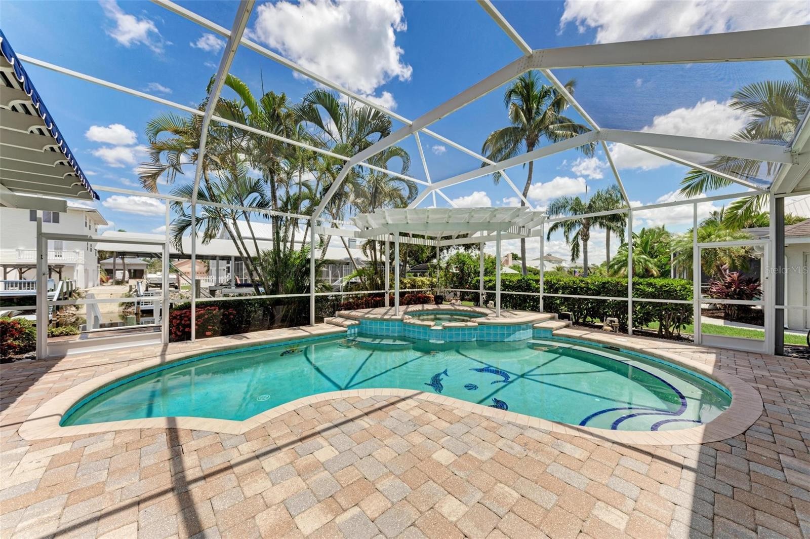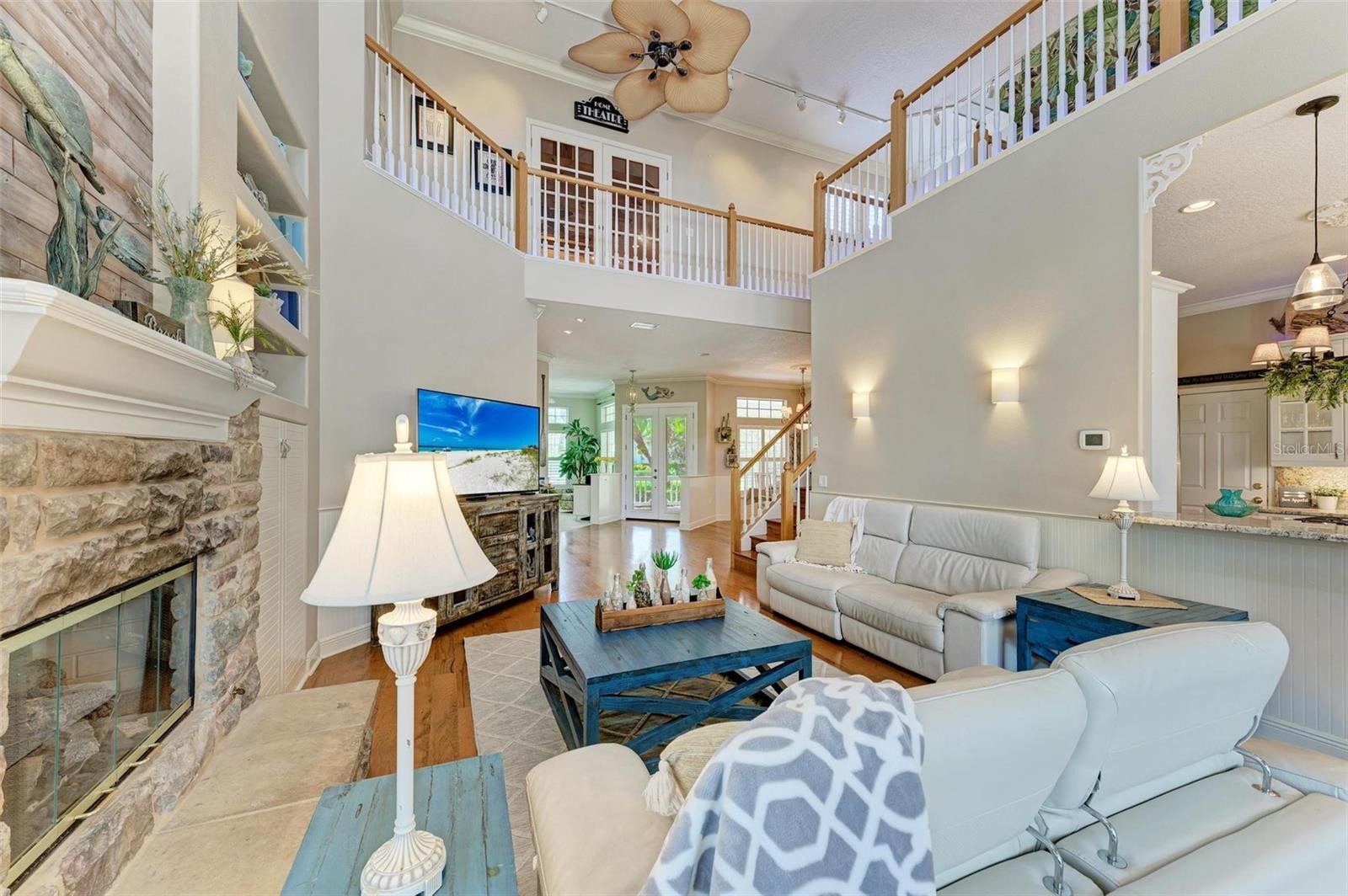 STUNNING 2 STORY HOME LOCATED ON A DIRECT ACCESS SALTWATER CANAL, OFFERING OVER 4200 SQ FT OF SPACIOUS LIVING. WITH 3 BEDROOMS, 3 1/2 BATHS PLUS OFFICE AND A LARGE THEATRE ROOM, THIS HOME IS DESIGNED FOR BOTH LUXURY AND FUNCTIONALITY. WATER ENTHUSIASTS WILL APPRECIATE THE 16000LB COVERED BOAT LIFT, AND DOCK THAT SITS ON A SALTWATER CANAL AND HAS EASY ACCESS TO THE MANATEE RIVER/GULF OF MEXICO. THE PAVER LANAI BOASTS A LARGE SCREENED OUTDOOR LIVING SPACE, COMPLETE WITH A SALT-WATER-HEATED POOL AND SPA ADORNED WITH LIGHTS. THE OUTDOOR KITCHEN AND 2ND WET BAR AREA ARE EQUIPPED WITH A GRILL, WINE FRIDGE, SMALL FRIDGE AND HAVE THE IDEAL SETTING FOR ENTERTAINING WHILE ENJOYING THE VIEWS. DON’T FORGET TO INDULGE IN THE OUTDOOR SHOWER, ADDING TO THE RESORT-LIKE EXPERIENCE. STEP INSIDE AND BE CAPTIVATED BY THE 30FT HIGH CEILINGS, NATURAL LIGHT AND A MYRIAD OF BONUS SPACES. A THEATRE ROOM, PERFECT FOR ENJOYING YOUR FAVORITE MOVIES IN STYLE. FOR THOSE WITH A PASSION FOR CRAFTSMANSHIP, A PRIVATE WORKSHOP/ BONUS ROOM AWAITS. ADDITIONAL HIGHLIGHTS INCLUDE A BONUS 3RD FLOOR ARTIST SPACE OR JUST A FLEX ROOM, AN UPSTAIRS LOFT WITH WET BAR AND 2ND OFFICE/LIVING SPACE. EACH SPACIOUS BEDROOM ON THE 2ND FLOOR BOASTS ITS OWN EN SUITE BATH AND WALK IN CLOSETS. THE MAIN FLOOR MASTER BDR OFFERS A TRANQUIL RETREAT WITH 2 WALK IN CLOSETS AND A SEATING AREA. INDULGE IN THE EXPANSIVE MASTER BATH SPA, COMPLETE WITH A SUNKEN TUB, SEPARATE SHOWER AND DUAL SINKS. THE GOURMET KITCHEN FEATURES A BUILT IN OVEN, A GAS COOKTOP IN THE ISLAND, STAINLESS STEEL APPLIANCES AND GRANITE COUNTERS. ENJOY MEALS IN THE EAT IN DINETTE SPACE, BREAKFAST BAR OR THE FORMAL DINING ROOM. THERE IS A BUILT IN DESK AREA ADJOINING THE KITCHEN AND DINING SPACES AS WELL. THE 1ST FLOOR LAUNDRY AREA ALSO HAS PLENTY OF ROOM. THE SMART HOME LIGHTING SYSTEM AND BRAND NEW AC UNITS ENHANCE CONVENIENCE AND EFFICIENCY. DON’T MISS THE OPPORTUNITY TO MAKE THIS EXQUISITE CANAL FRONT PROPERTY YOUR DREAM HOME, OFFERING A PERFECT BLEND OF LUXURY, FUNCTIONALITY AND FLORIDA WATERFRONT LIVING. IN THE COMMUNITY, ENJOY THE TENNIS COURTS, KAYAK LAUNCH, WALKING TRAILS AND PARK ALL OFF AMERICA'S CUP FOR YOUR ENJOYMENT. THE GATED, PRIVATE BOAT LAUNCH IS VERY NEAR THE HOME, ASK AGENTS FOR DETAILS. All measurements are approx. Buyer or buyers agent to verify.
