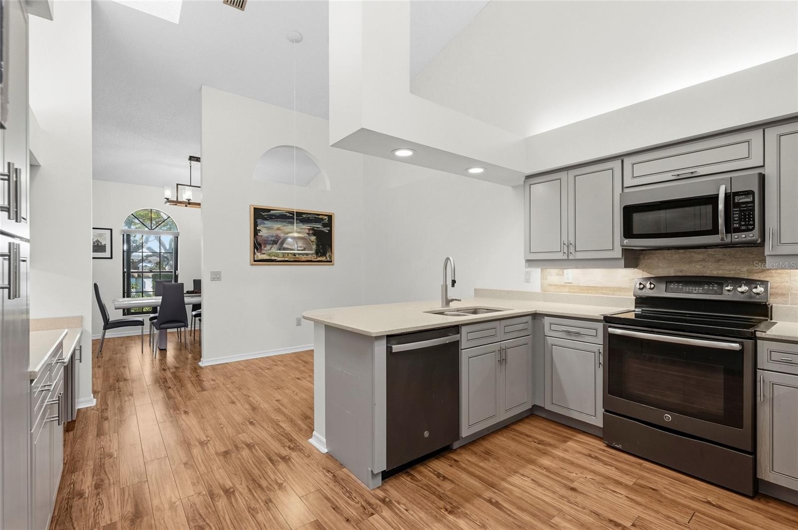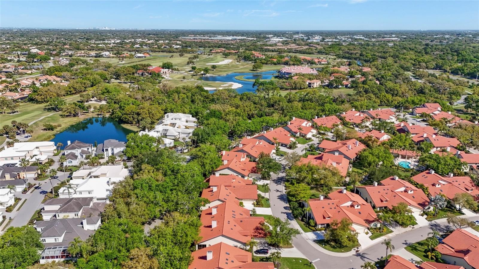 One or more photo(s) has been virtually staged. Enjoy maintenance-free living at its finest in this stunning 2-bedroom, 2-bath villa + den, located within the 24/7 guard-gated (with two entrances) Prestancia golf community, in the highly sought-after enclave of Villa D’Este. A picturesque drive along Prestancia Boulevard, lined with majestic oak trees forming a beautiful canopy, leads you into this serene neighborhood. Surrounded by two championship golf courses, wetlands, cypress heads, ponds, and lagoons teeming with wildlife, Prestancia is proudly recognized as a sanctuary by the Audubon Society. This residence features soaring ceilings and multiple skylights throughout, creating a bright, open, and inviting Florida-style atmosphere. Plantation shutters adorn all exterior windows, adding both elegance and functionality. A brand-new concrete tile roof, along with new skylights, gutters, downspouts, and fascia, ensures peace of mind for years to come. The spacious living room showcases a wood-burning fireplace and built-in wet bar, seamlessly connecting to the tiled lanai via pocket sliders. This villa offers a rare extended lanai—stretching nearly the full length of the rear of the home —a feature found in very few villas in the community. The adjacent dining room, complete with a built-in buffet, continues the home’s modern elegance. The large eat-in kitchen is light and bright, featuring newer cabinetry, granite countertops, stainless steel appliances, a breakfast nook, a separate desk area, soffit lighting that highlights the volume ceilings, and ample storage. Recent upgrades include a home security system with an electronic lock, a new secure locking screen door at the lanai, privacy screens, and interior locking hurricane shutters. The primary suite serves as a private retreat with direct lanai access and a spa-like bathroom featuring a Jacuzzi tub, walk-in shower, dual marble vanities, and a generous walk-in closet. The guest bathroom includes a soaking tub and a stylish glass vessel sink. A spacious den with a skylight and contemporary ceiling fan offers flexible space for a media room, office, or additional living area. The rear bedroom is equipped with a queen Murphy bed, built-in cabinetry, and a desk, making it ideal as either a guest room or home office. Residents of Villa D’Este enjoy access to a beautifully maintained community pool and spa. Optional membership to TPC Prestancia Golf Club provides access to two 18-hole championship courses, along with dining and social activities. Conveniently located near shopping, dining, the Legacy Trail, and world-renowned Siesta Key Beach, this exceptional villa offers the perfect blend of elegance, modern upgrades, and the Sarasota lifestyle.