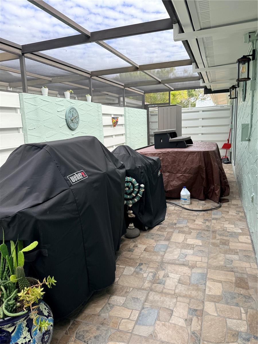 Completely remodeled and impeccably designed, this stunning 2-bedroom, 2-bath residence with large den in the highly sought-after 55+ community of Center Gate Estates offers luxury, comfort, and convenience in one exceptional package. Every detail has been thoughtfully curated, with exquisite wall accents by Clive Daniel Home creating a beautiful and cohesive aesthetic throughout the home. From the moment you enter, you’ll be impressed by the custom tile entryway and elegant finishes that set the tone for the entire space. The dining room area showcases a custom-built in bar featuring gorgeous quartz countertops and a coordinating designer wall treatment — perfect for entertaining. Take note of the stunning custom wall treatments! A custom floating credenza with surrounding shelves frames the TV space beautifully, blending function and high-end design seamlessly fill the open living space. The home features electric shades throughout to provide privacy, in the day enjoy the glowing brilliant light throughout this home. The spacious primary suite includes a walk-in custom closet and a beautifully appointed bath. A second bedroom and elegant guest bath provide comfort and privacy for visitors. Both private access to the enclosed courtyard with Hot Tub and new tile flooring..a serene retreat. Major upgrades bring peace of mind New A/C (2023)Roof & Garage Door (2021)Water Heater (2019) New Hurricane-impact windows and doors. The two-car garage provides ample storage space. Ideally situated just minutes from gorgeous Gulf beaches, top-rated hospitals, and exceptional shopping and dining, this move-in-ready home truly has nothing left to do but enjoy. Residents of Center Gate Estates enjoy access to a community pool and the charm of a well-maintained, vibrant 55+ neighborhood. A rare opportunity to own a fully remodeled, designer-finished home in an unbeatable location — schedule your private showing today! Professional photos coming soon!