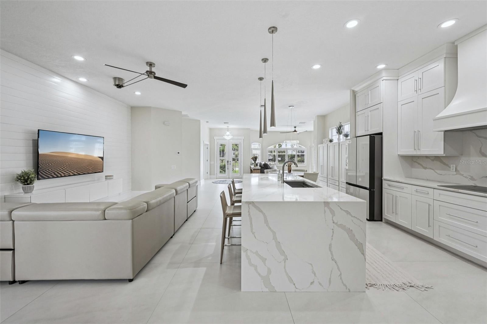 From Dock to Gulf in Minutes. Launch at Home. Return at Sunset. Designed for Boating, Finished for Luxury Living. Discover this FULLY RENOVATED, WATERFRONT residence in The Inlets at Riverdale, offering direct Gulf access with no lifts or locks. This 4-BEDROOM, 3-BATH, POOL/SPA home features a 2024 DESIGNER KITCHEN with QUARTZ COUNTERTOPS, a DUAL-SIDED WATERFALL ISLAND, CUSTOM BUTLER'S WALL PANTRY, custom cabinetry, locally crafted wood range hood, and a premium RUVATI 39" WORKSTATION SINK with integrated accessories. Additional highlights include a WINE/COFFEE BAR, 4'x4' CERAMIC TILE flooring, SMART color-changing lighting/music controlled via HUBSPACE APP by phone or tablet. CUSTOM BAY WINDOW SEATING, designer baths with QUARTZ SURFACES and TOTO BIDET TOILETS, and CALIFORNIA CLOSETS throughout. The primary suite is a private retreat with tranquil water views, his-and-her walk-in closets, outdoor access, and a FREESTANDING SOAKING TUB. Outdoor living features a PVC DOCK SYSTEM, Slip- and Stain-resistant with COOL SURFACE for comfort, 10,000-lb COVERED BOAT LIFT: 61ft DOCK with a 36x13 dock cover. SCREEN-ENCLOSED POOL with new pavers (2023), new pool pump and filter (2024), and widened paver driveway with sloped walkways. New HVAC (2023), roof (2017), and full gutter system. All home renovations completed in 2024. And custom cabinets through. The community offers low HOA, tennis courts, nature trails, fishing pier. Enjoy the expansive sunset views over the water from your pool, dock, or patio. This move-in ready coastal gem delivers modern style and effortless waterfront living.