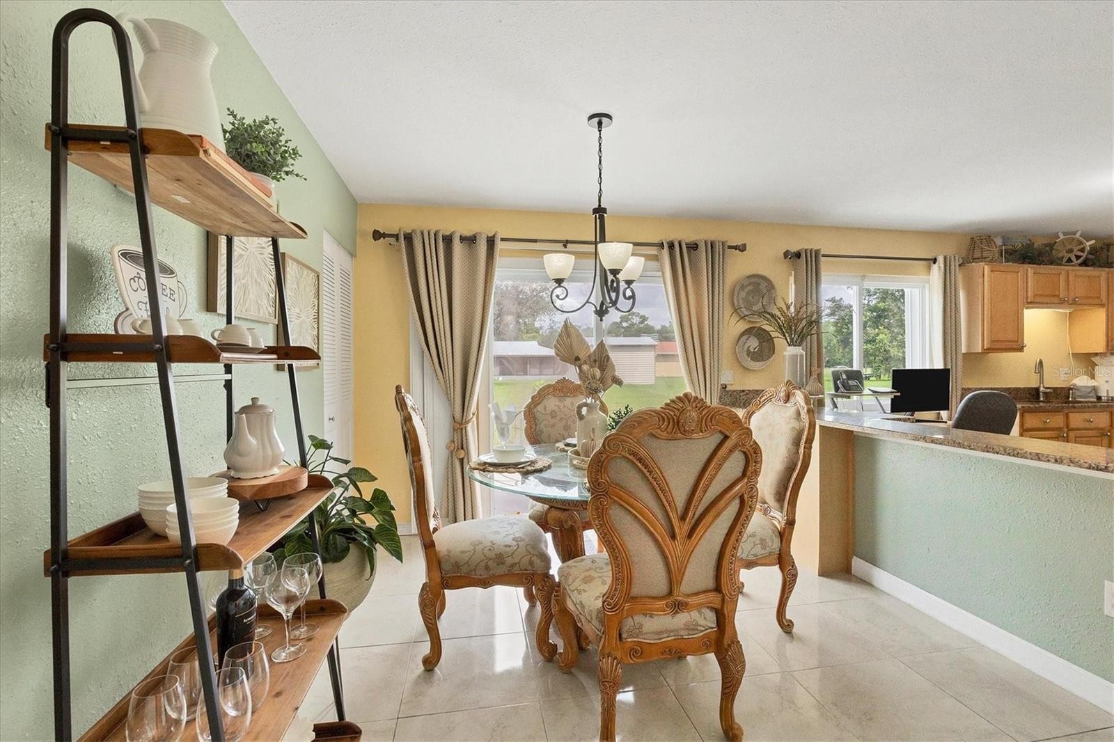 This beautiful 2-bedroom, 1.5-bathroom home with a one-car garage in North Port, Sarasota County, is ideal for a seasonal retreat, first-time buyers, or investors! The home is spotless, featuring front garden curbing, porcelain tile flooring throughout, a new water heater, electrical panel, garage door, windows, and the roof installed in 2017. HURRICANE SHUTTERS provide peace of mind. Nestled in a peaceful community, you can enjoy the Florida lifestyle! Open the front door to a gorgeous living room with abundant natural light and a soothing color palette that creates a comfortable ambiance throughout the home. The kitchen is practical and equipped with a breakfast bar, plenty of cabinets, and granite countertops. The dining area offers a great space for family meals with a pantry closet and sliders to the patio area. The primary bedroom offers ample space, a closet, a ceiling fan, and en-suite bathroom access. The 1.5 bathrooms have been recently updated, featuring access from the primary suite and the dining area, with two single vanities, two toilets, a shared walk-in shower with glass sliding doors, and a convenient linen closet. The second bedroom offers ample space, a closet, and a ceiling fan. The laundry area is located in the single-car garage, with a washer and dryer included. The huge backyard has plenty of room for a pool and ample space for family fun or dogs to run. The concrete area provides additional storage for all your outdoor essentials—perfect for a patio table with chairs, a fire pit, or enjoying your favorite BBQ with family and friends! This property is not only cozy but also worry-free. With its location in a non-flood zone, hurricane protection, and no HOA fees, you'll have peace of mind and more money in your pocket. Conveniently located just minutes away from the famous Warm Mineral Springs Park, shopping, restaurants, and entertainment options. It's walking distance to the Garden of The Five Senses and just a short drive away from the beautiful Gulf Coast beaches, full of activities like shelling, snorkeling, and boating—all within minutes of your doorstep. Don't miss out on this incredible opportunity— a true gem for your Florida getaway or full-time tropical oasis!