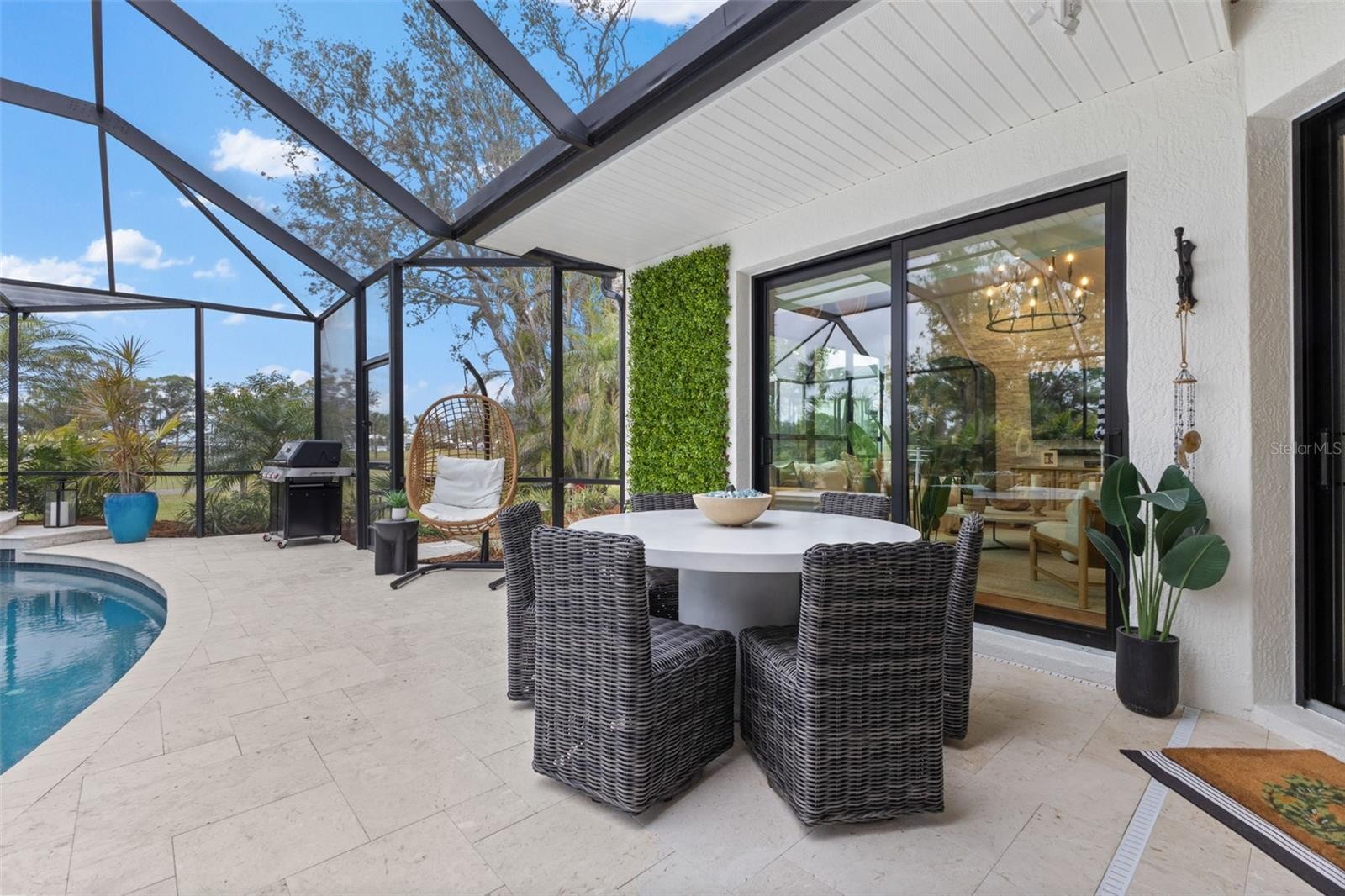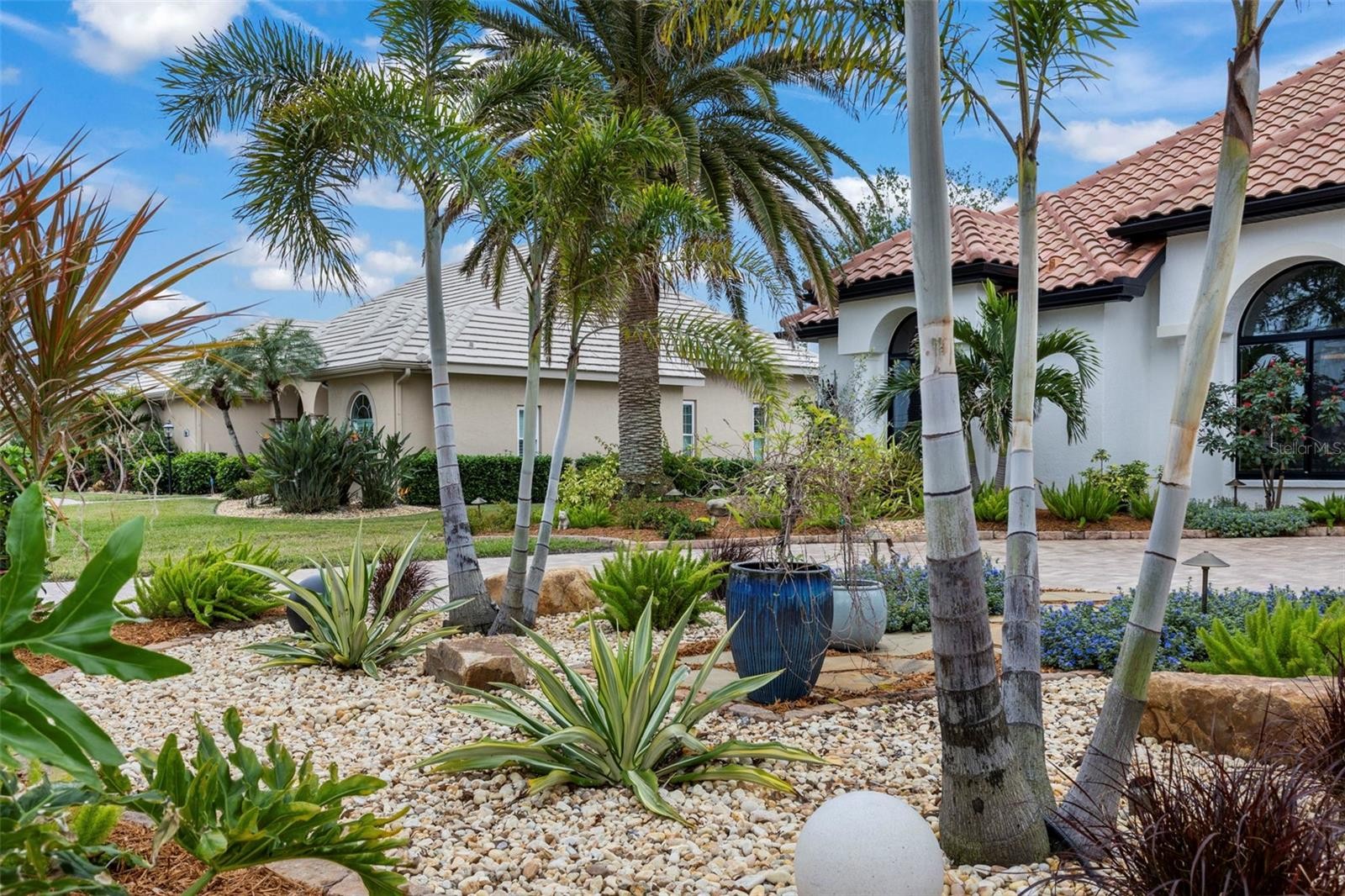 Welcome to this luxurious Spanish-Mediterranean styled custom-built pool home, fully updated to offer the epitome of elegance and comfort. Boasting 3 spacious bedrooms, 3 luxurious bathrooms, and a versatile den, this home is masterfully designed with a thoughtful split floor plan that perfectly balances elegance and functionality. Upon entering, you're immediately captivated by a breathtaking living room that offers sweeping views of the inviting newly resurfaced salt-water pool and surround, effortlessly merging the elegance of indoor and outdoor living. The expansive pool area is an entertainer's dream, perfect for hosting unforgettable gatherings or simply unwinding in style. Adding to the home's charm is a delightful courtyard, complete with a cozy 42” LP gas fire bowl, enhancing its allure and providing a serene oasis for relaxation. The primary bedroom boasts an ensuite bath, providing a private retreat within this exquisite residence. Additionally, the home includes a fully updated pool bath, along with two other beautifully renovated bedrooms and a bathroom, ensuring comfort and style throughout. Every detail of this home has been thoughtfully designed and meticulously crafted, from the beautifully manicured landscaping to the stunning chef's kitchen. Equipped with quartzite counters and backsplash, 54” custom cabinets, premium appliances, including an ILVE Induction Range, Miele Dishwasher, Z-Line built-in refrigerator, Z-Line Range Hood, and Z-Line Microwave drawer, the kitchen is a culinary enthusiast's dream. The home features a new roof, new impact windows, doors and sliders, new hurricane rated garage door, custom closets, designer interior and exterior lighting, and fresh paint both inside and out. All bathrooms have been fully renovated to offer modern luxury, and a newly installed Generac whole house generator ensures peace of mind. Located in the gated community of The Reserve at Plantation Golf and Country Club, this golf-course home is part of a welcoming and charming 73-home enclave. While membership at the privately owned Plantation Golf & Country Club is optional, it offers various opportunities for an active social lifestyle. Conveniently situated just 5 minutes from the new master-planned community of Wellen Park, 15 minutes from the island of Venice, 15 minutes from the beach, and 10 minutes from I-75, this home provides easy access to endless travel and leisure opportunities. Experience the perfect blend of luxury, comfort, and community in this exceptional property. Schedule your showing today!