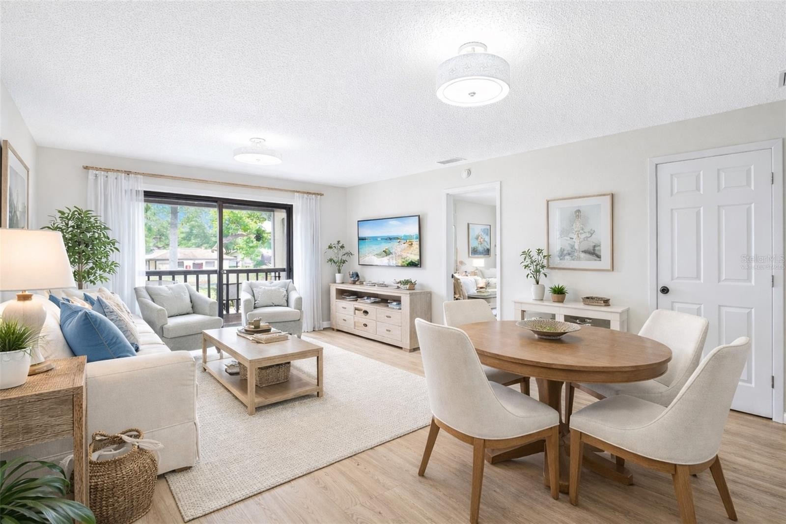 One or more photo(s) has been virtually staged. Don’t look any further! ***You just found your new home!*** Welcome to this beautifully presented, 2BD /2BA, 2nd FLOOR, CORNER, END UNIT, COMPLETELY UPDATED with CARPORT and extra STORAGE! Your own slice of paradise awaits. BRAND NEW A/C (June 2025). NO CDD. NOT in the Flood Zone. This condo is just minutes away from shopping centers, downtown, restaurants and world-famous beaches. Very welcoming, owner occupied home in LONGWATER CHASE, secluded community within THE MEADOWS Golf and Country Club is waiting for you! Lots of natural light throughout, new, luxury laminate flooring, freshly repainted. NEW kitchen with beautiful cabinets, upper ones going right to the to the ceiling, all soft closing, very stylish GRANITE COUNTERS and has designated place for a breakfast table by the window. Spacious living room with dining area is full of natural light and is leading to the good size, fully screened balcony overlooking a greenery and the pool. Great place to enjoy your morning coffee and evening glass of wine. The sun-filled, generous size Primary Bedroom Suite featuring elegantly remodeled bathroom with new vanity, fully tiled step-in shower and glass doors. Split bedroom floorplan offers lots of privacy when having guests. The 2nd bedroom has it's own, private upgraded bathroom and balcony making it perfect when friends and family come to visit. In-unit laundry room comes with newer LG stackable washer & dryer and offers extra storage space. THE MEADOWS is not only a place to live, it’s a lifestyle you deserve offering amenities like heated pool, 14 miles of trails for walking, biking, jogging, access to 18-hole golf courses, fitness center, pickleball courts and more. This condo also has a deeded carport and storage unit and plenty of parking spaces for your guests. The location is unbeatable! Don’t miss out, schedule your showing today!