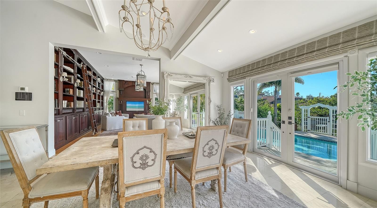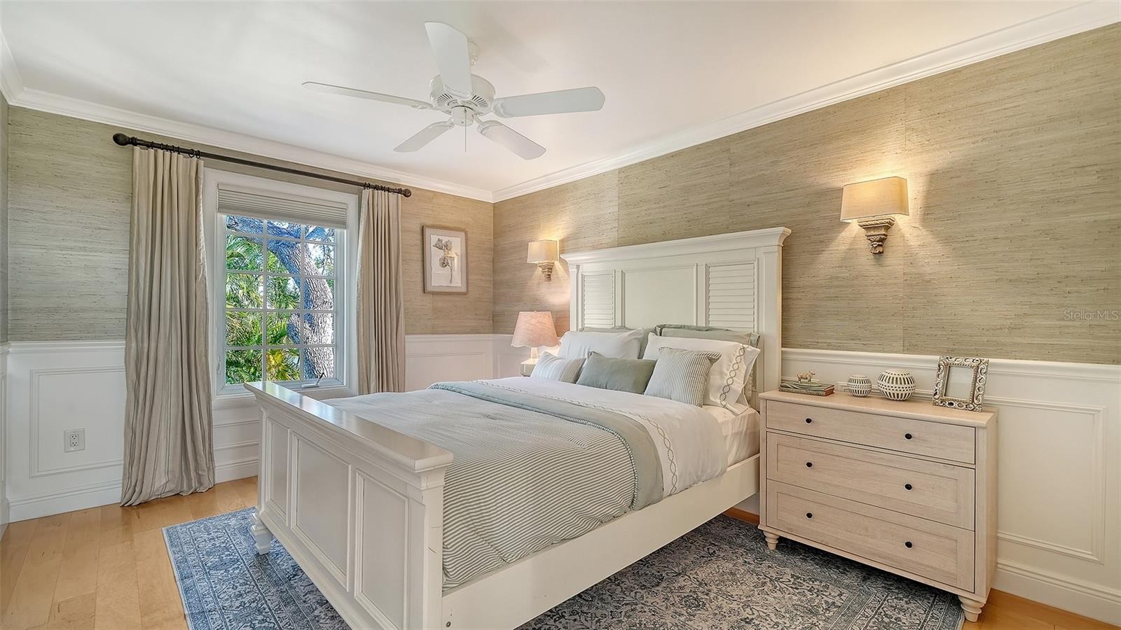 Gated Siesta Key Estate with Guest House & Boating Access. Experience the best of Siesta Key living, where award-winning white quartz sand beaches meet a relaxed island lifestyle, just minutes from Sarasota’s vibrant arts, dining, and cultural attractions. Tucked inside its own gated enclave, this exceptional waterfront estate with a detached guest house is surrounded by lush tropical landscaping, creating a secluded oasis. The thoughtfully designed open floor plan offers many possibilities. The kitchen serves as the heart of this home, opening seamlessly to a casual living area and dining space, while the expansive living room beyond features a fireplace and picture windows framing tranquil water and tropical views. A versatile flex room at the front of the home easily adapts to your lifestyle — ideal as a home office, formal dining room, or playroom. Additional conveniences include a half bath and an oversized laundry room with access to a spacious two-car garage with abundant storage. French doors at the rear of the home lead to the outdoor living area, where a heated saltwater pool and spa overlook peaceful canal views wrapping along the rear and side of the property. Upstairs, the impressive primary suite offers a true retreat, complete with its own fireplace and a luxuriously appointed spa-style bathroom. A generous second bedroom features an ensuite bathroom, while two additional bedrooms share a third bathroom. Wood flooring, marble tile, high-end finishes, and distinctive architectural details are showcased throughout. Adding flexibility, the detached guest suite includes a private entrance, studio, bathroom, kitchenette, and private courtyard — perfect for guests, multigenerational living, live-in staff, home office space, or fitness studio. Boating enthusiasts will appreciate immediate access to the waterfront lifestyle with a private dock, 7,000-pound boat lift, plus an included 18-foot boat with trailer and two kayaks — ready for adventure from day one. Ideally located in the heart of Siesta Key, the home is just steps from the prestigious Out-of-Door Academy, and a walk or bike ride to Siesta Beach and Siesta Village. Convenient access to the north bridge makes reaching downtown Sarasota easy. Offered turnkey furnished, this extraordinary property is move-in ready and perfectly suited as a primary residence, seasonal retreat, vacation home, or rental investment opportunity.