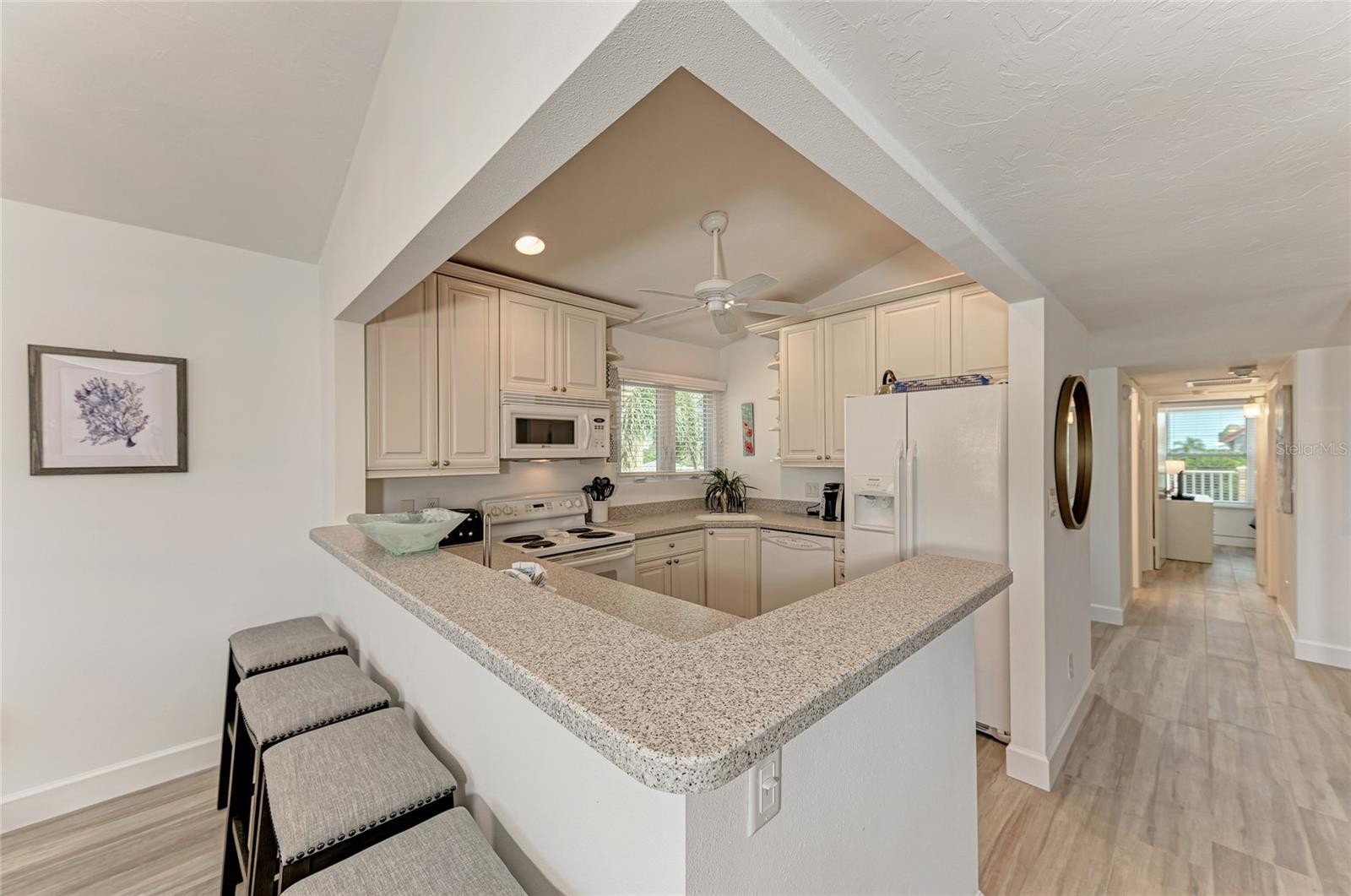 Under contract-accepting backup offers. Welcome to Sand Cay Beach Resort—one of Longboat Key’s premier beachfront destinations and one of the few communities on the island permitting flexible 1–7 day rentals, making it exceptionally attractive for both personal use and income potential. With an outstanding on-site management team handling the details, ownership is truly effortless. This rarely available third-floor residence features soaring vaulted ceilings exclusive to top-floor units, creating an open, airy ambiance filled with natural light. The beautifully updated kitchen opens seamlessly to the living and dining areas, while coastal-inspired finishes throughout enhance the relaxed Gulf-front lifestyle. Offered completely turnkey, this well-established vacation rental boasts a strong income history and presents an exceptional investment opportunity. Nestled within an intimate community offering 340 feet of pristine Gulf frontage, Sand Cay delivers a true resort-style experience. Amenities include a heated beachfront pool, tennis courts, shuffleboard, basketball area, barbecue stations, and a full-time on-site manager with a convenient in-house rental program. Perfectly positioned just minutes from the boutiques and fine dining of St. Armands Circle and the vibrant arts and culture of downtown Sarasota, the location is as compelling as the property itself. Light-filled and ideally situated between the pool and the beach, this two-bedroom, two-bath residence also features a spacious living and dining area, a cozy den or office nook, and a private balcony with awning and Gulf views—perfect for morning coffee or relaxing after a day in the sun. Your slice of Longboat Key paradise awaits. Schedule your private showing today.