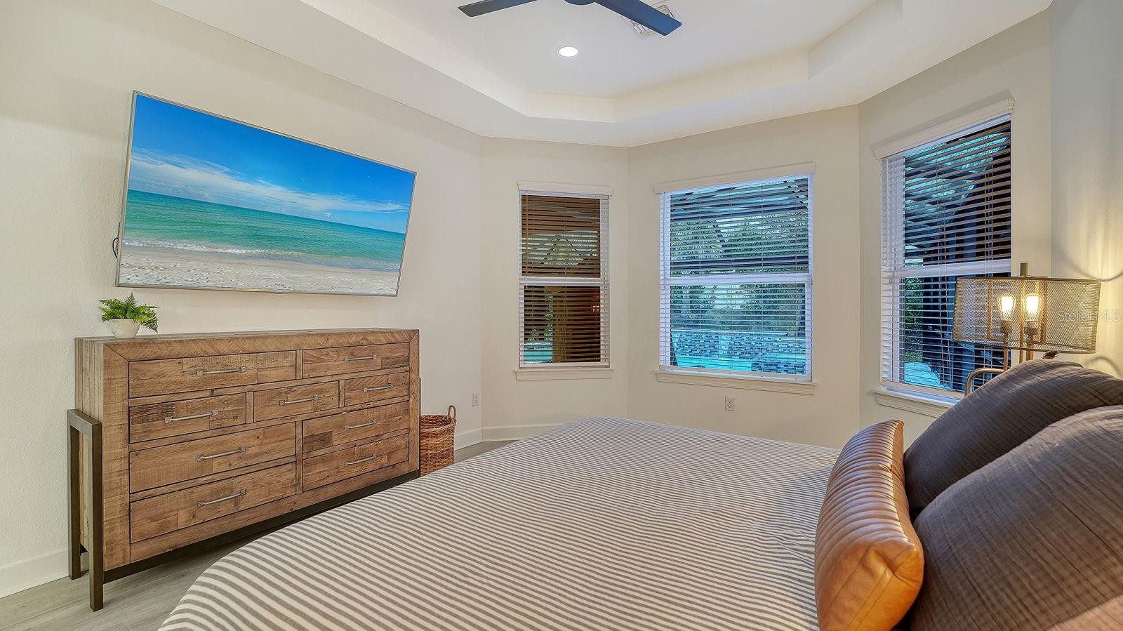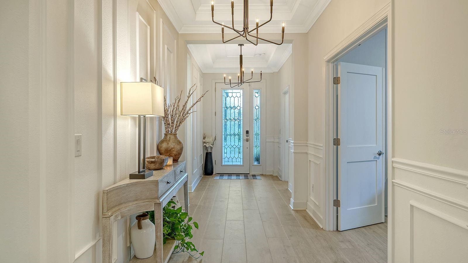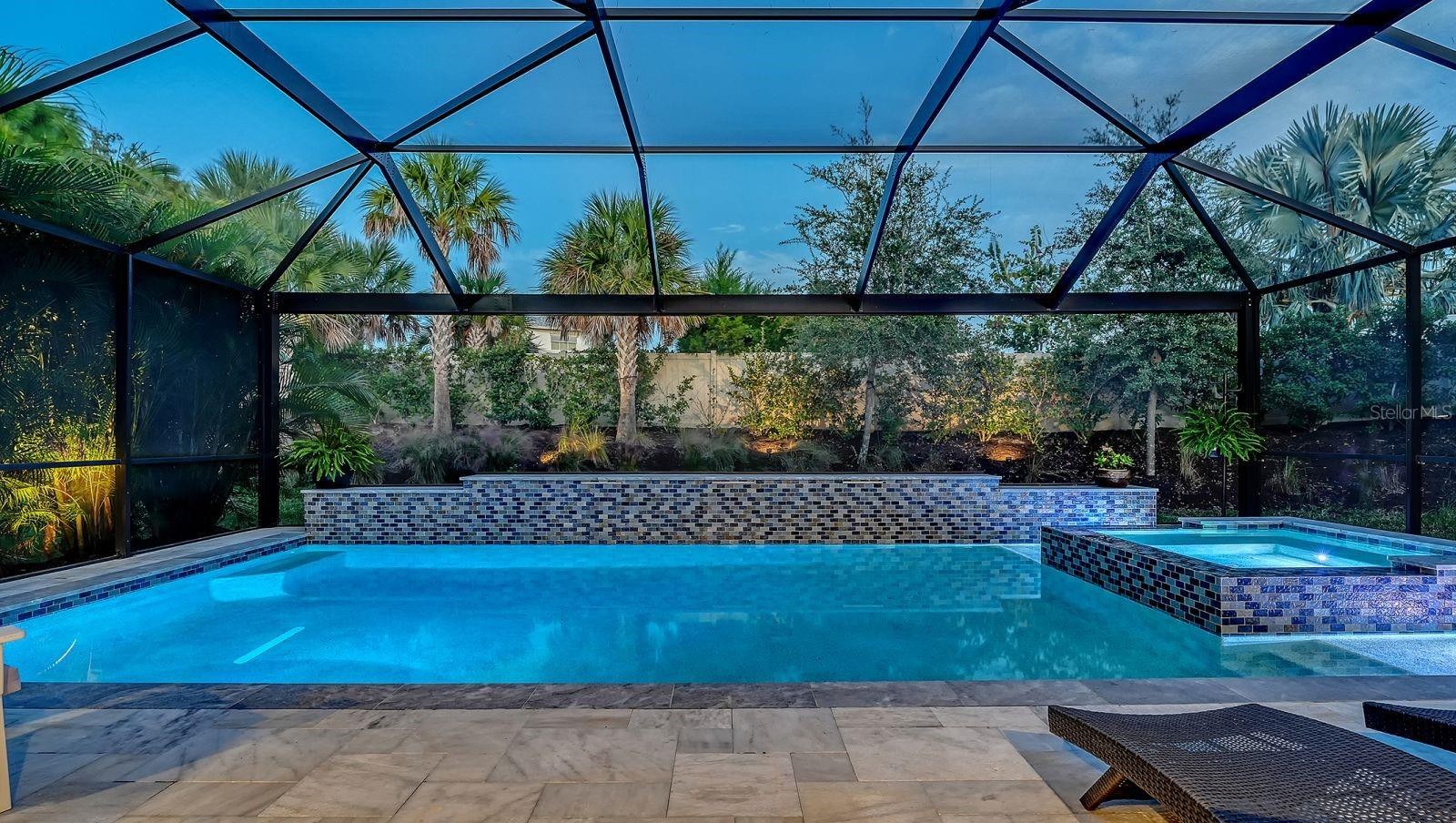 Welcome to resort-style living in Esplanade Azario at Lakewood Ranch. This stunning example of what Florida living is all about features 3-bedrooms, den, 3 en-suite full baths, powder room, gas-heated saltwater pool & spa, outdoor kitchen, 2-car garage with an extra long and wide driveway, and countless upgrades. A stunning, extended foyer with crown molding wood trim, and a glass front door with sidelight creates an elegant first impression, leading into the main living spaces with custom wood trim throughout, luxury plank vinyl flooring, tray ceilings, and beams in the living room tray ceiling. No mandatory golf membership! The kitchen blends style and function with wood cabinetry, quartz countertops, a large island, tile backsplash, walk-in closet pantry, ample drawer space, GE Café stainless appliances, a gas range, upgraded pendants, and a chandelier—plus a water filtration system. Fully pocketing sliding glass doors open to a ClearView panoramic lanai with sandblasted marble pavers and an outdoor kitchen featuring a gas grill, range hood, bar tap, and fridge—perfect for entertaining. Enjoy the gas-heated saltwater pool & spa with three waterfall features and iridescent mosaic tile accents, plus a top-water solar robot, landscape lighting, sprinkler system, and a widened paver driveway. Added privacy comes with no neighbors behind and to one side. Additional upgrades include custom built-in shelving and cabinets with lighting on the TV wall, a custom built-in desk and storage in the office, a security system, exterior cameras monitored by Alert 360, laundry room storage cabinets with quartz countertops and sink, overhead garage storage, and an Aroma360 hotel scent system throughout the home. Located in the illustrious Esplanade at Azario of Lakewood Ranch, this property offers the ultimate in privacy and exclusivity, yet you don’t need to leave the gates in order to enjoy a culinary dining experience, casual poolside drinks, or any of the numerous social and active amenities Azario has to offer. COMMUNITY FEATURES: 18-Hole Championship Golf Course (not deeded to property), Pro Shop & Bunker Bar, Aqua Driving Range, Full-Time Activities Director, Resort-Style Pool & Poolside Bahama Bar, Spa/Wellness Center, Culinary Center w/ Teaching Kitchen, Barrel House Bistro, Olive & Vine Pizza Kitchen, State-of-the-Art Fitness Center, Sports Courts, Clubhouse, 16 Pickleball Courts, 6 Har-Tru Tennis, Bocce Ball, Flex Space for Gaming, Meetings & Activity Center, Walking Trails, Dog Park, Community Garden & Fire Pit.